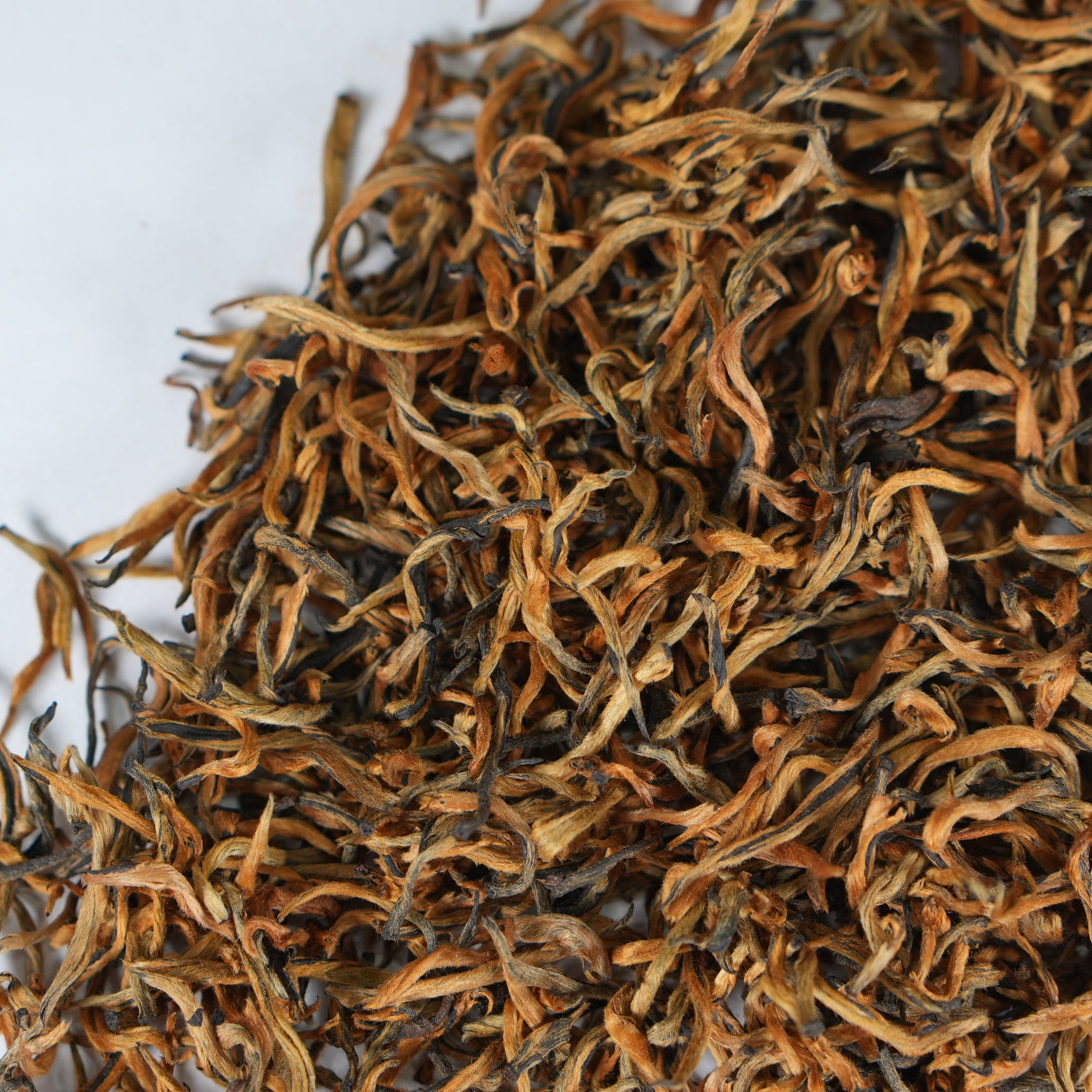 Название этого чая говорит само за себя. «Дянь Хун» (滇红) - это собирательное имя для всех красных чаёв провинции Юньнань, которые славятся своим насыщенным характером и способностью хранить тепло южного солнца. «Цзинь Сы» (金丝) переводится как «золотые нити» или «золотой шёлк». И действительно, всмотритесь в сухой лист: это не скрученные в тугие комочки гранулы, а изящные, слегка изогнутые золотисто-коричневые жгутики - крупные, мясистые почки, густо покрытые нежнейшим золотым ворсом. Они напоминают тончайшие шёлковые нити, сотканные самой природой.