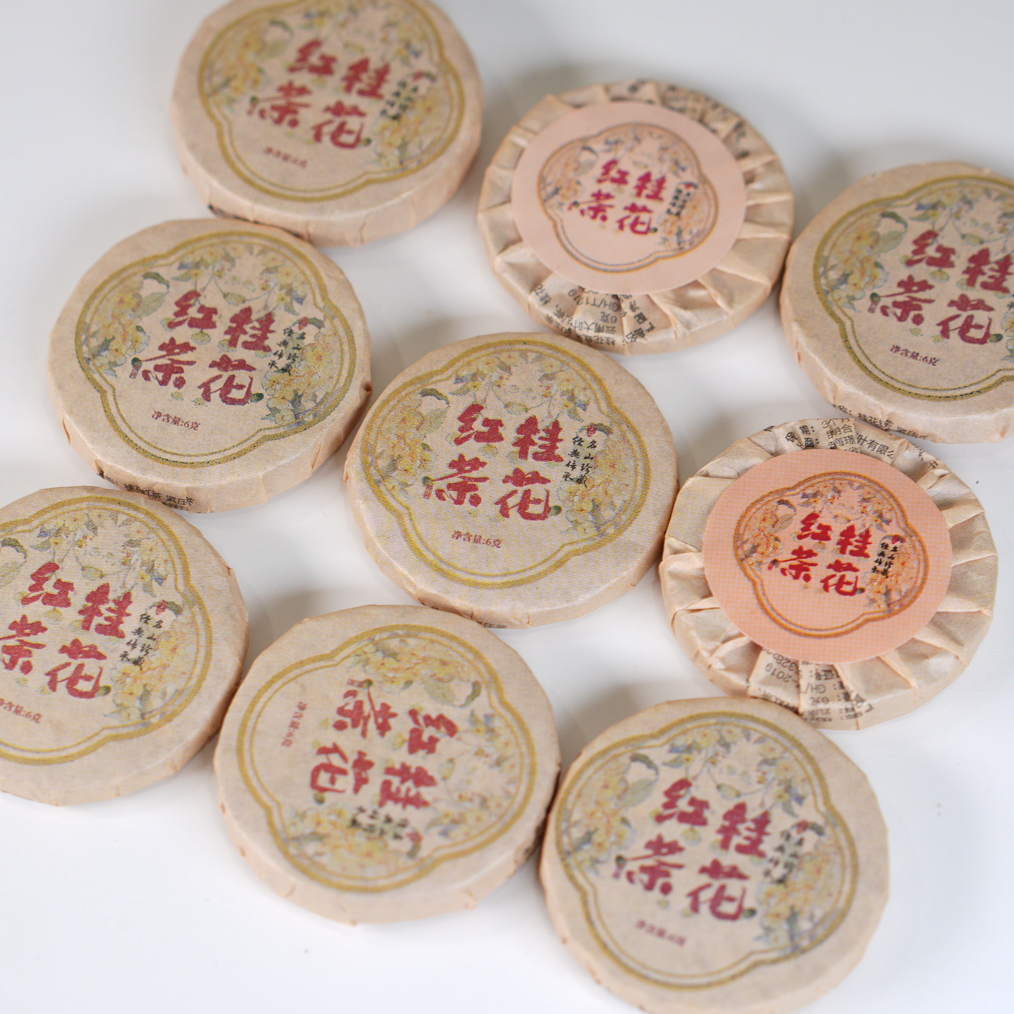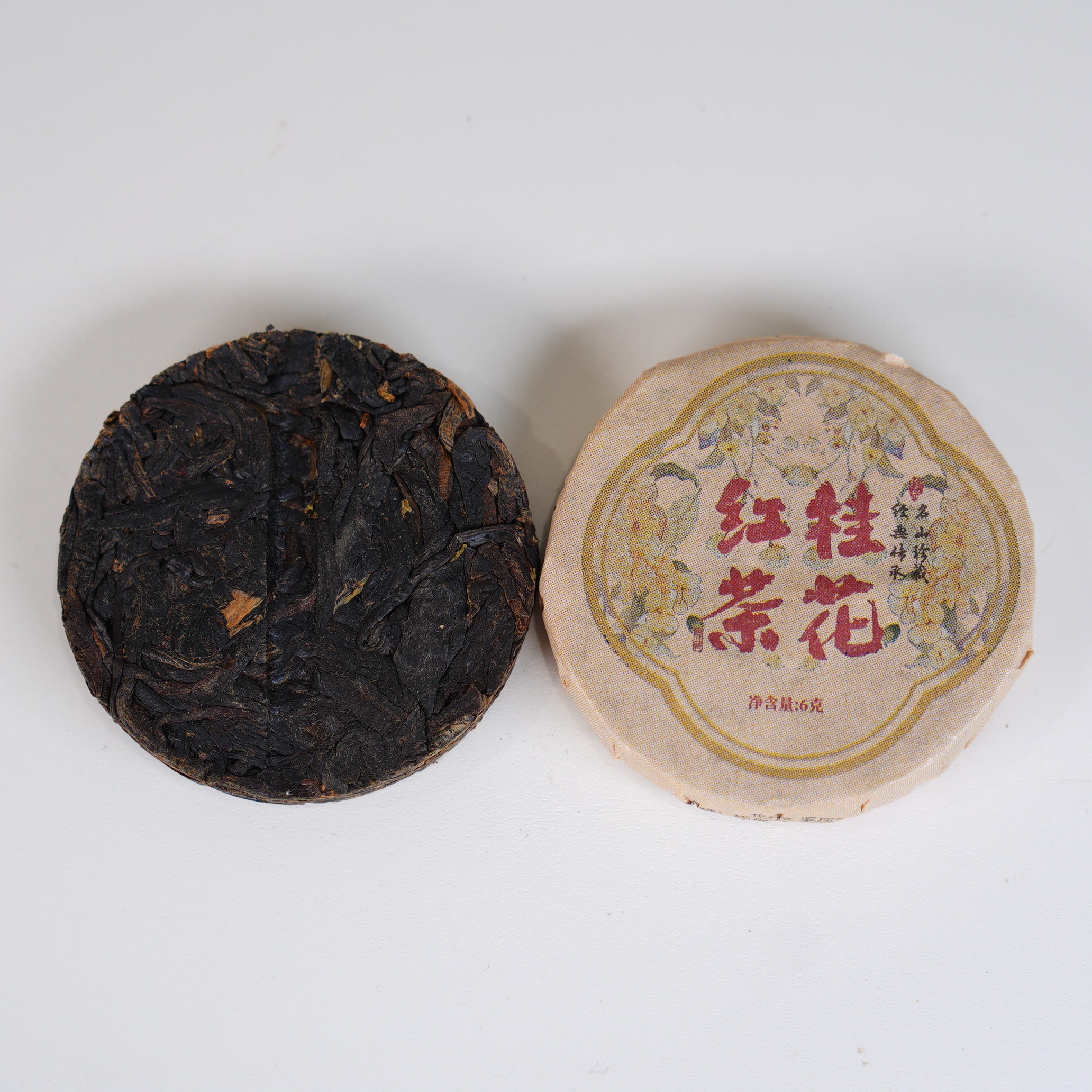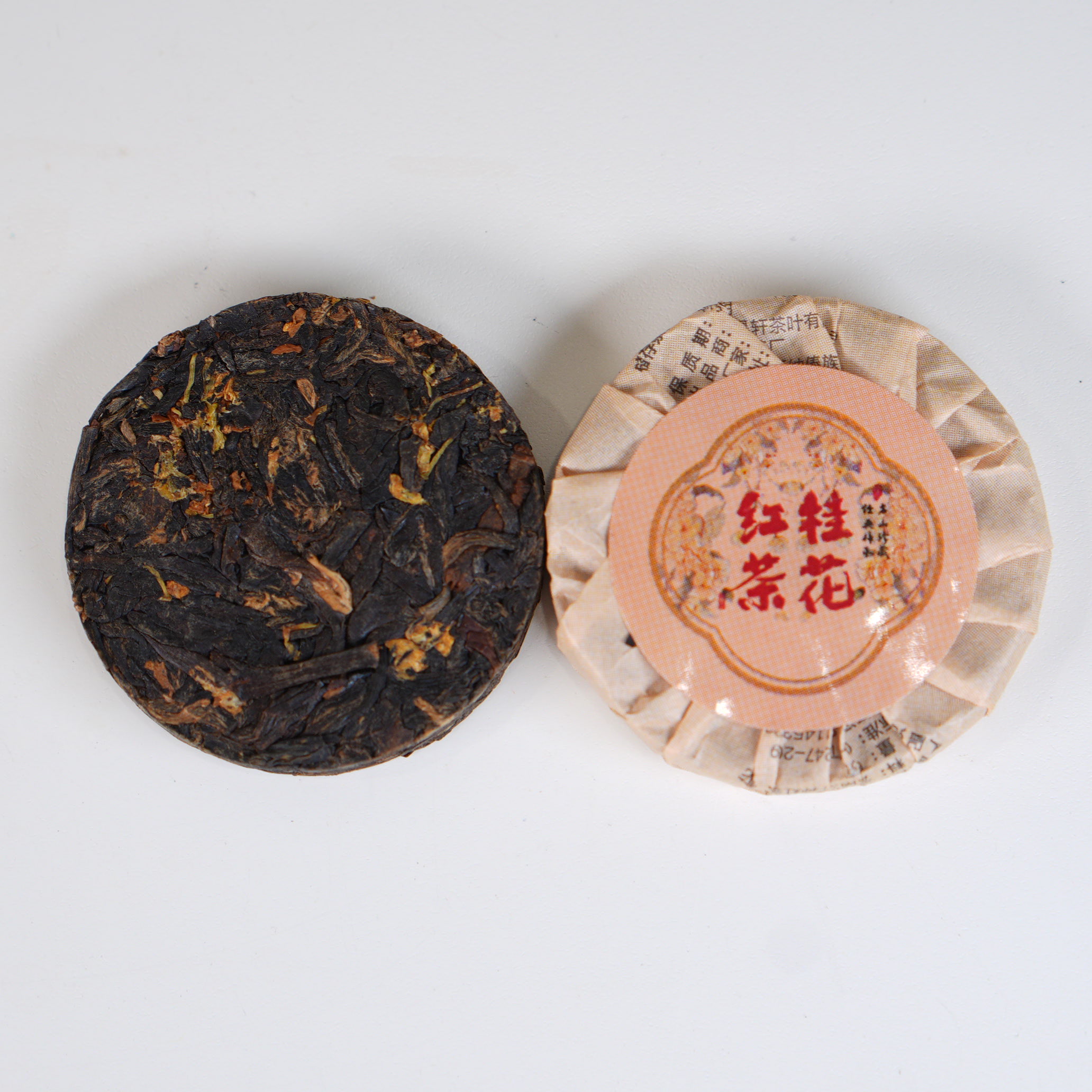 Крупнолистовой красный чай с цветами османтуса, профиль с ярко выраженным медовым и персиковым вкусом и ароматом.