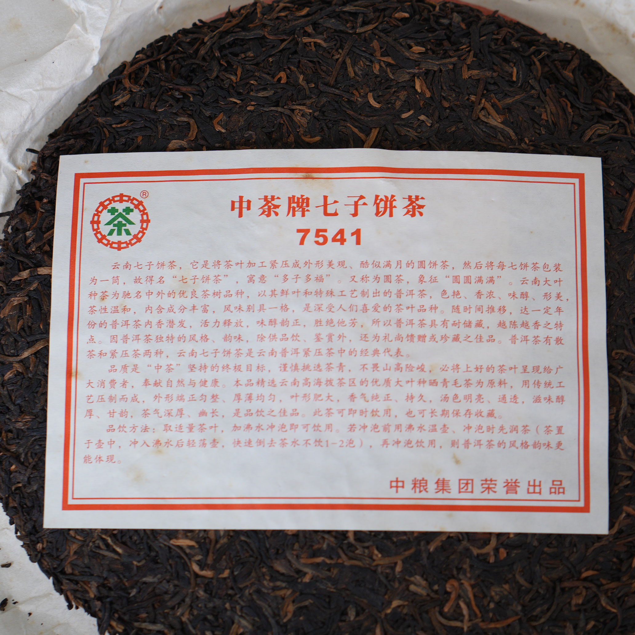 Шен пуэр Чжун Ча 7541 - это классический рецептурный шен пуэр Куньминской чайной фабрики, выпускаемый под брендом Чжун Ча (种茶).