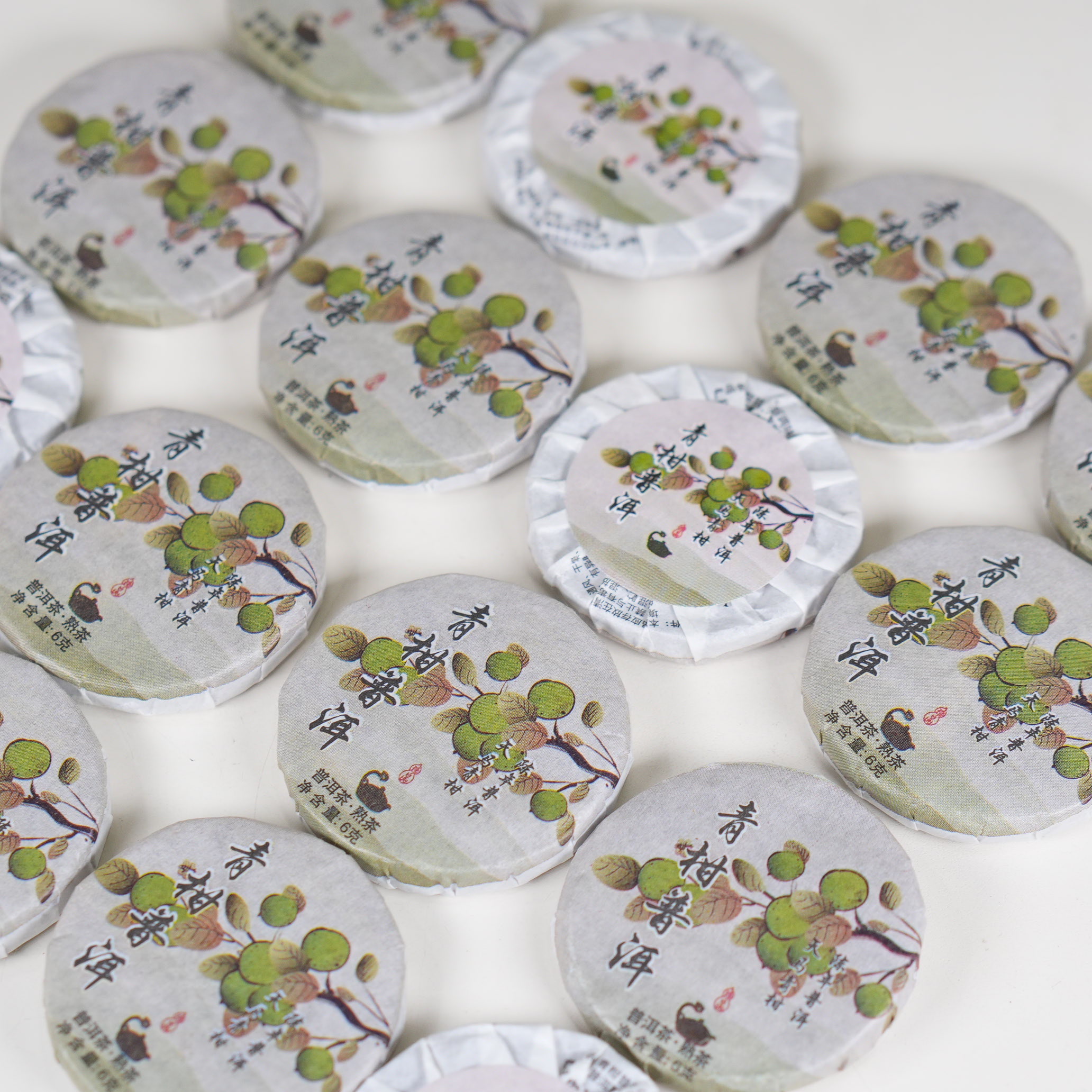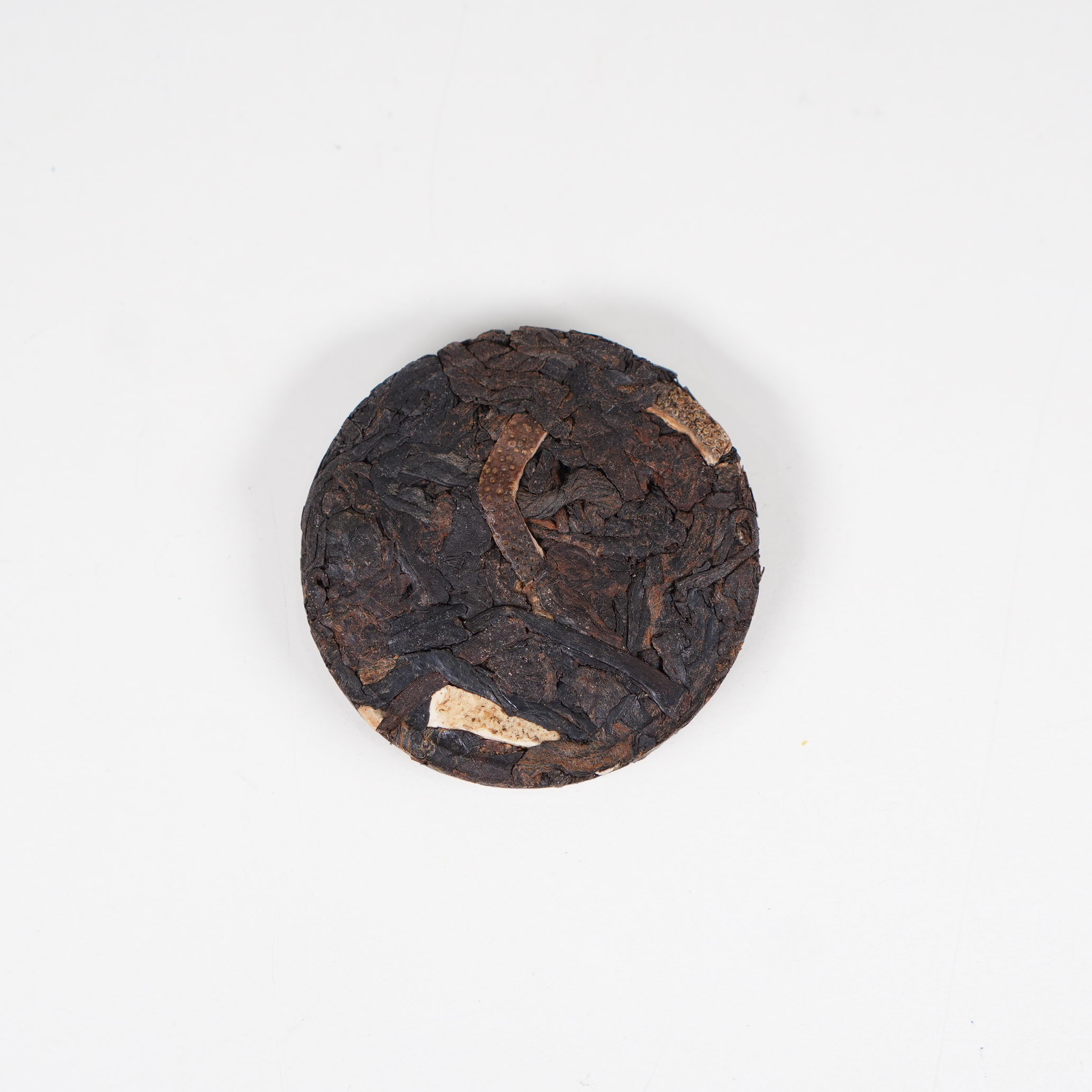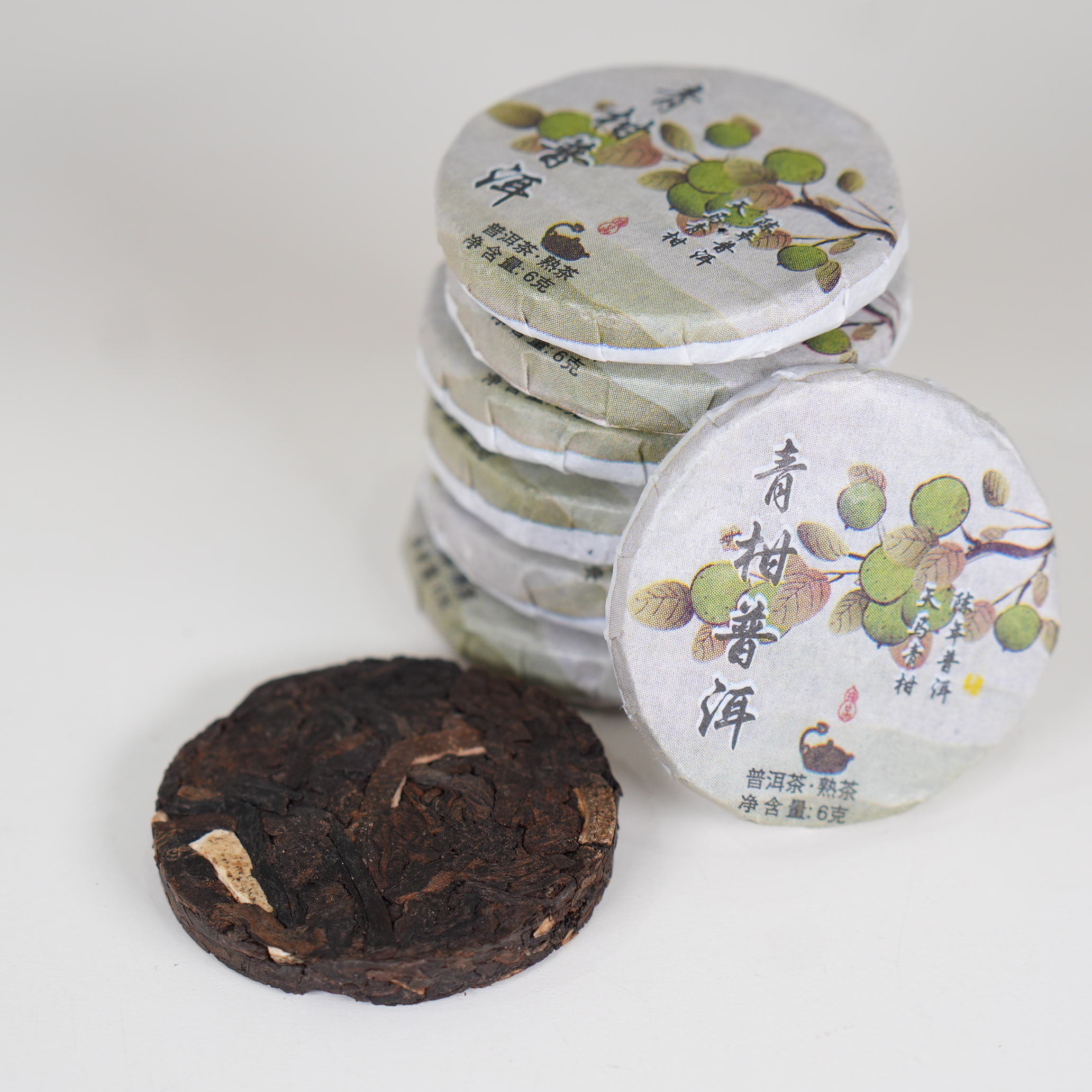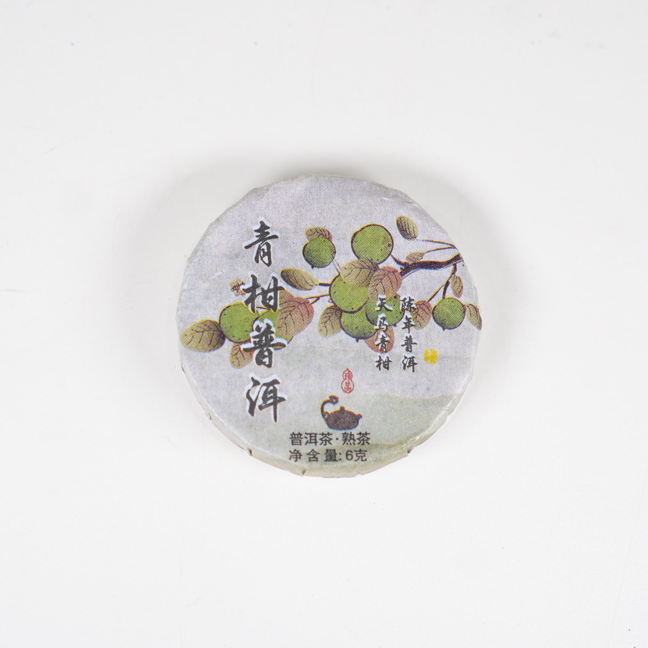 Сяо Цин Гань (小青柑) переводится с китайского как «маленький зеленый мандарин». Это не просто ароматизатор - это особый сорт цитрусовых, которые не едят из-за их терпкого, кисловатого вкуса, но ценят за невероятно ароматную, богатую эфирными маслами цедру. В этом чае два легендарных продукта встречаются: зрелый, мягкий шу пуэр из Юньнани и молодая, зеленая кожура мандарина с плантаций Синьхуэй (провинция Гуандун), которая славится как эталон для цитрусовых настоев. Вместе они проходят путь взаимного насыщения, чтобы подарить вам уникальный вкус. Форма мини-блинчика весом 8 граммов - это современное прочтение традиции: вам не нужно разламывать целый плод, просто возьмите одну аккуратную шайбочку, и она подарит вам всю гамму ощущений.