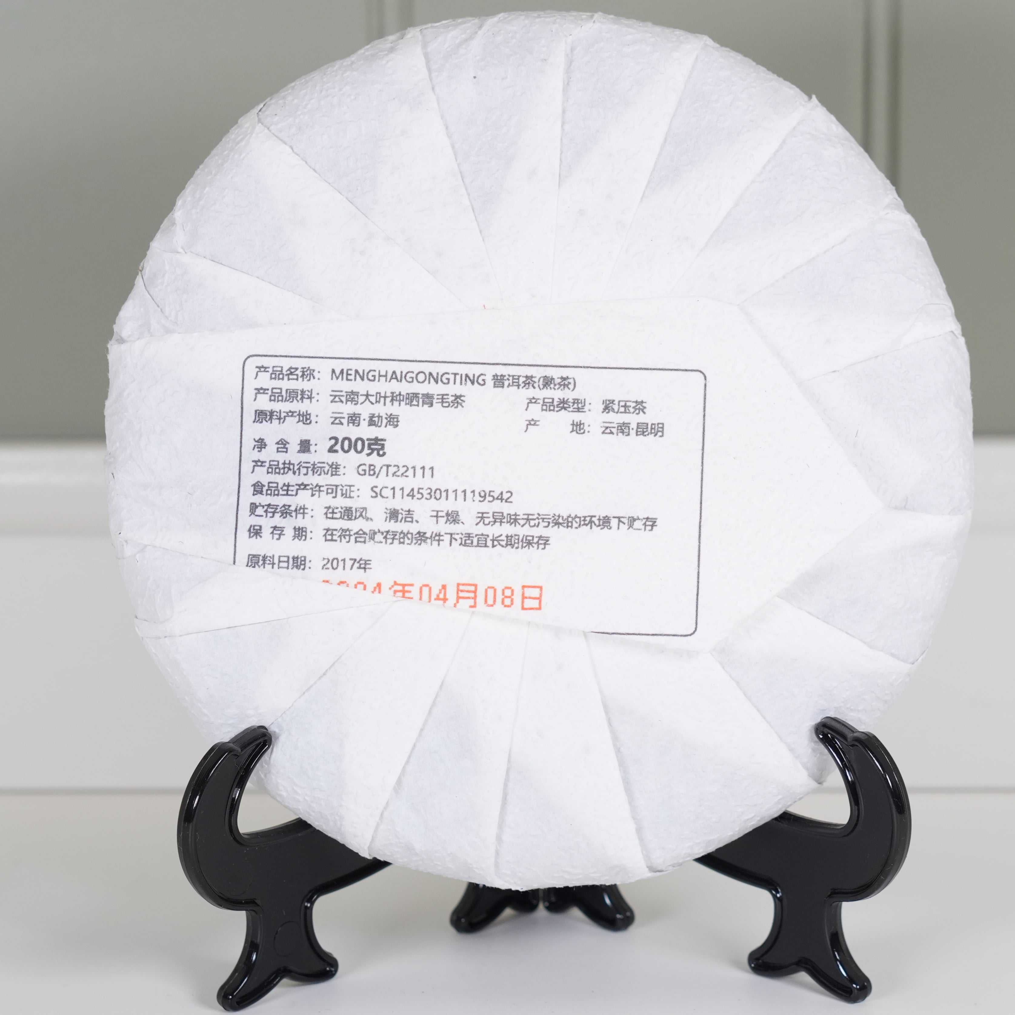 Сырьё для этого чая было собрано в 2017 году, а прессовка состоялась летом 2024 года. Производство находится в уезде Мэнхай, округ Сишуанбаньна, провинция Юньнань, Китай.
