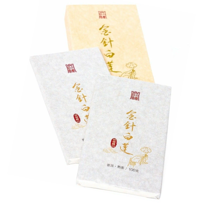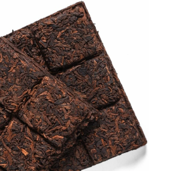В красивой картонной упаковке две плитки пуэра разделенных на маленькие