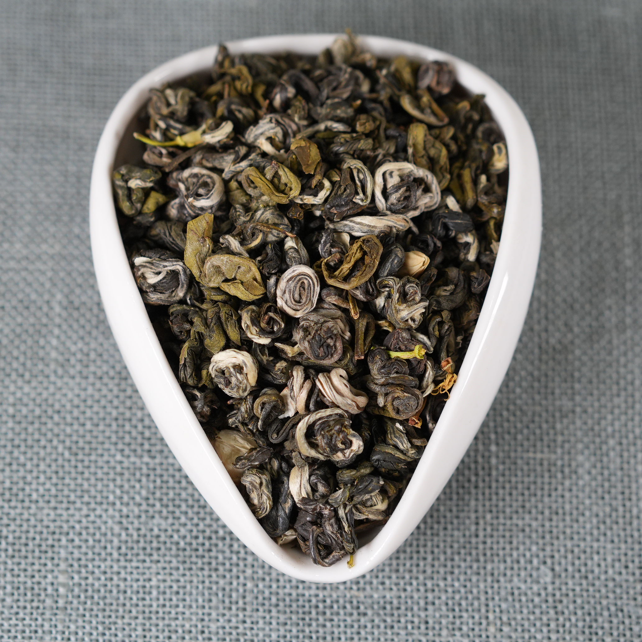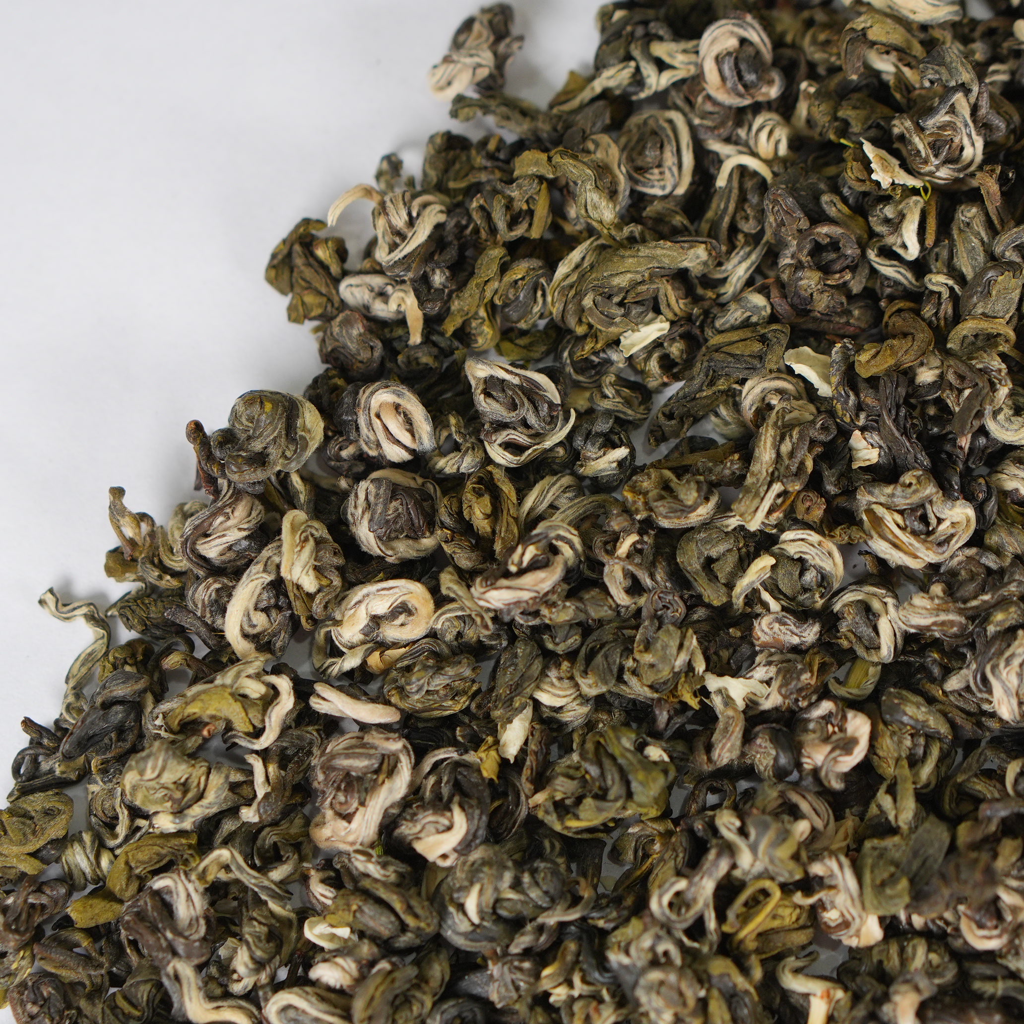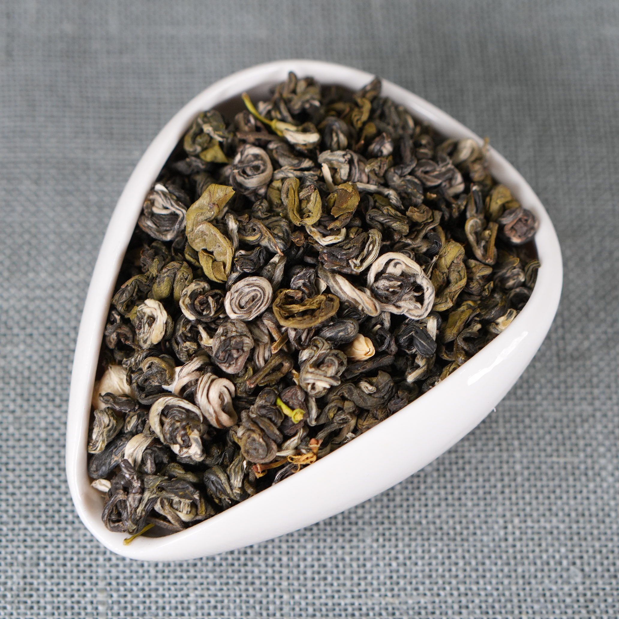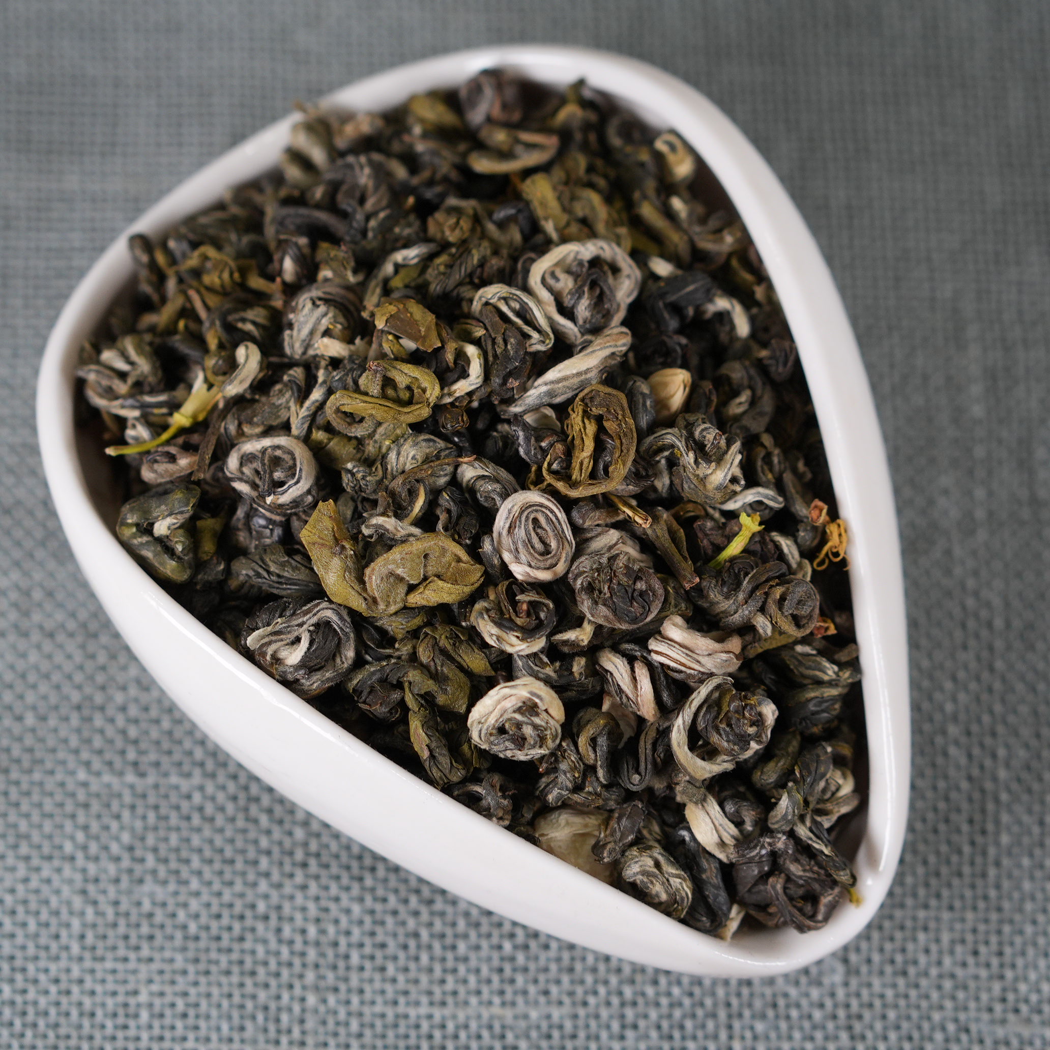 Название этого чая звучит как поэзия: «Моли» (茉莉) означает «жасмин», а «Чжень Ло» (镇罗) переводится как «игла-улитка». Это имя идеально описывает форму чаинок - нежные молодые листочки и почки, собранные ранней весной, искусно скручены вручную в тугие спиральки, напоминающие маленьких улиток или древние иглы. Главная изюминка этого сорта - прямо внутри этой спирали, среди чайных листьев, спрятались нежные бутоны жасмина, собранные на пике цветения в жаркие летние дни. Вместе они застыли в ожидании встречи с горячей водой, чтобы устроить настоящий праздник вкуса и красоты.