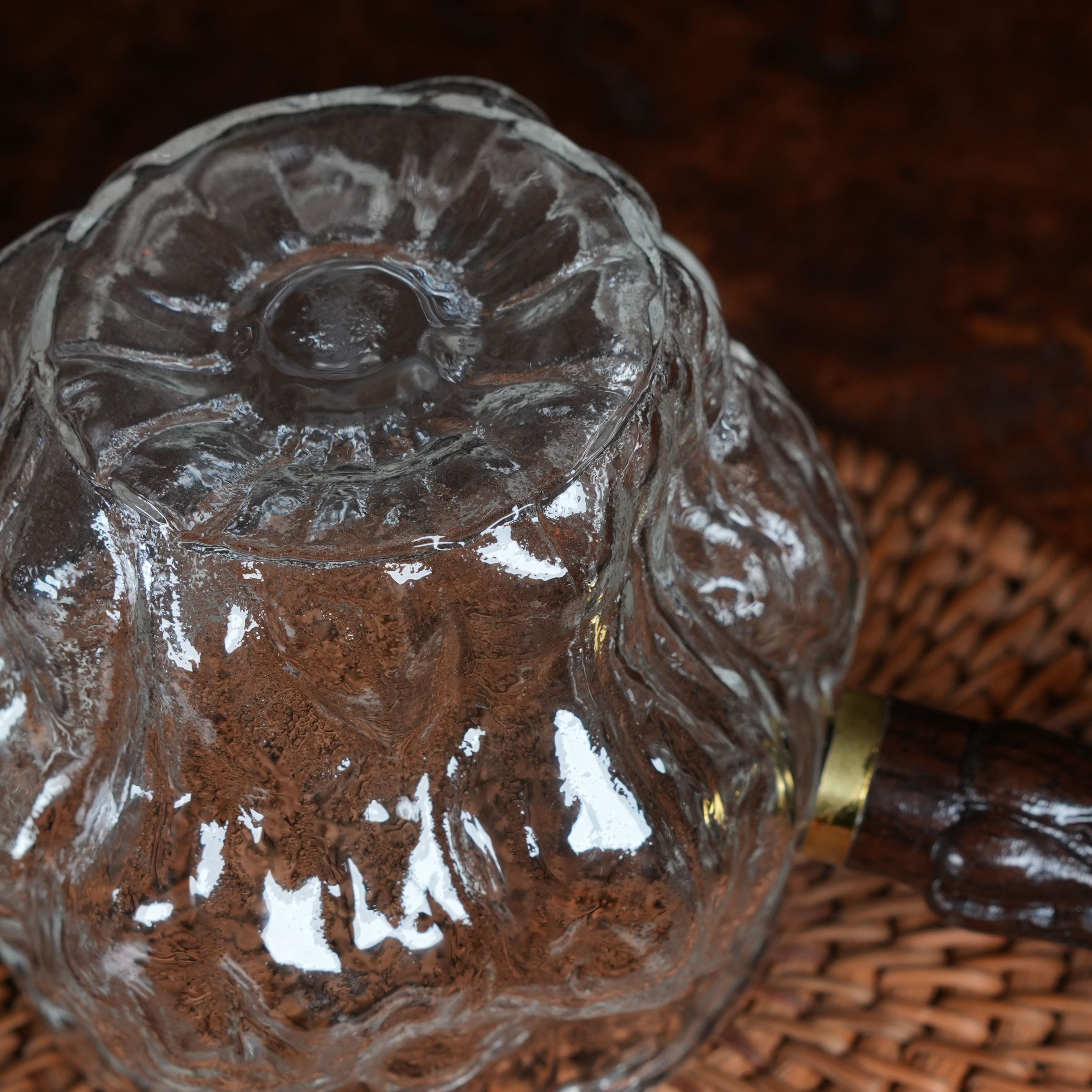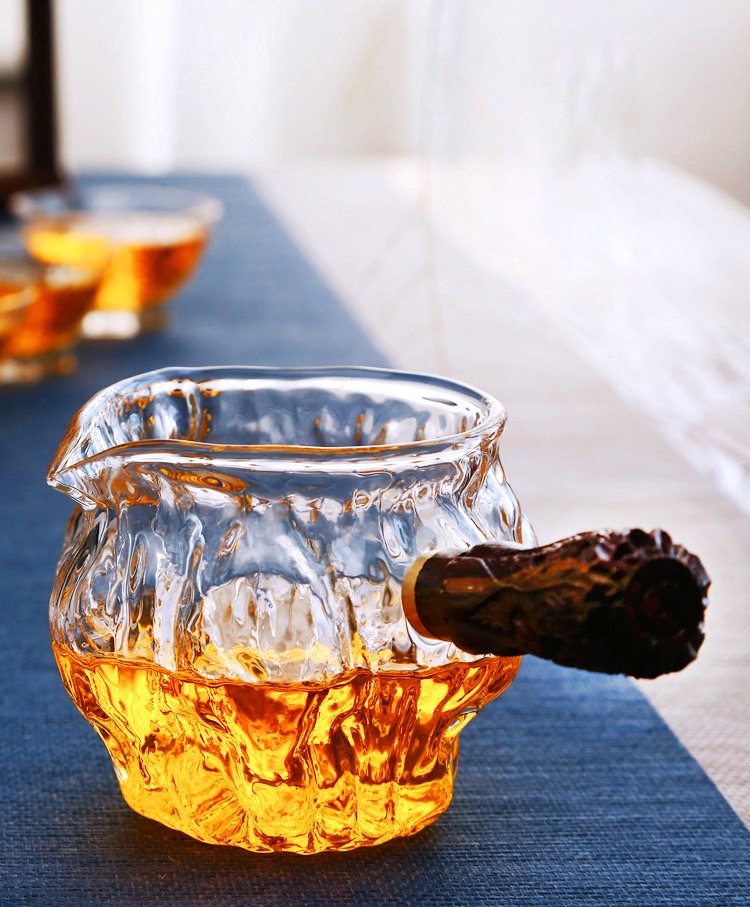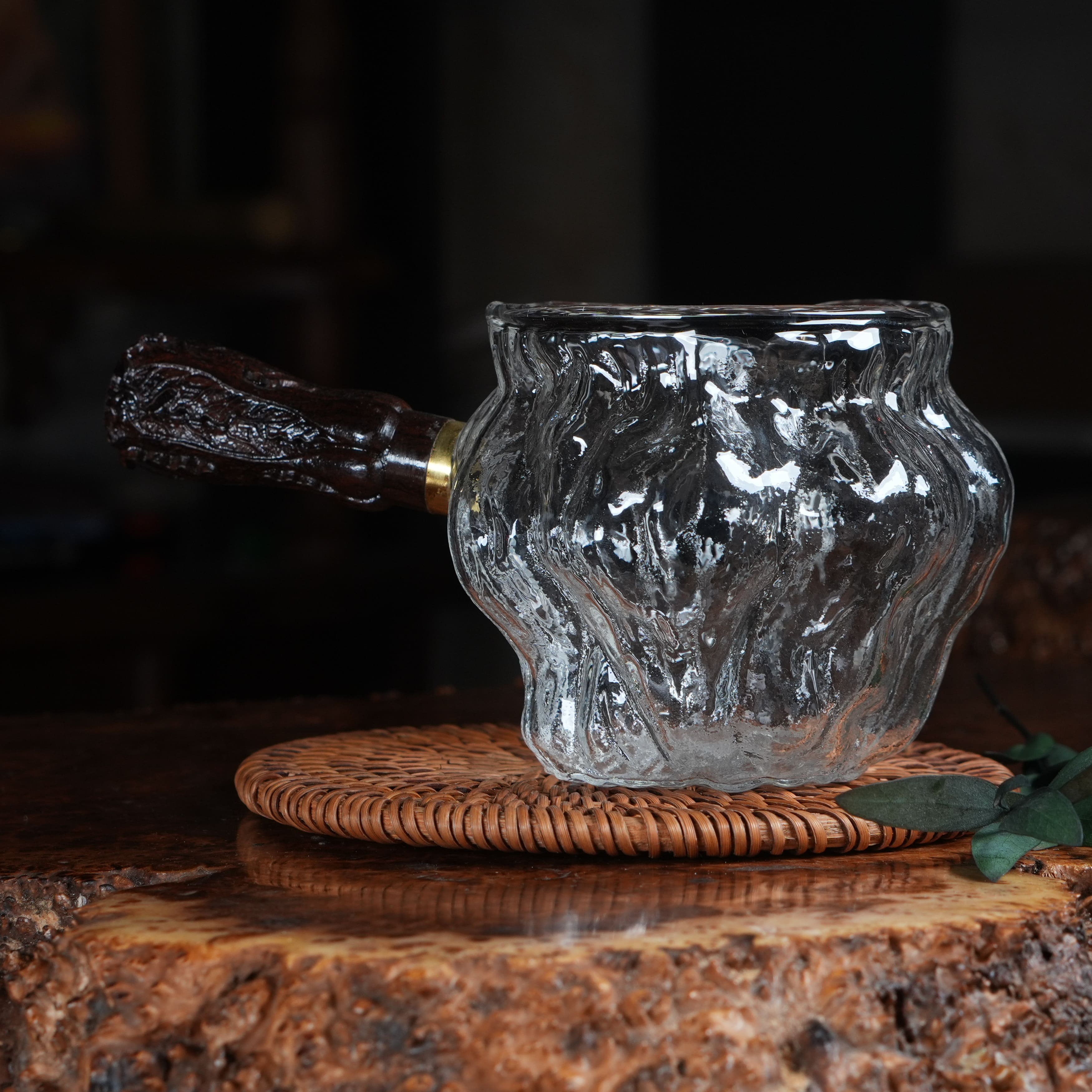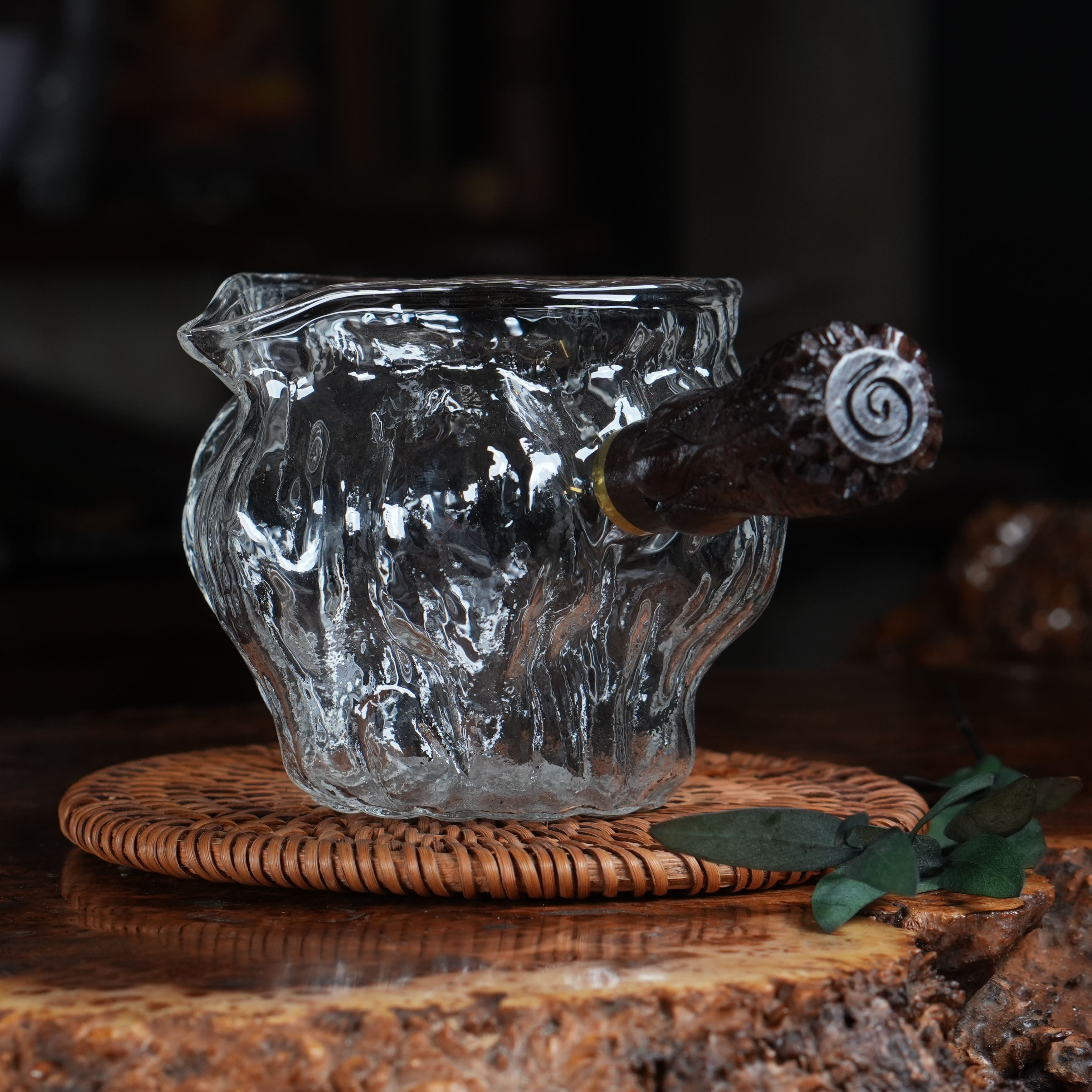 Пополните вашу чайную коллекцию уникальным чахаем, который совмещает современную эстетику «стиляги» и традиционное мастерство стеклодува. Этот предмет, также известный как «Море чая» или гундаобей, выполнен из прозрачного стекла с фактурным рельефом, имитирующим натуральную древесину. Каждый экземпляр создаётся вручную по старинным технологиям, что делает его особенным.