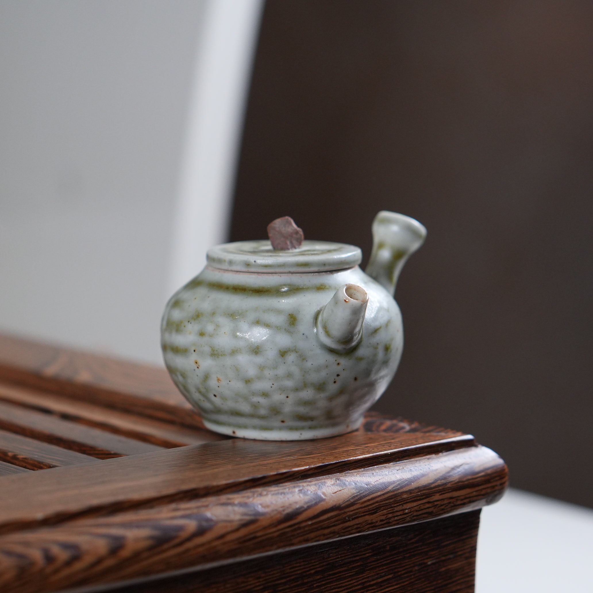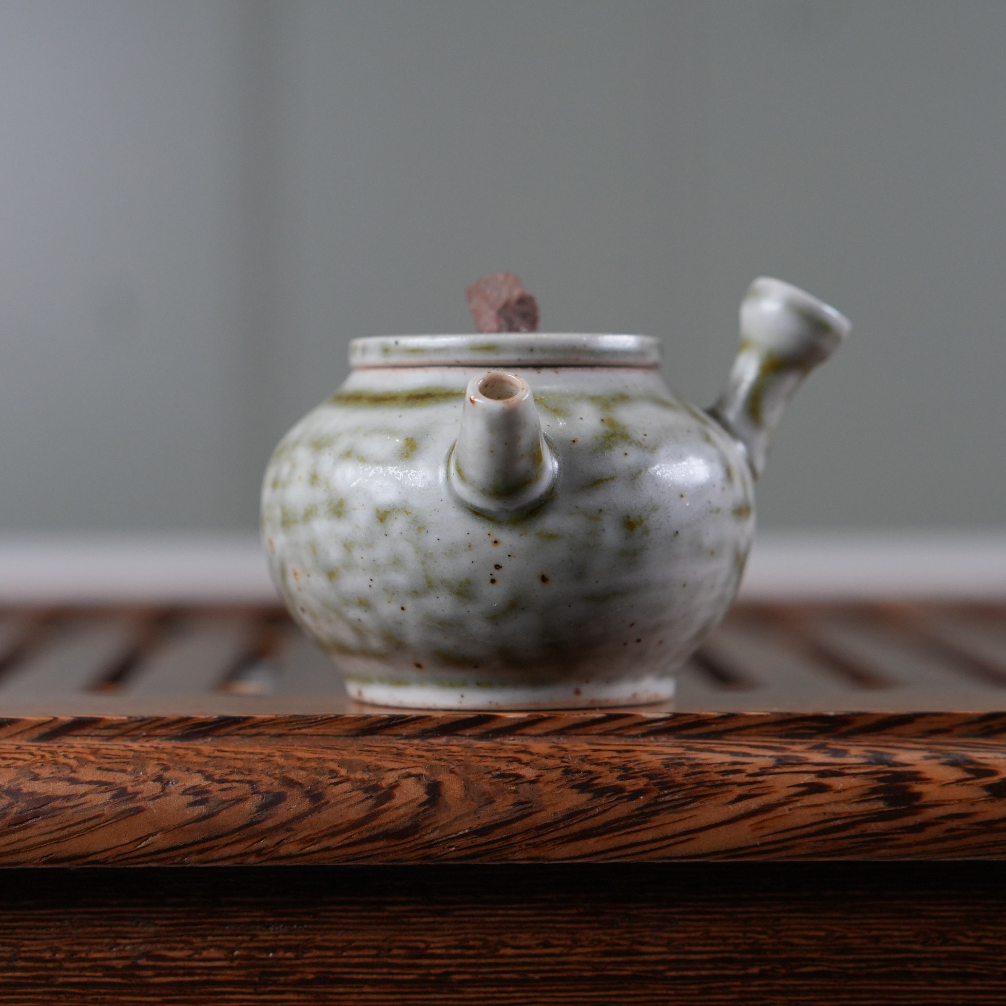 Чайничек "Малыш" эгоист из Дэхуа в зелено белых тонах (пузатая форма), 35мл