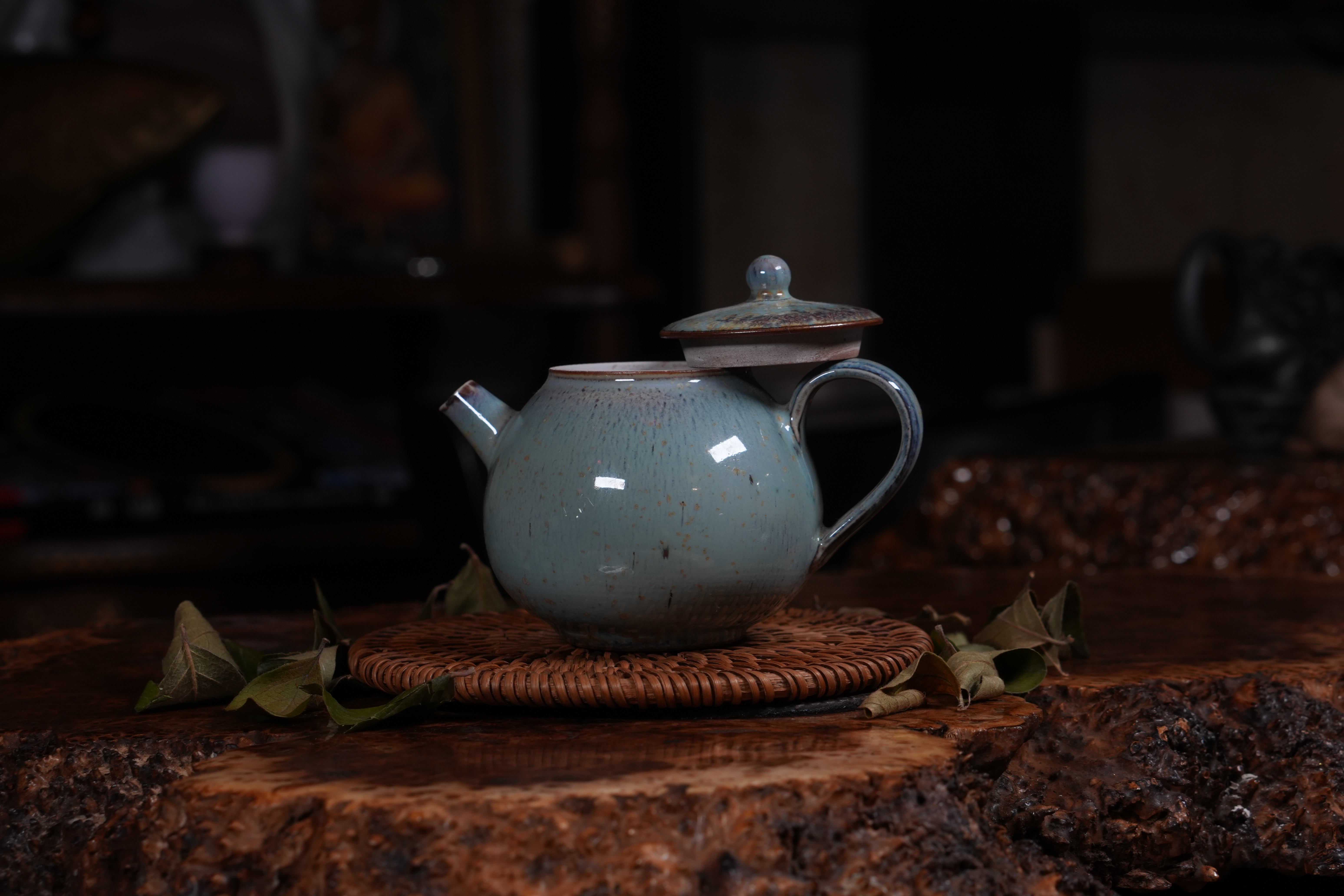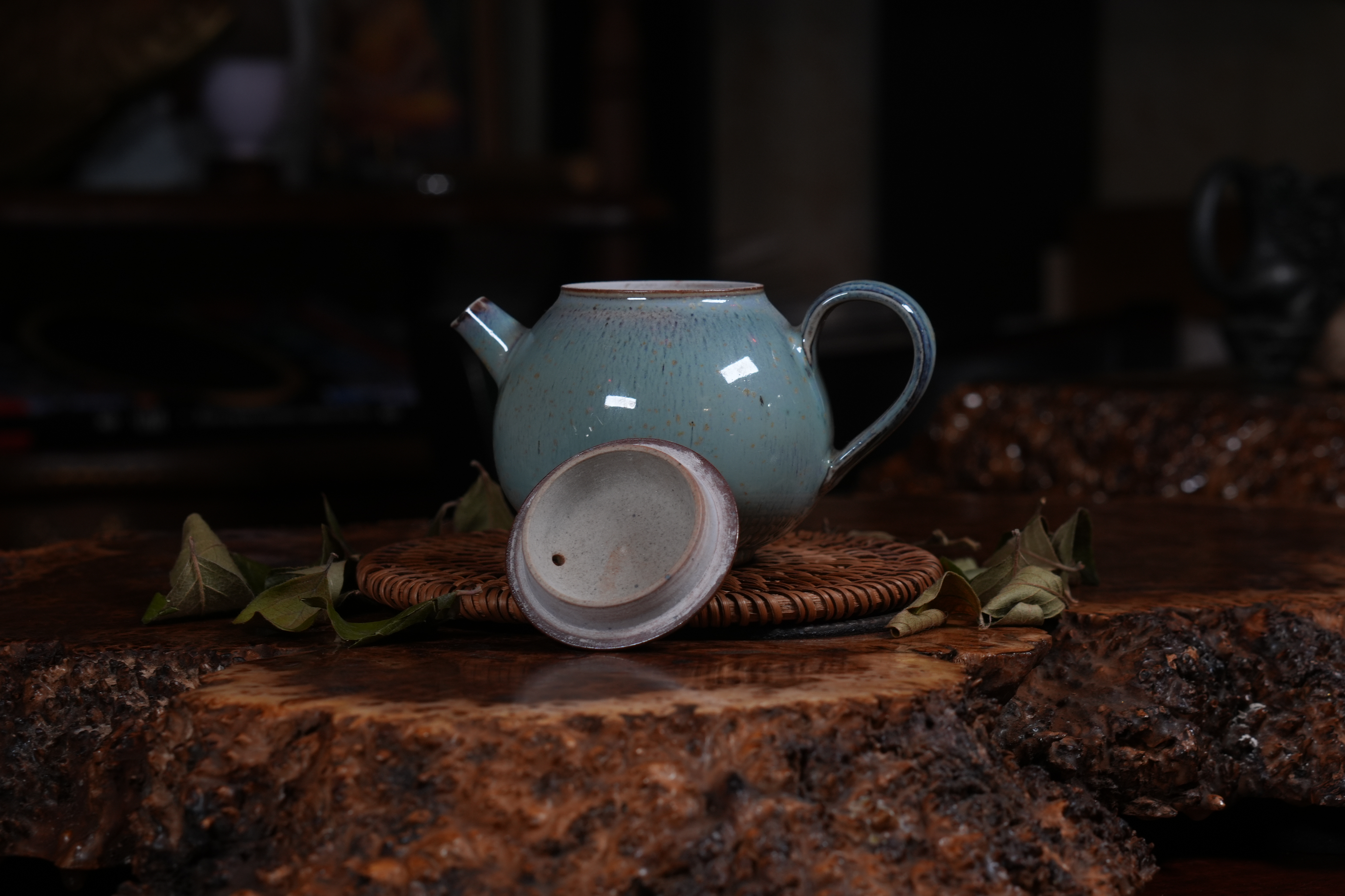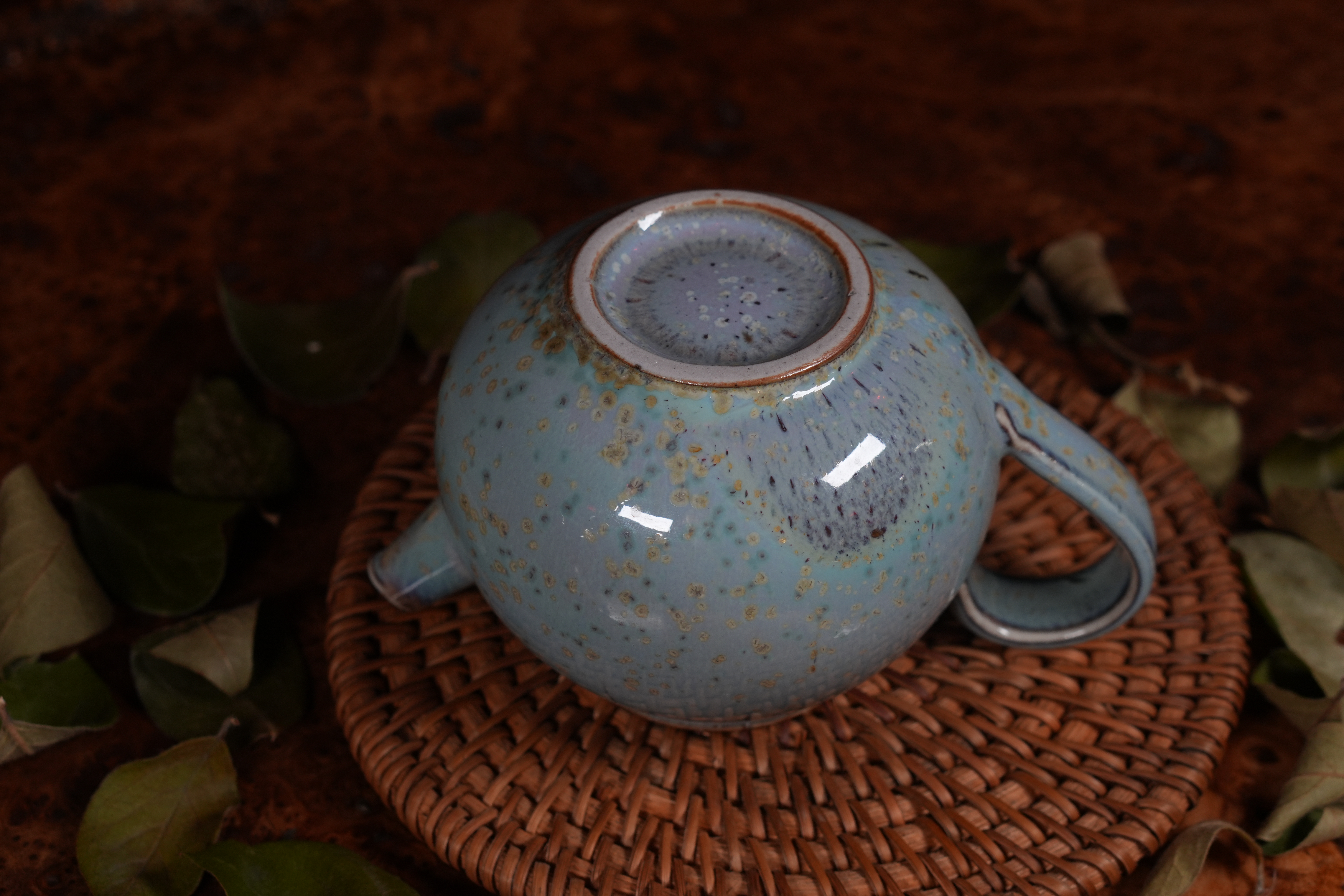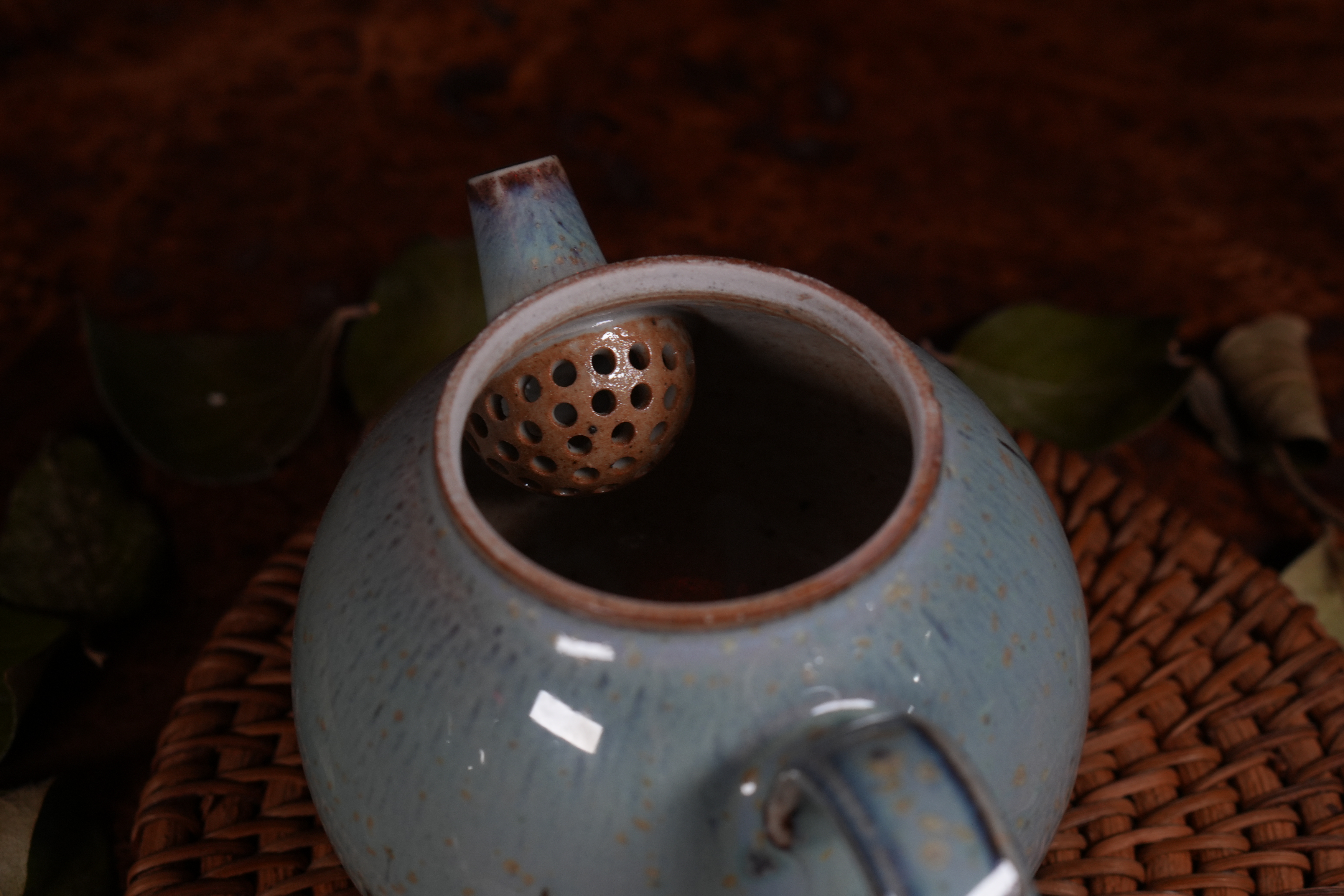 Фарфоровое исполнение. Сделан цзиндэчжэньскими керамистами. Обладает хорошей эргономикой: хорошей посадкой крышки и ситом-гнездом, делающий заваривание чая комфортным;