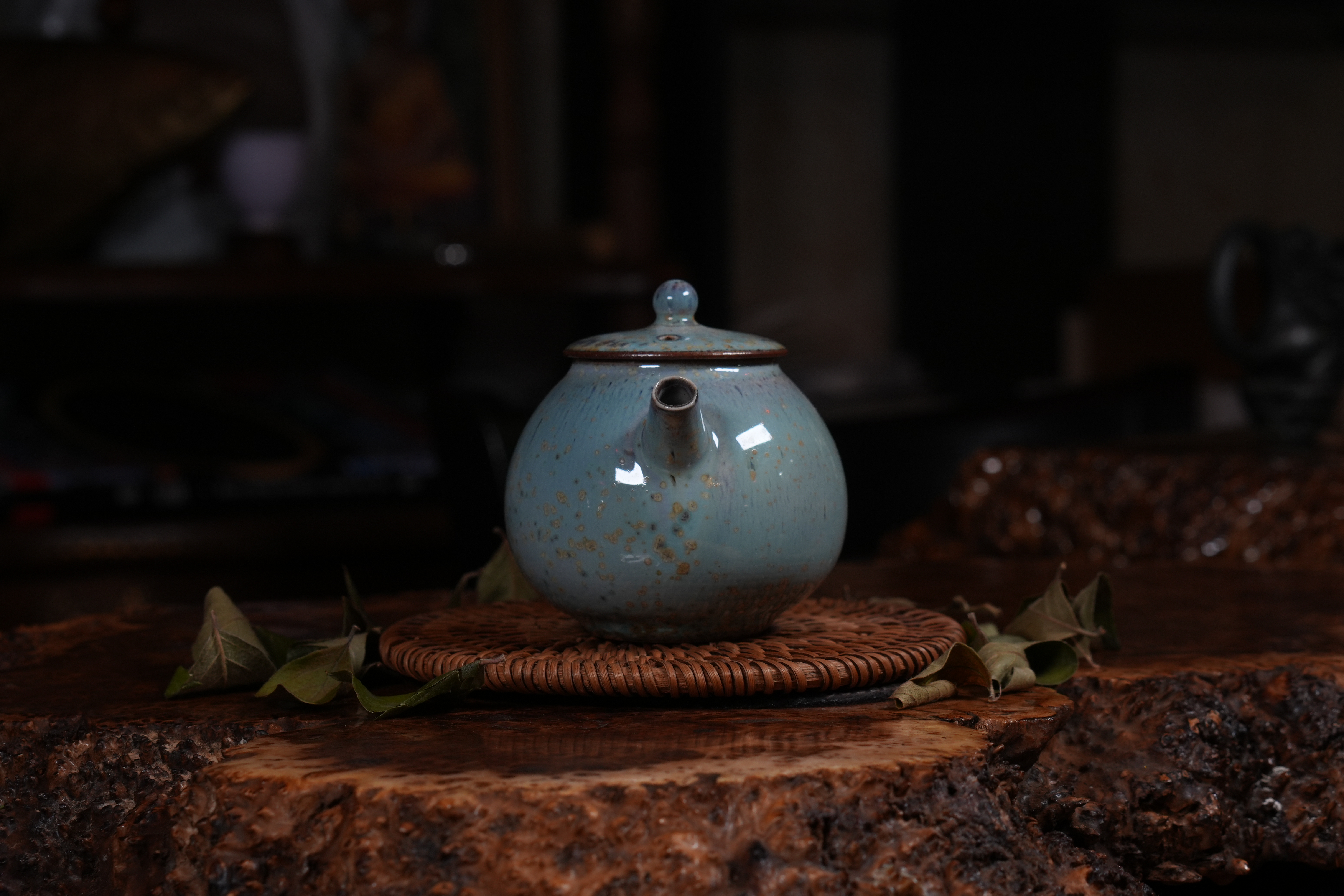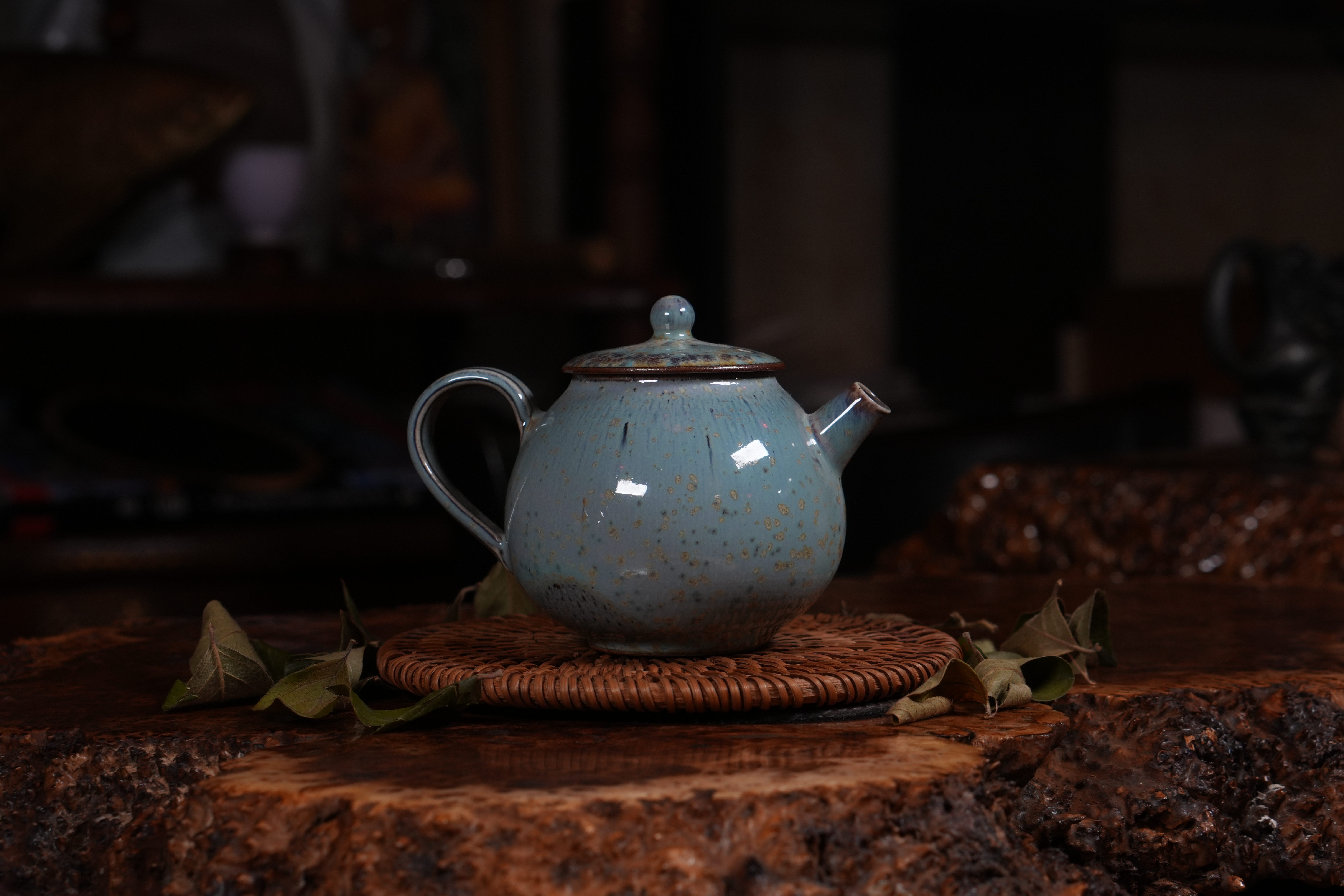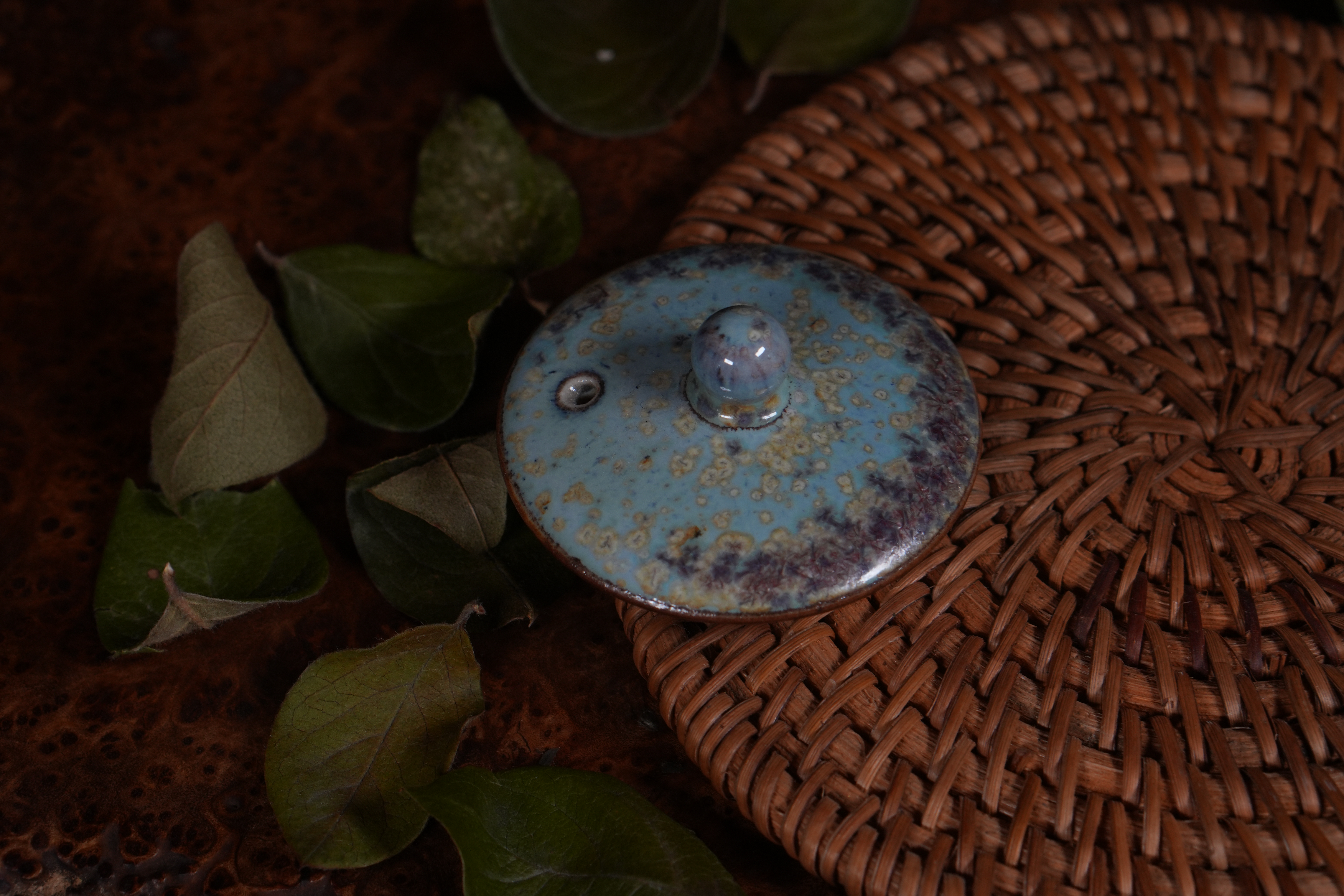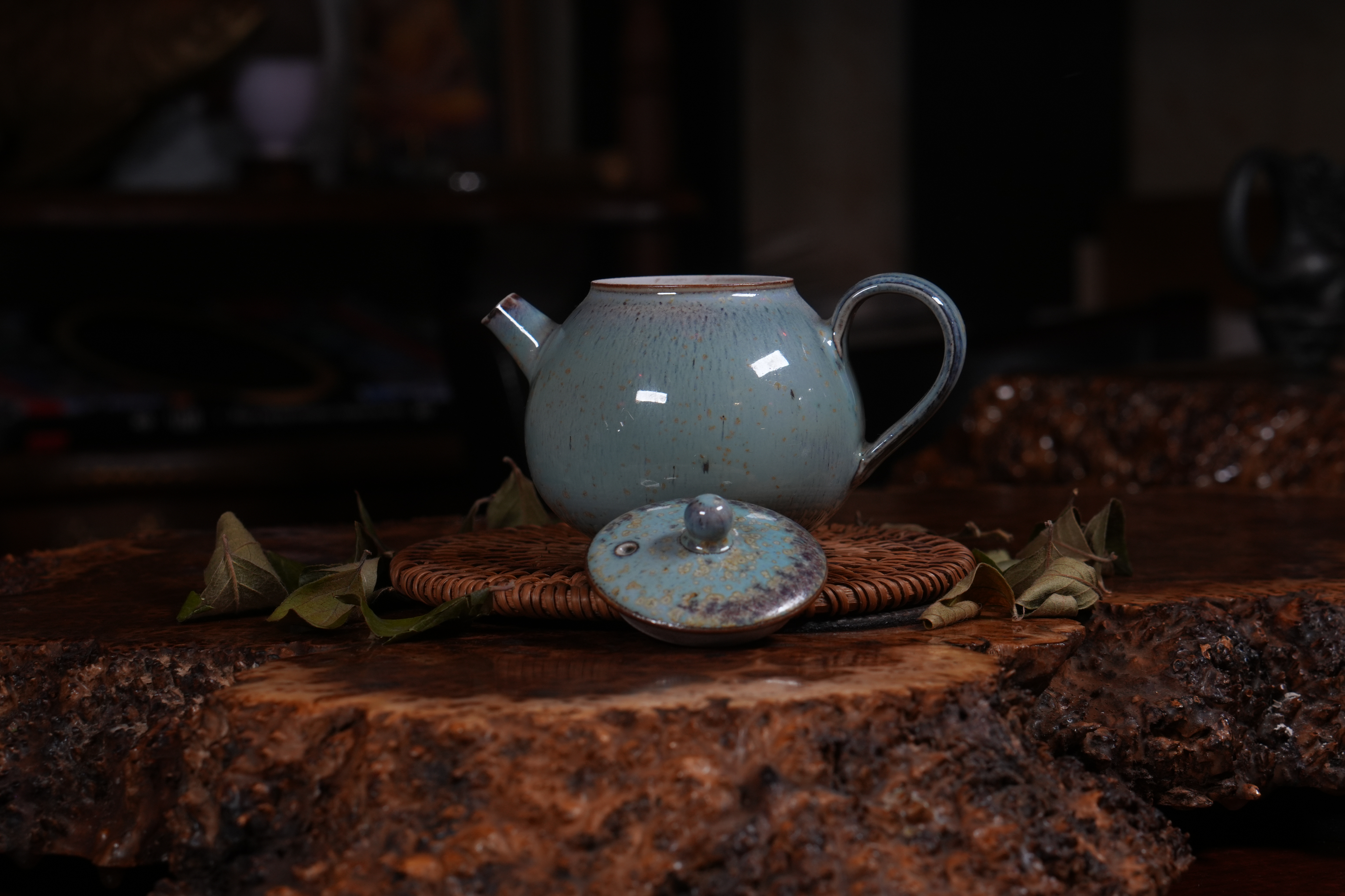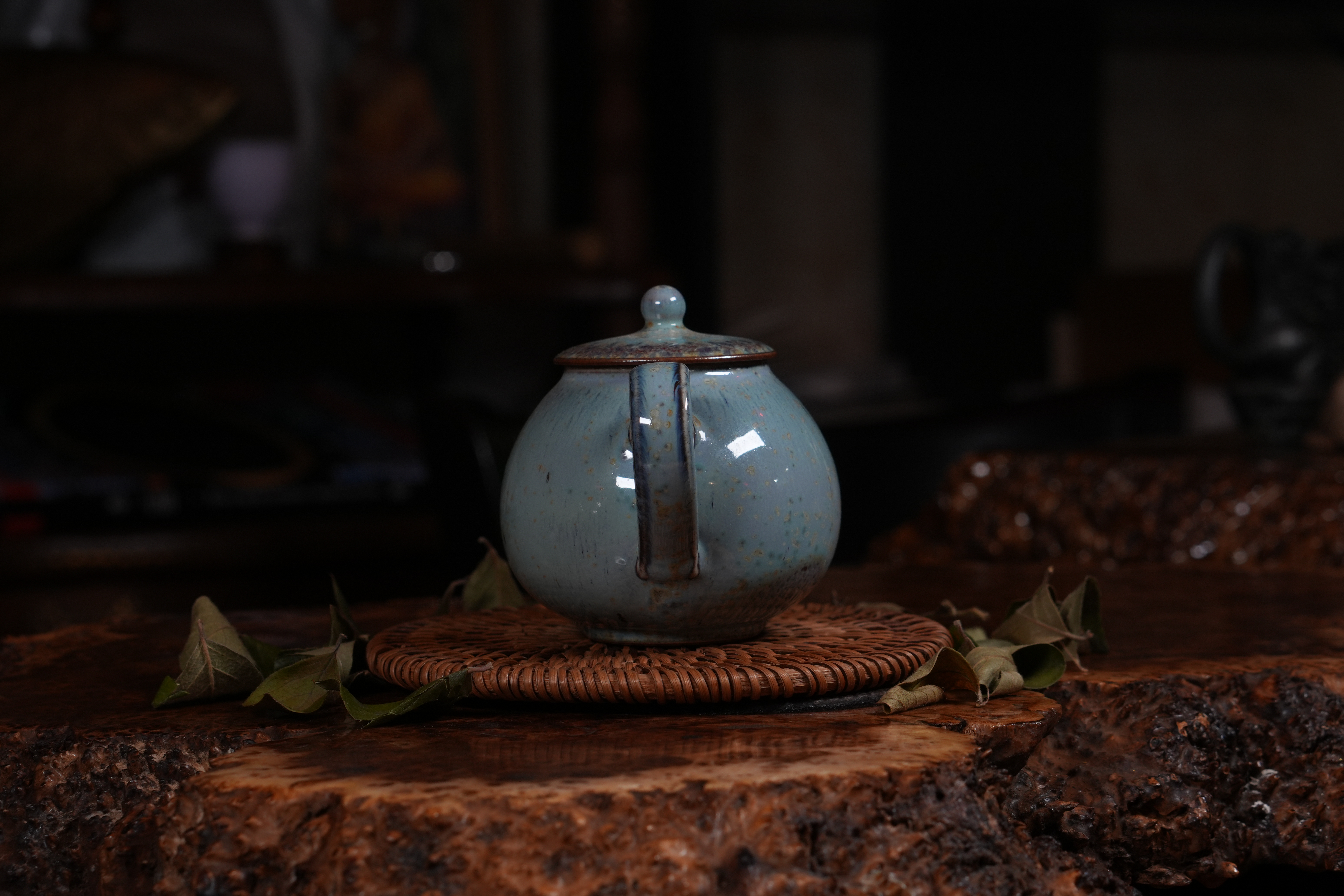 Фарфоровое исполнение. Сделан цзиндэчжэньскими керамистами. Обладает хорошей эргономикой: хорошей посадкой крышки и ситом-гнездом, делающий заваривание чая комфортным;