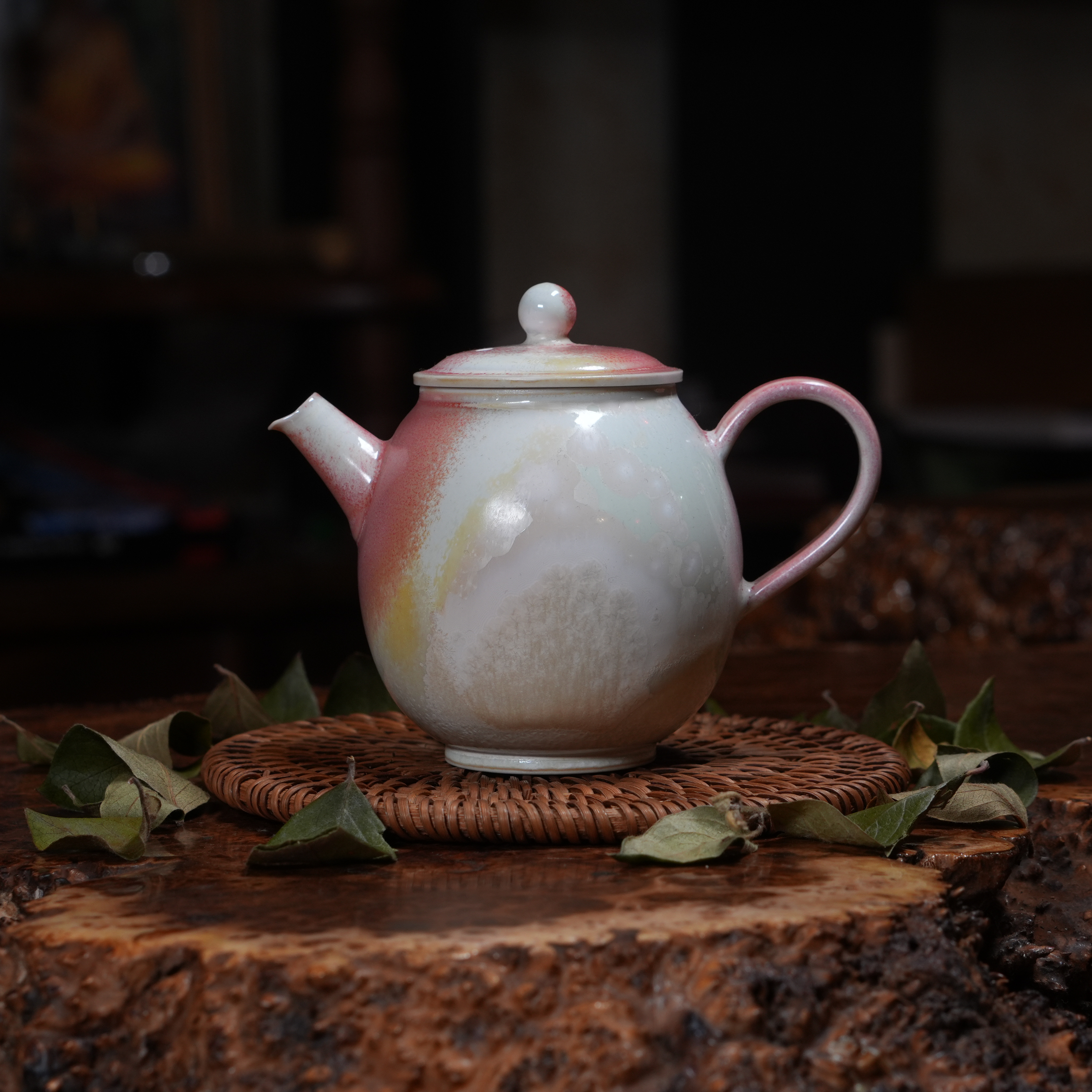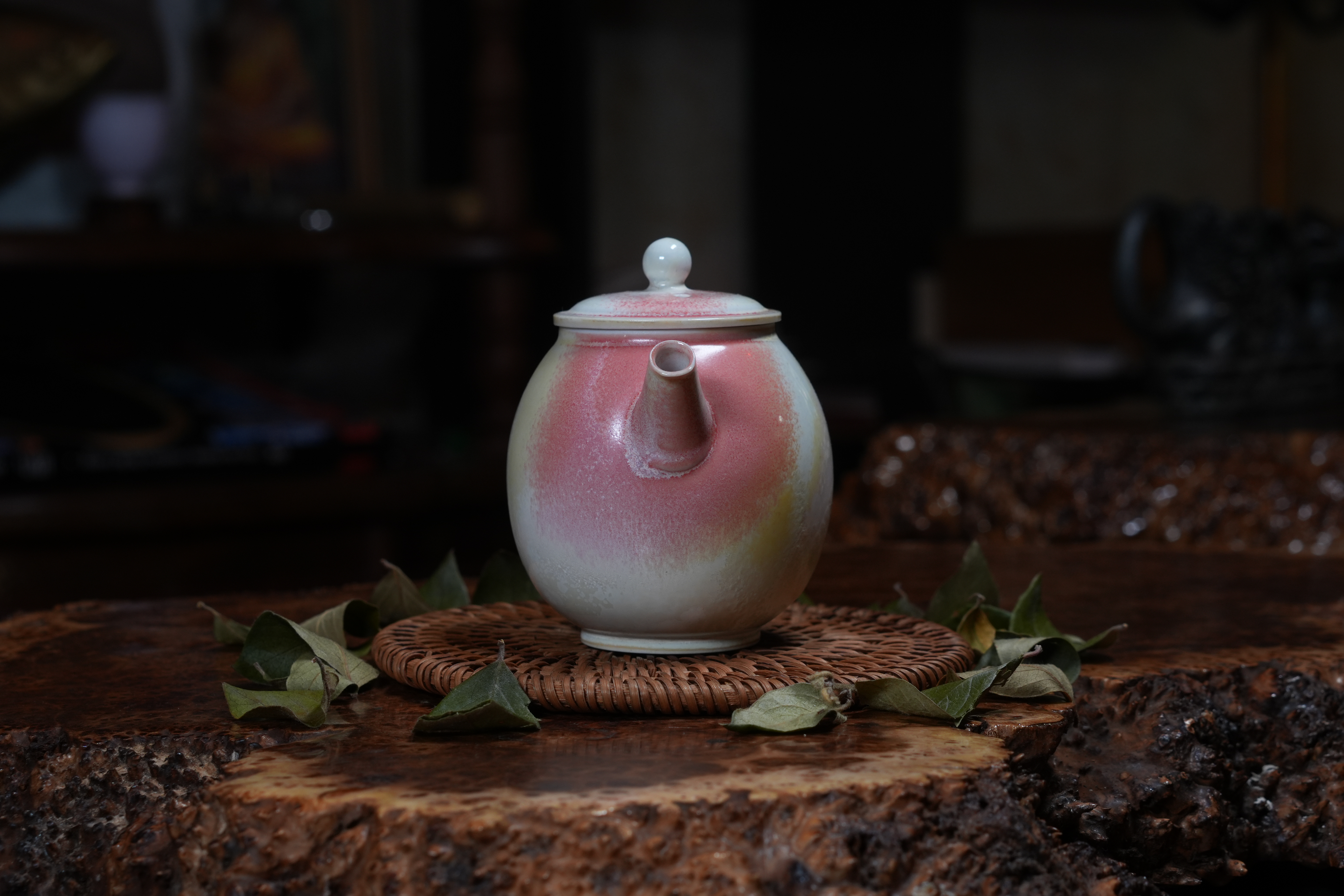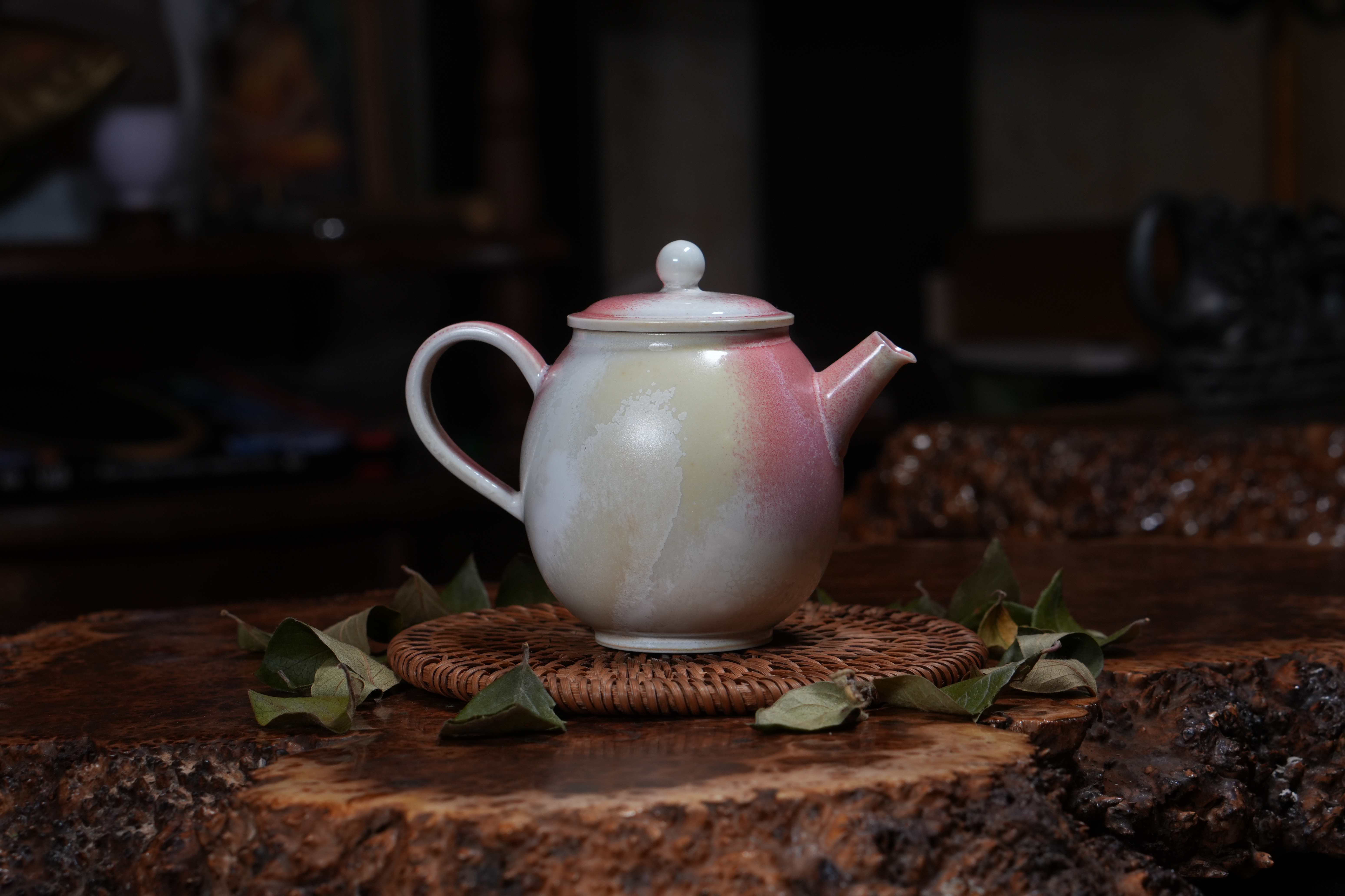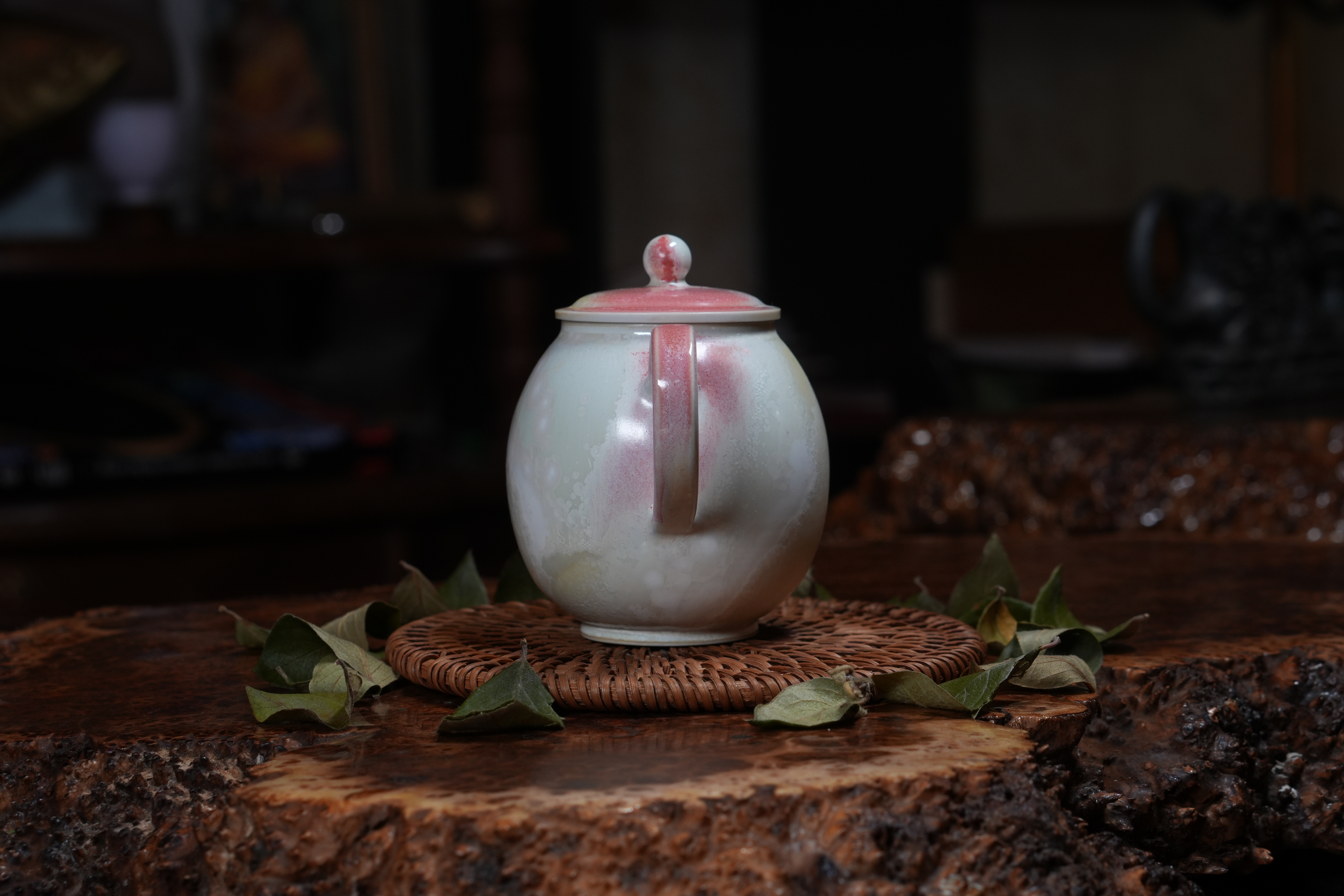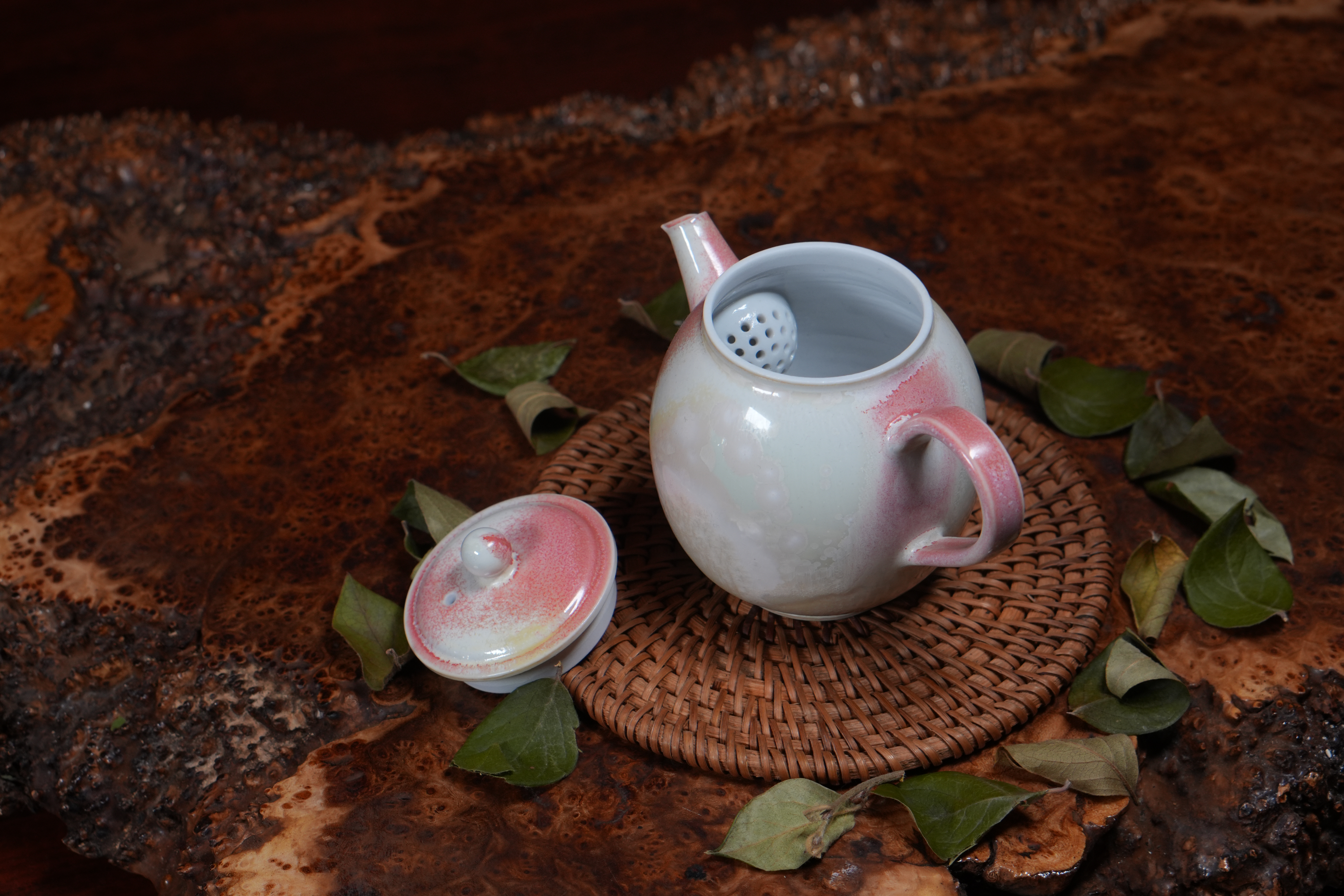 Фарфоровое исполнение. Сделан цзиндэчжэньскими керамистами. Обладает хорошей эргономикой: хорошей посадкой крышки и ситом-гнездом, делающий заваривание чая комфортным;