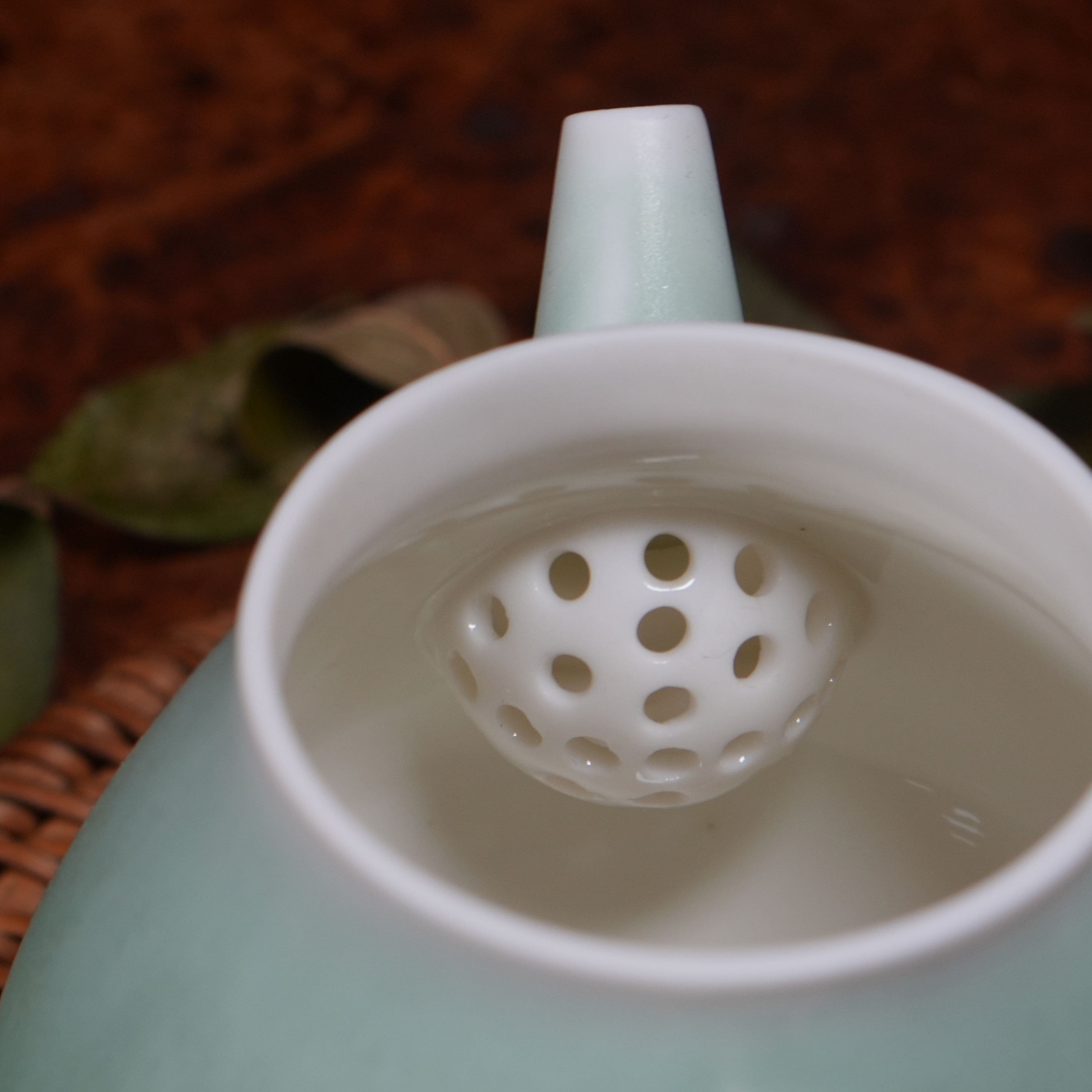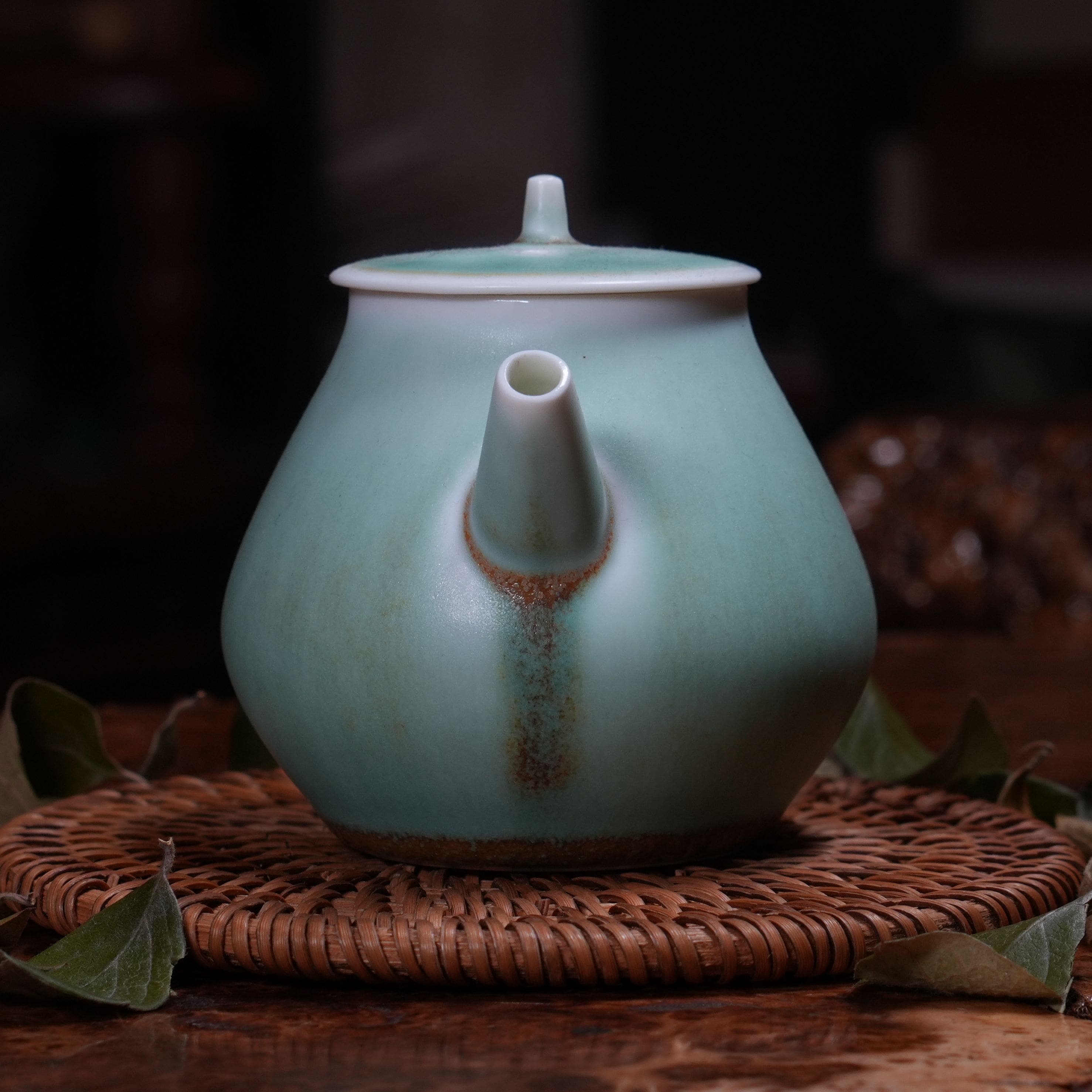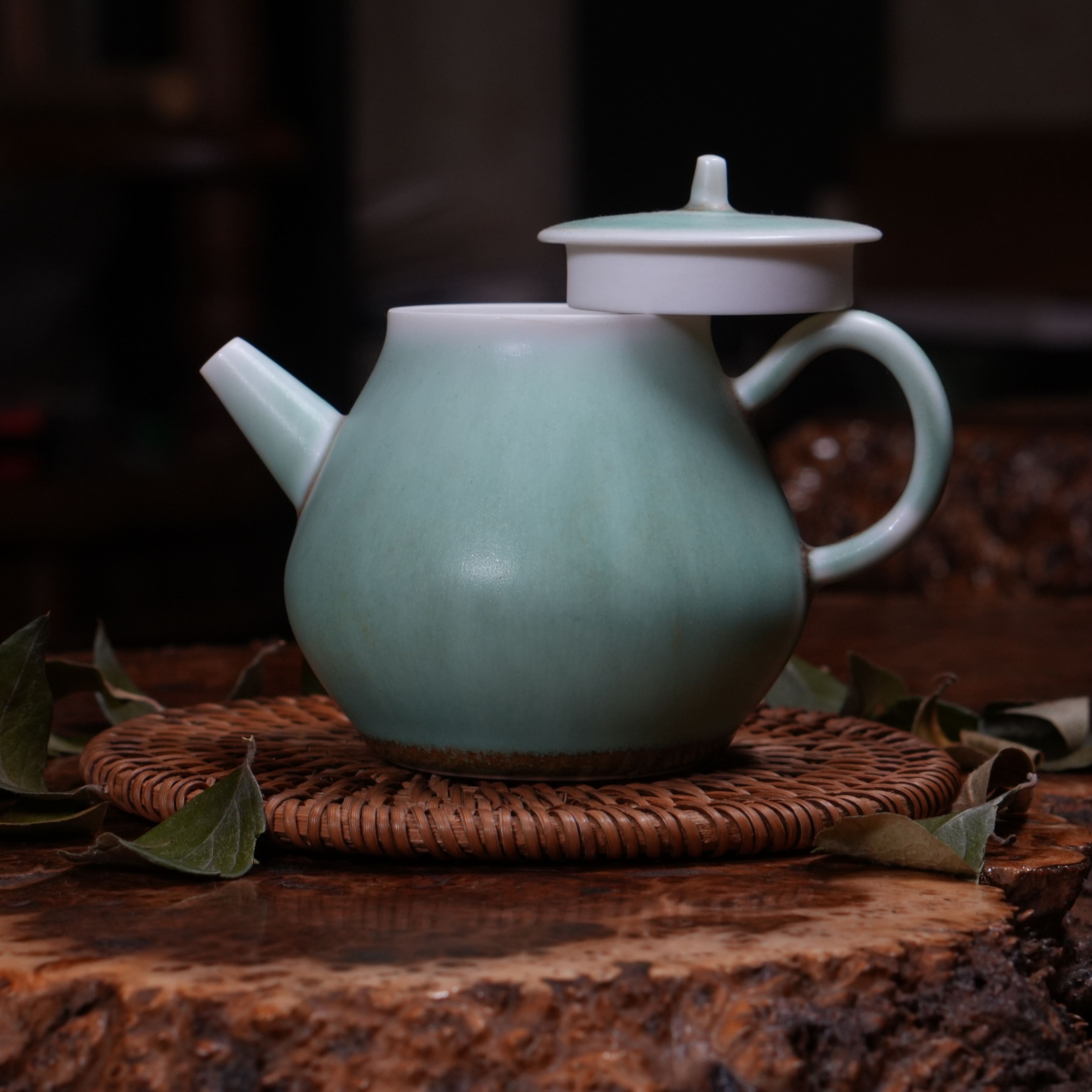 Чайник из фарфора с уникальной глазурью цвета Тиффани.