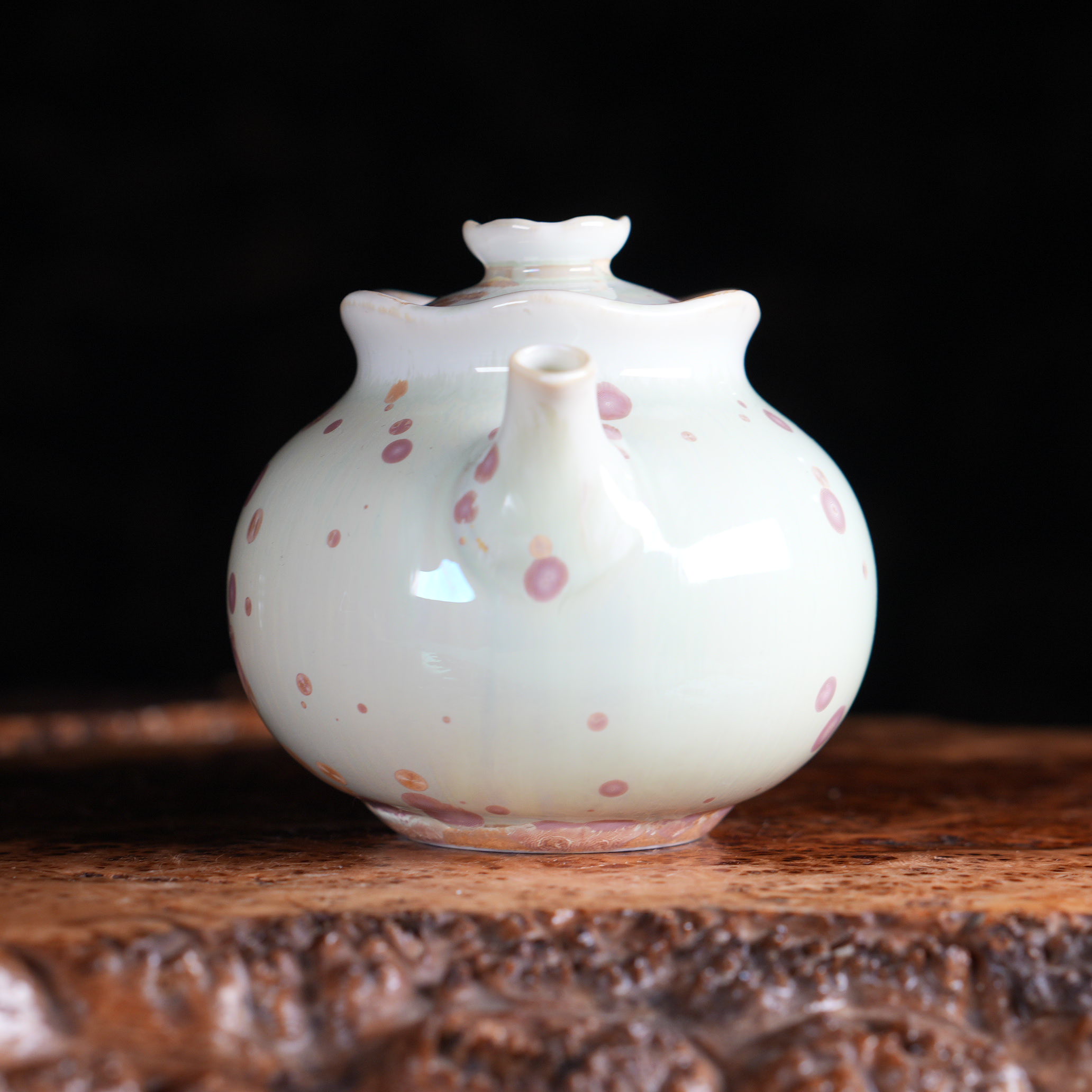 Чайник создан вручную мастерами Цзиндэчжэня. Кристаллическая глазурь с радиальной структурой требует высочайшего мастерства и точного соблюдения температурного режима. Распределение брызг, форма цветка на крышке, волнообразный край - каждый элемент выполнен вручную и существует в единственном экземпляре. Вы получаете не тиражное изделие, а личную работу мастера.