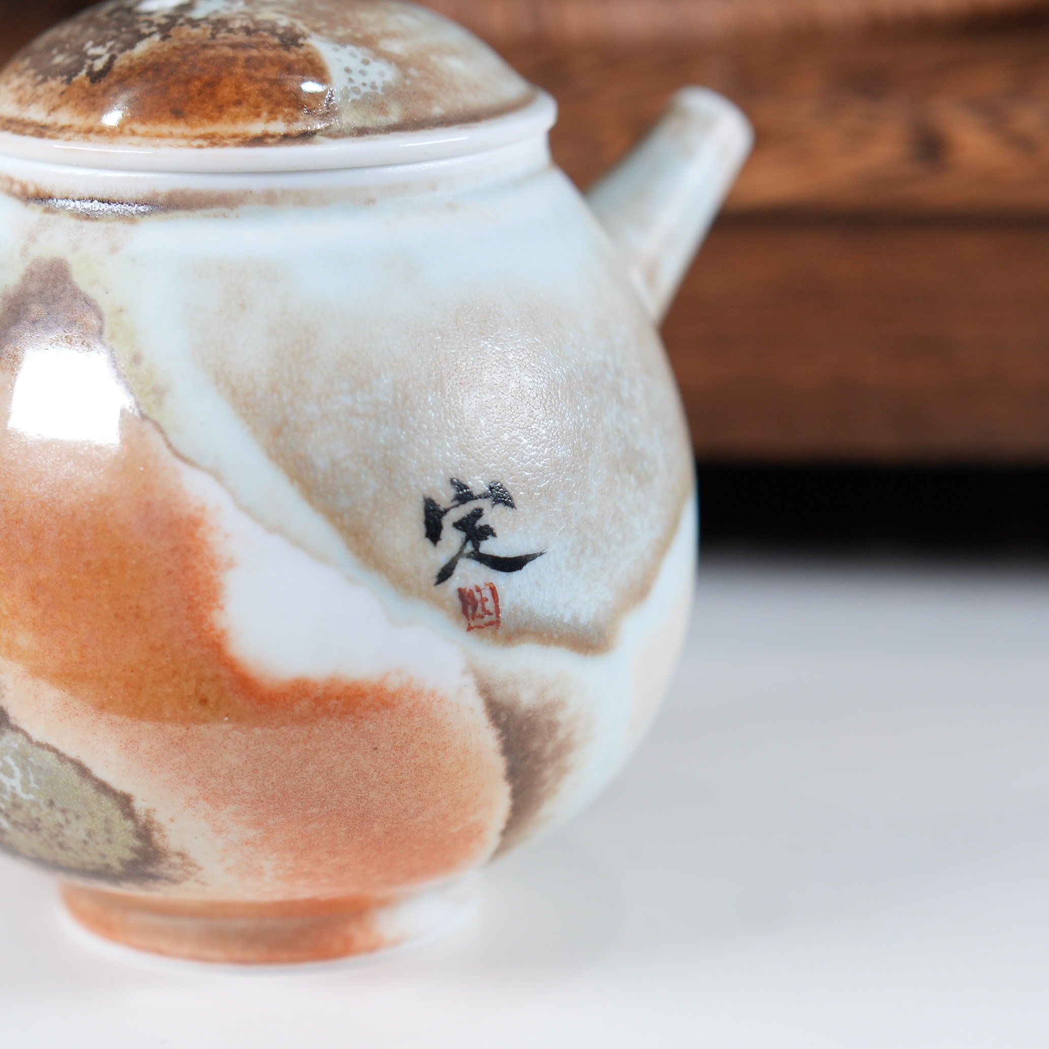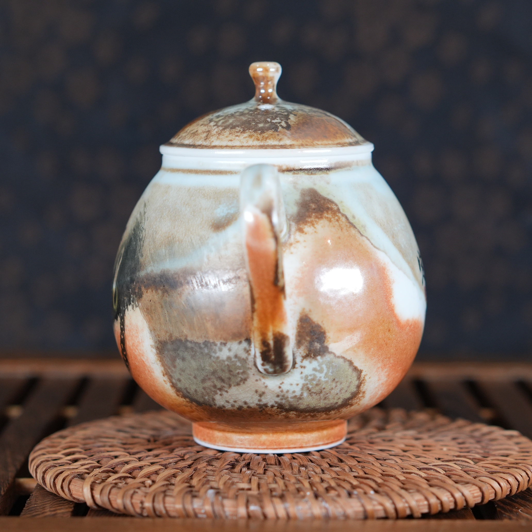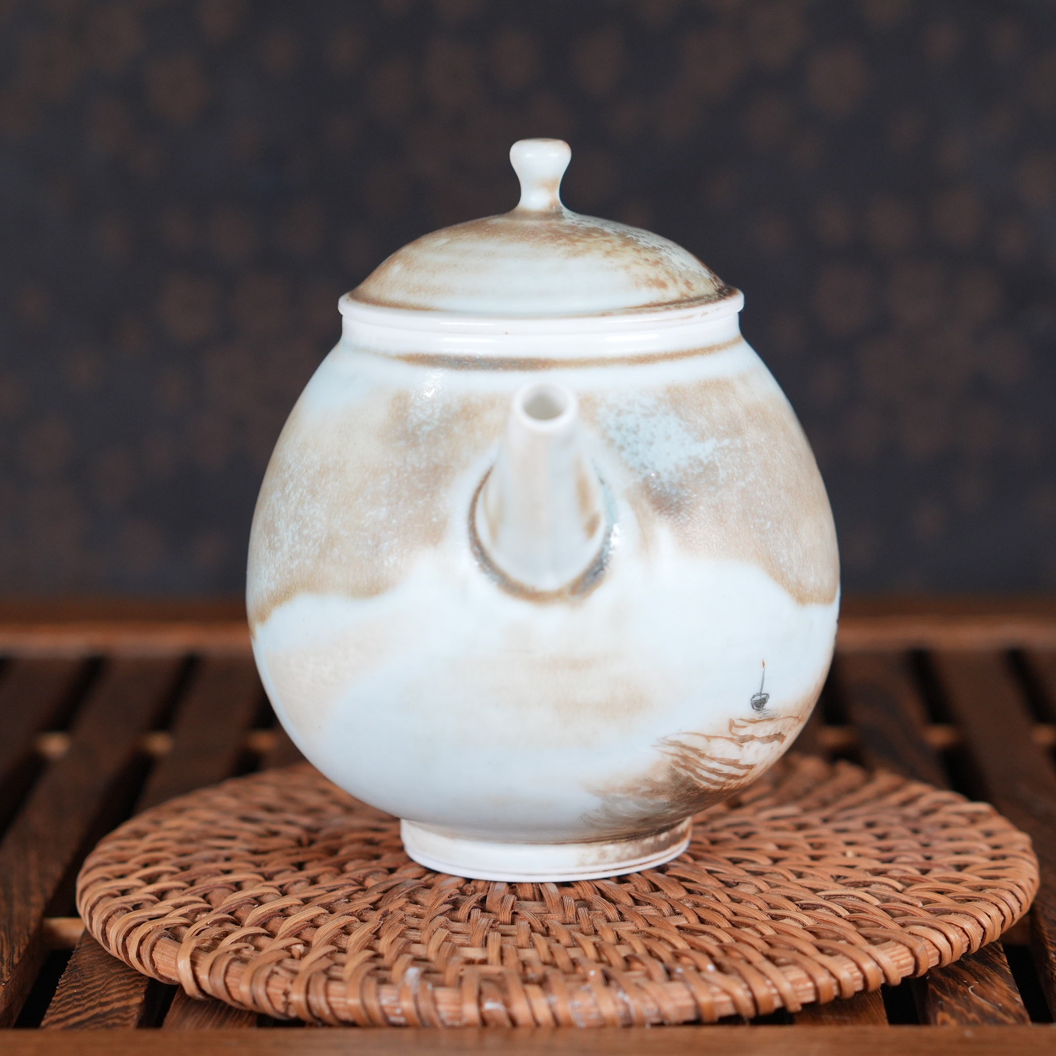 Чайник выполнен из высококачественного фарфора Цзиндэчжэнь, прошедшего дровяной обжиг. В отличие от газовых или электрических печей, дровяной обжиг - это всегда сотрудничество с природными стихиями. Древесный пепел, пламя и дым создают на поверхности фарфора уникальные эффекты, которые невозможно воспроизвести искусственно. В результате фарфор приобретает особую глубину и благородную текстуру.