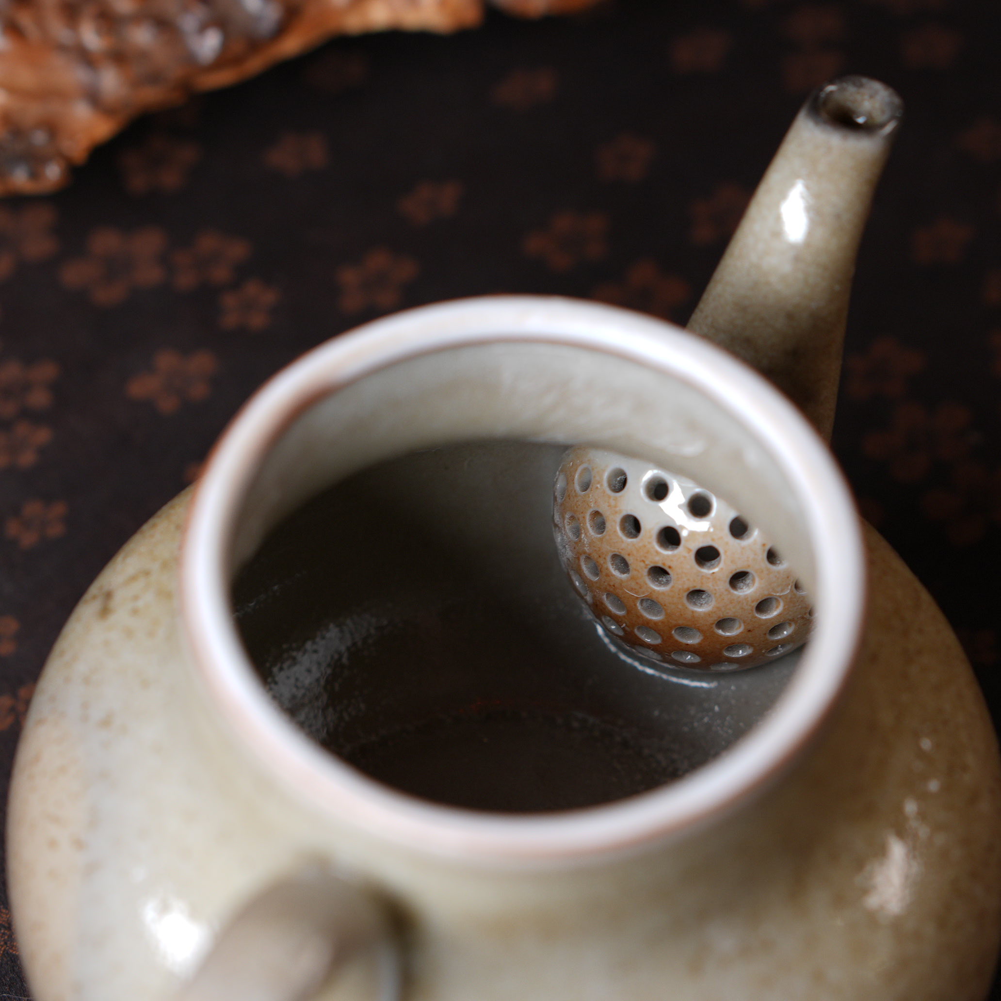 Внутри чайник тоже глазурованный, можно заваривать любые чаи.