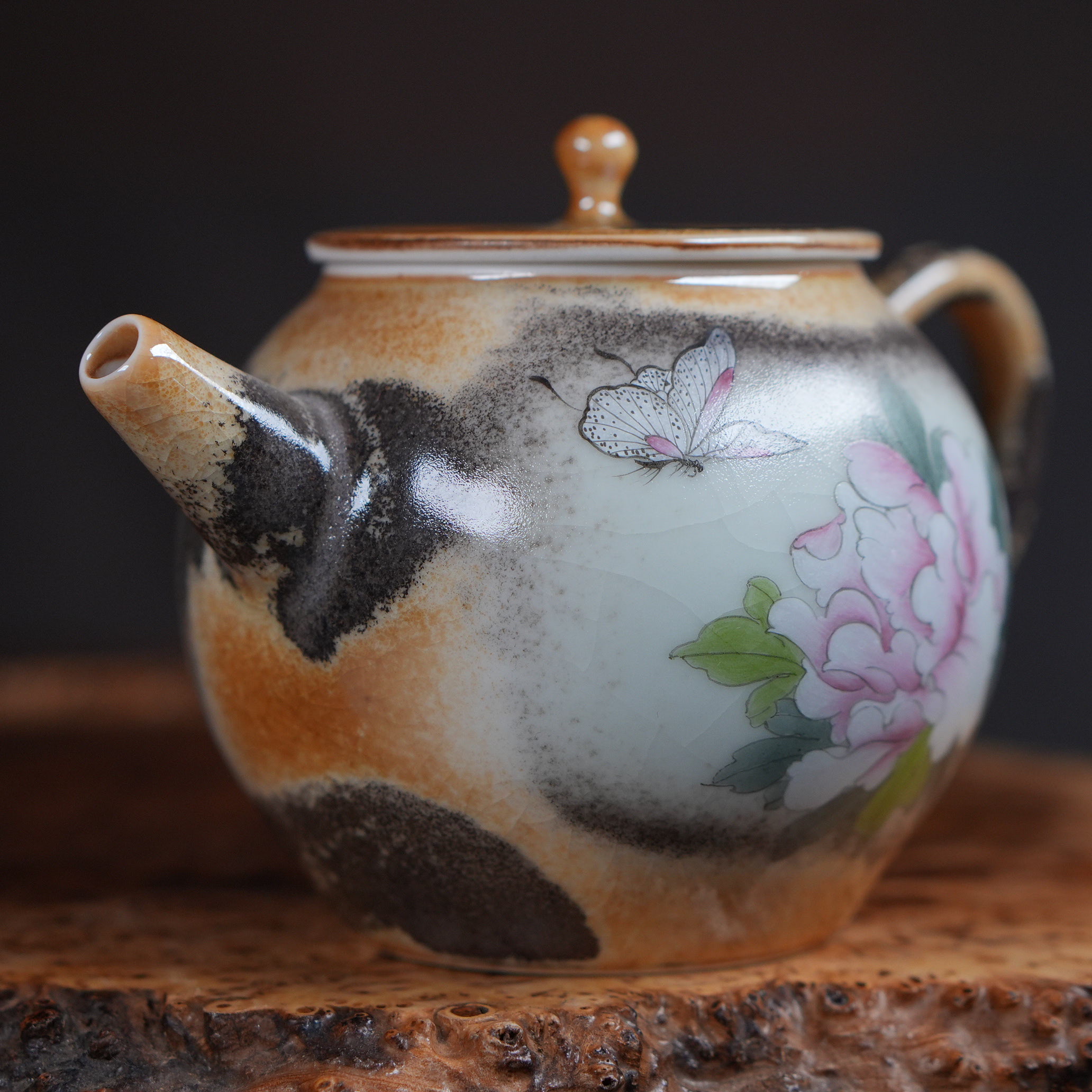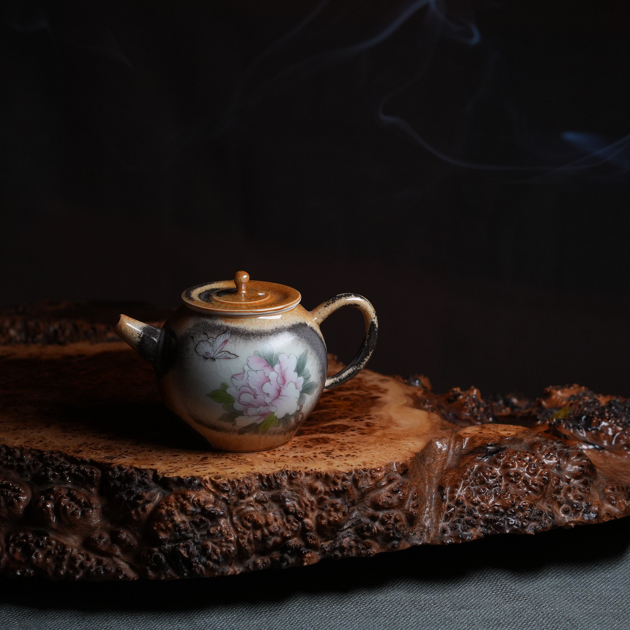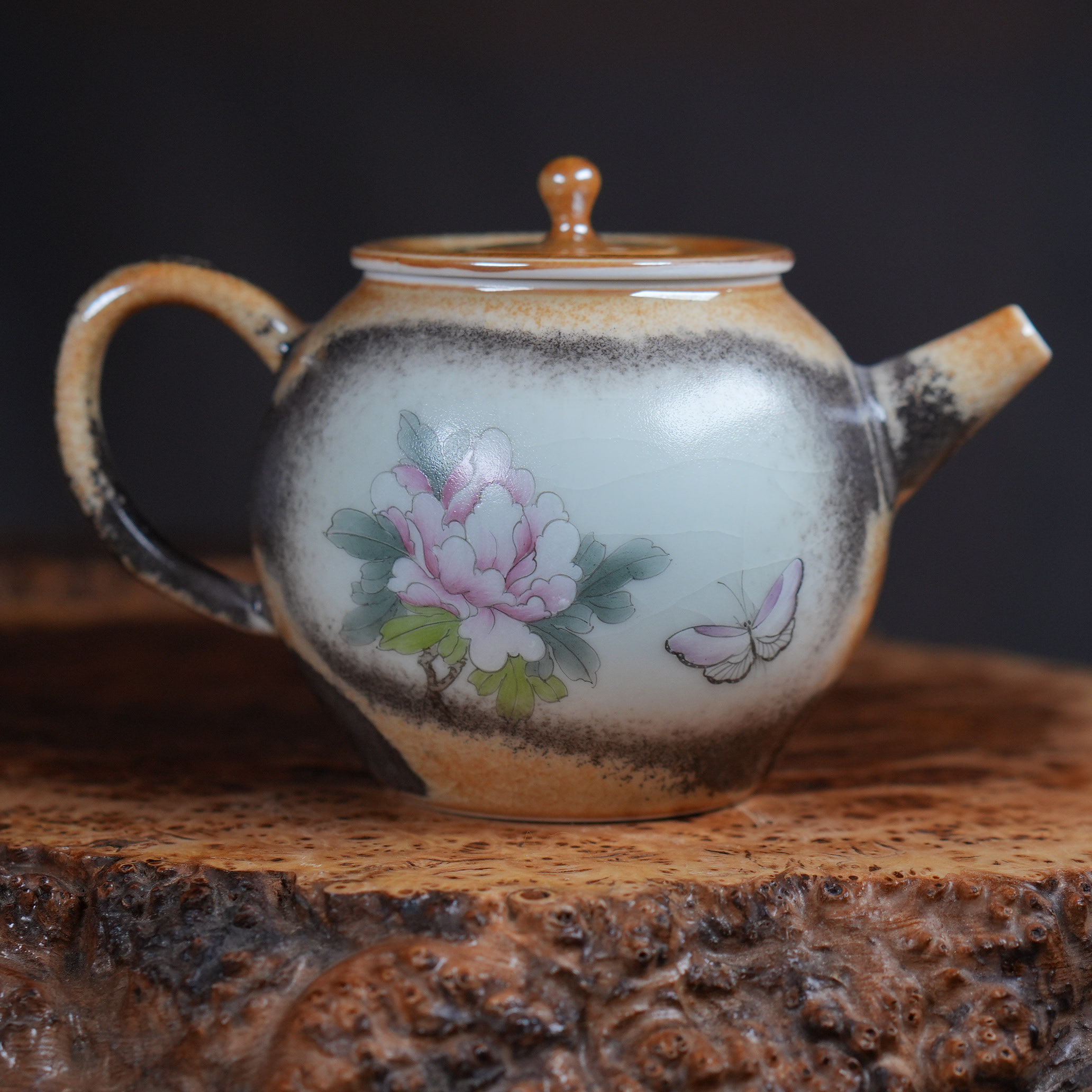 Чайник "Пион и бабочка" 180 мл фарфор Цзиндэчжэнь