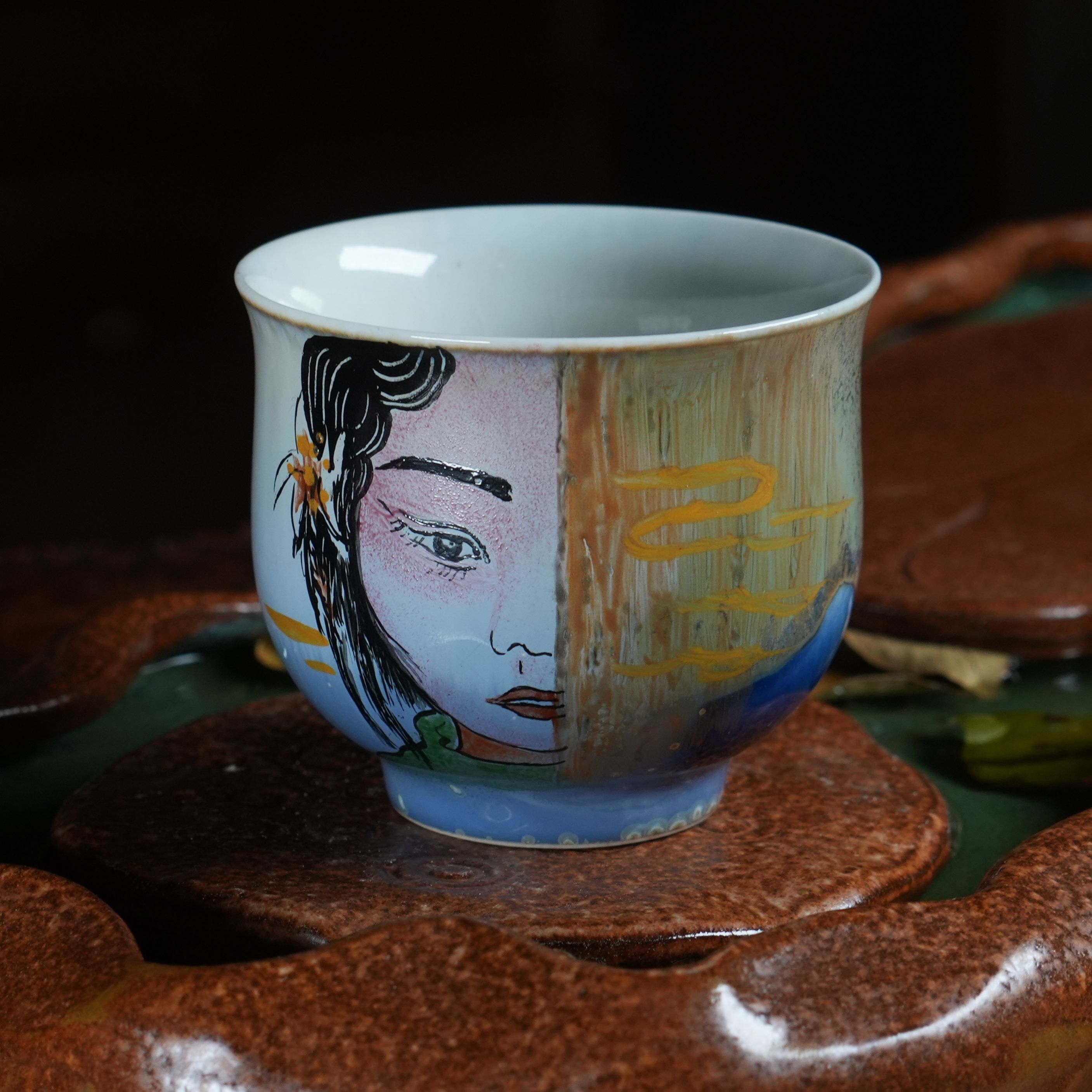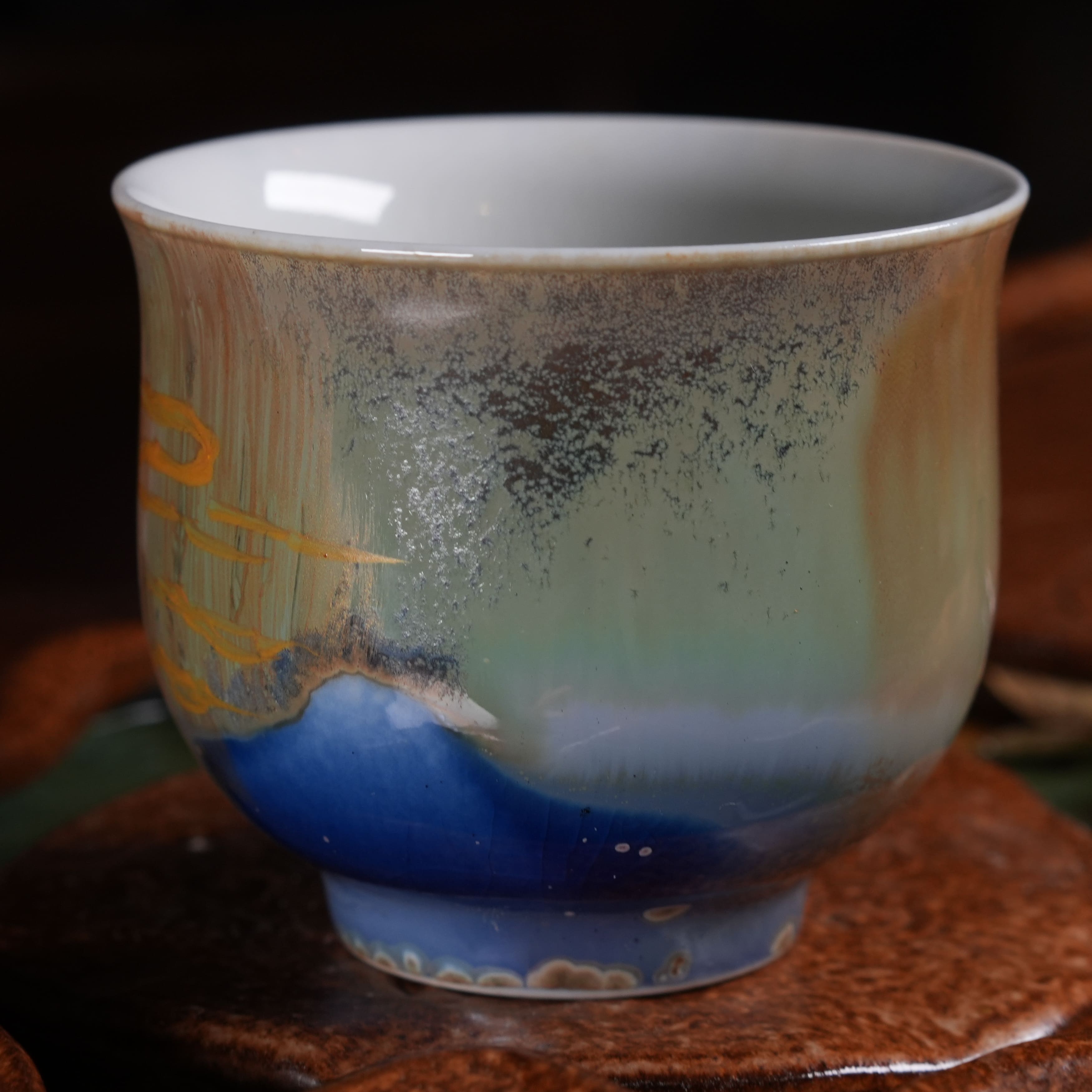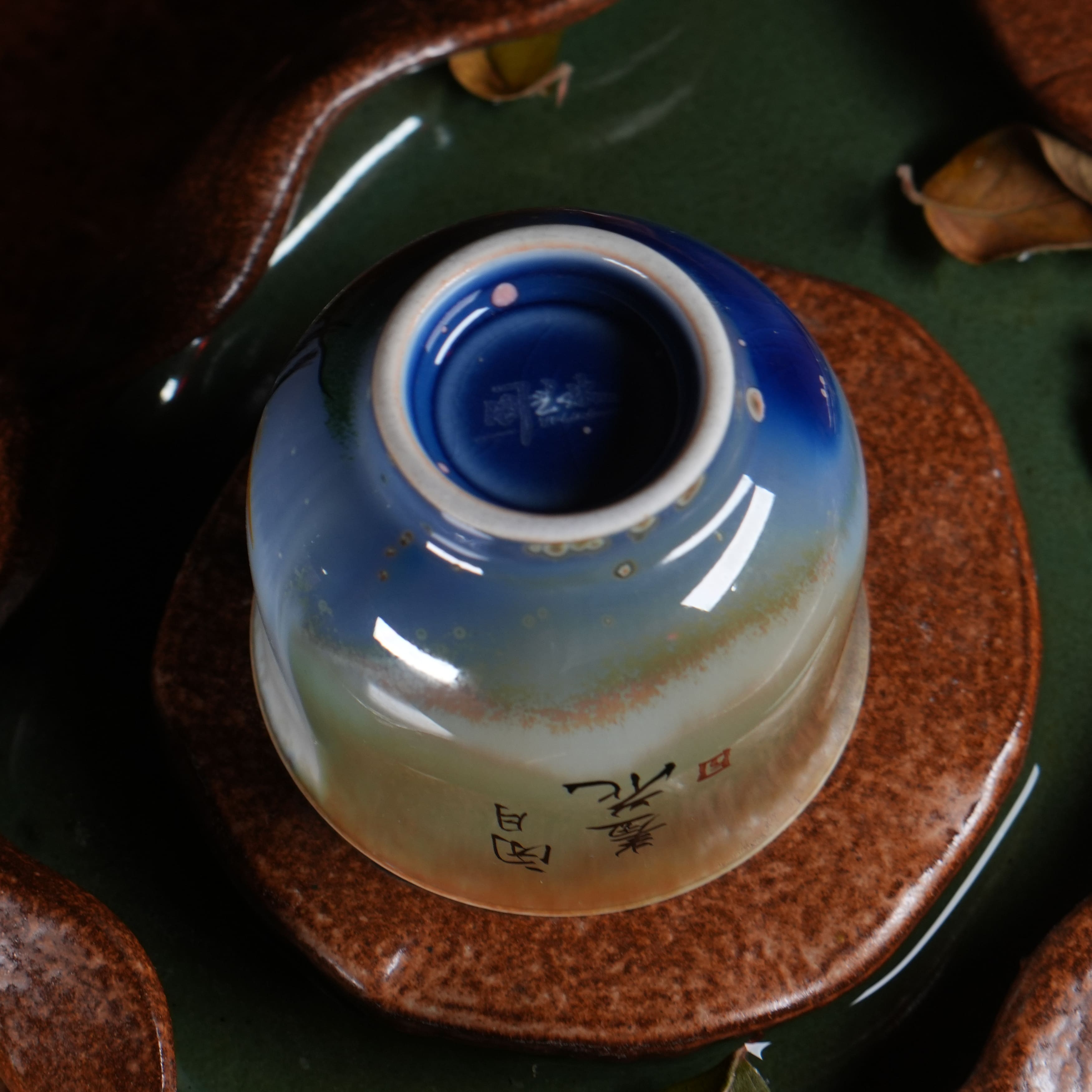 Пиала из толстостенного фарфора от мастеров Цзиндэчжэнь. Ручная роспись. Многослойная глазурь и кристаллы.