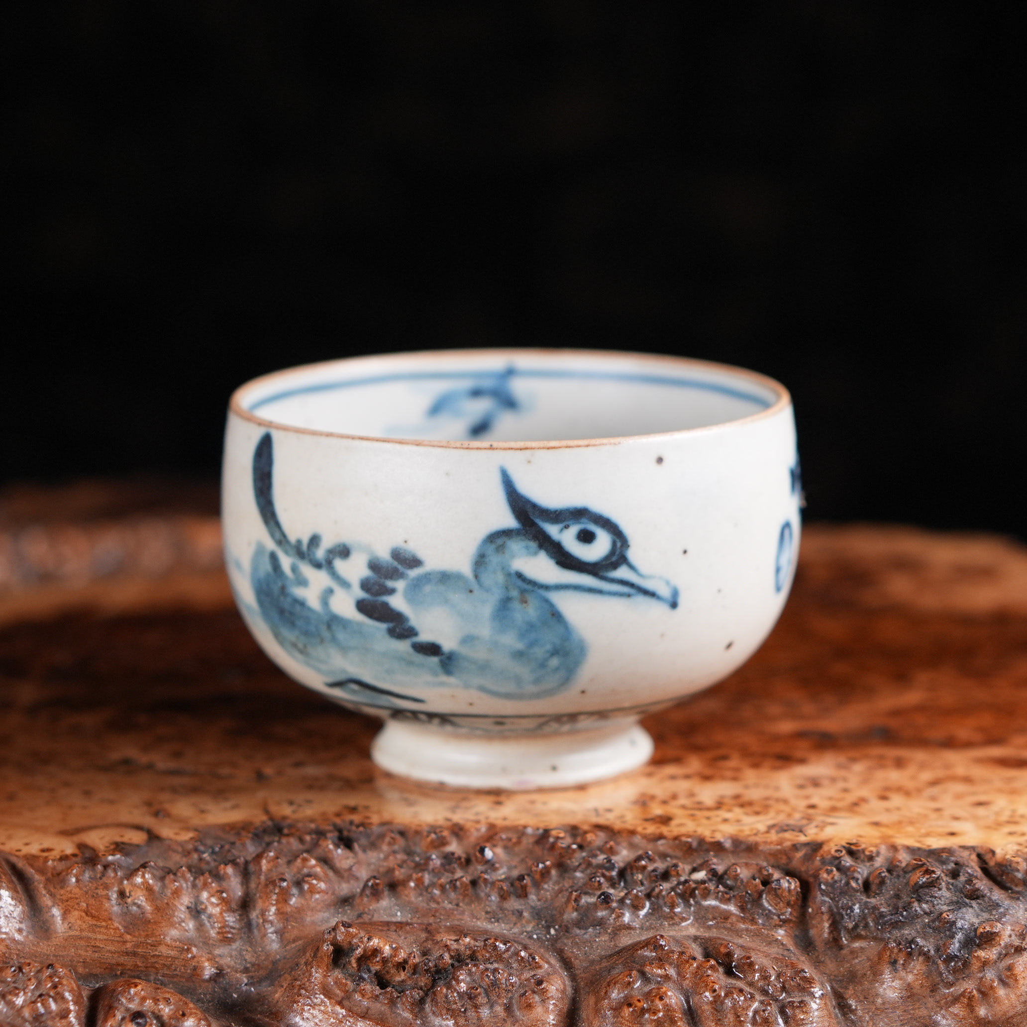 На одной стороне пиалы изображена утка-мандаринка - символ супружеской верности, любви и счастья в китайской традиции.
