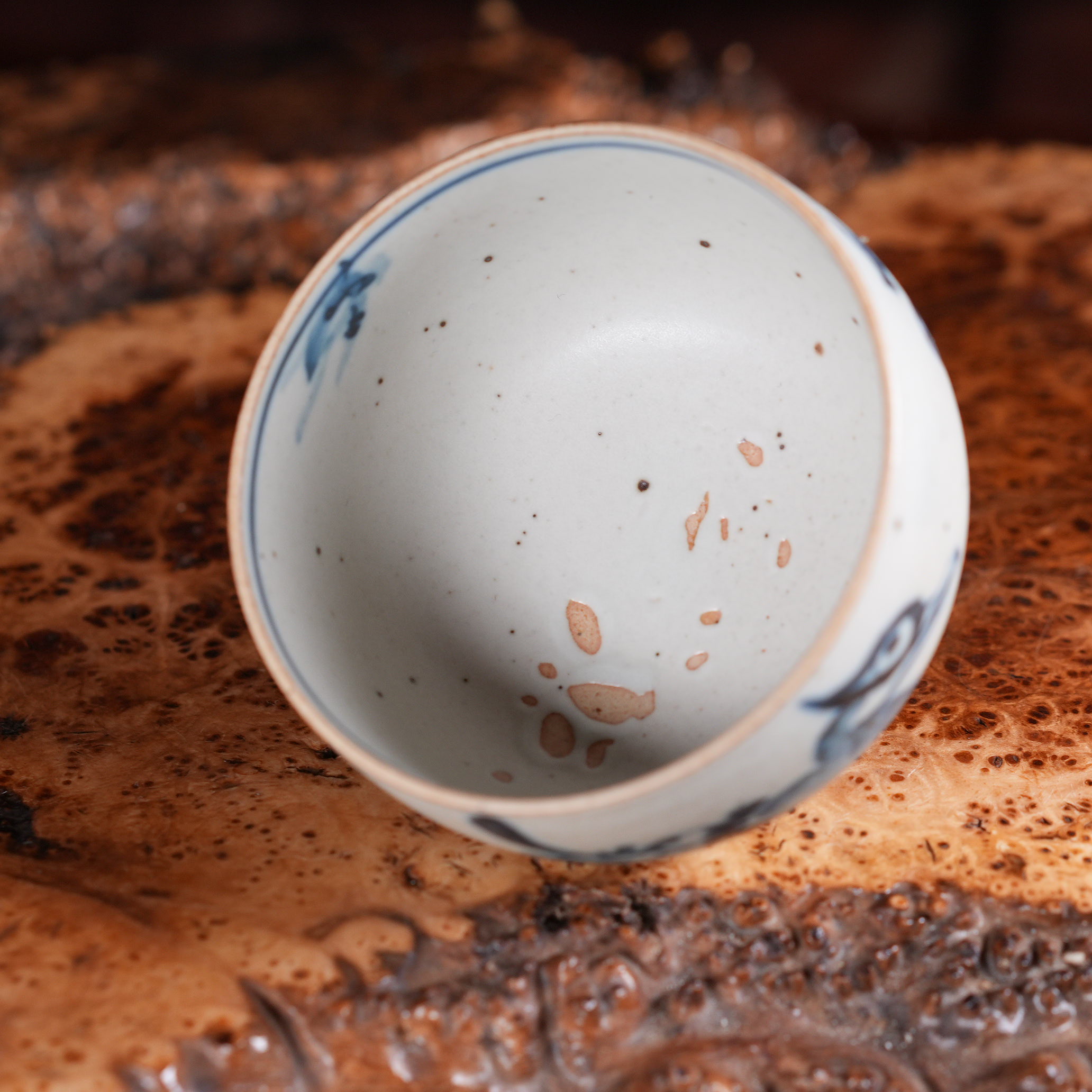 Поверхность пиалы сатиновая, матовая - в Цзиндэчжэне такую фактуру называют «яичной скорлупой». Это особый вид фарфора, лишённого резкого глянца, но обладающего мягким, тёплым свечением. Матовая поверхность приятна на ощупь, не бликует и создаёт ощущение естественности, природности.