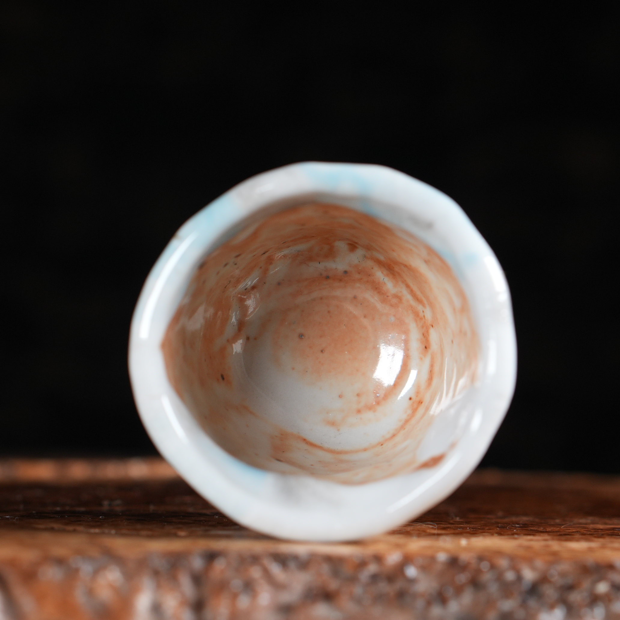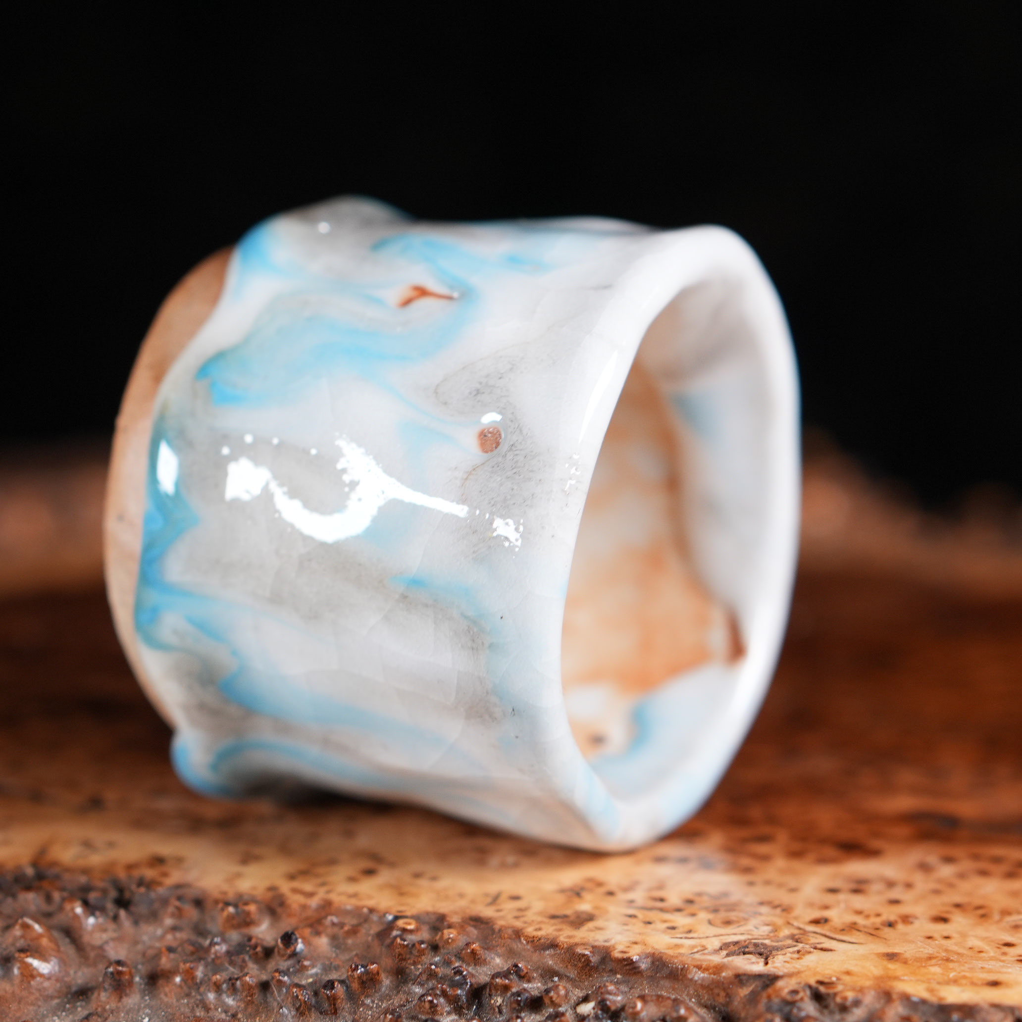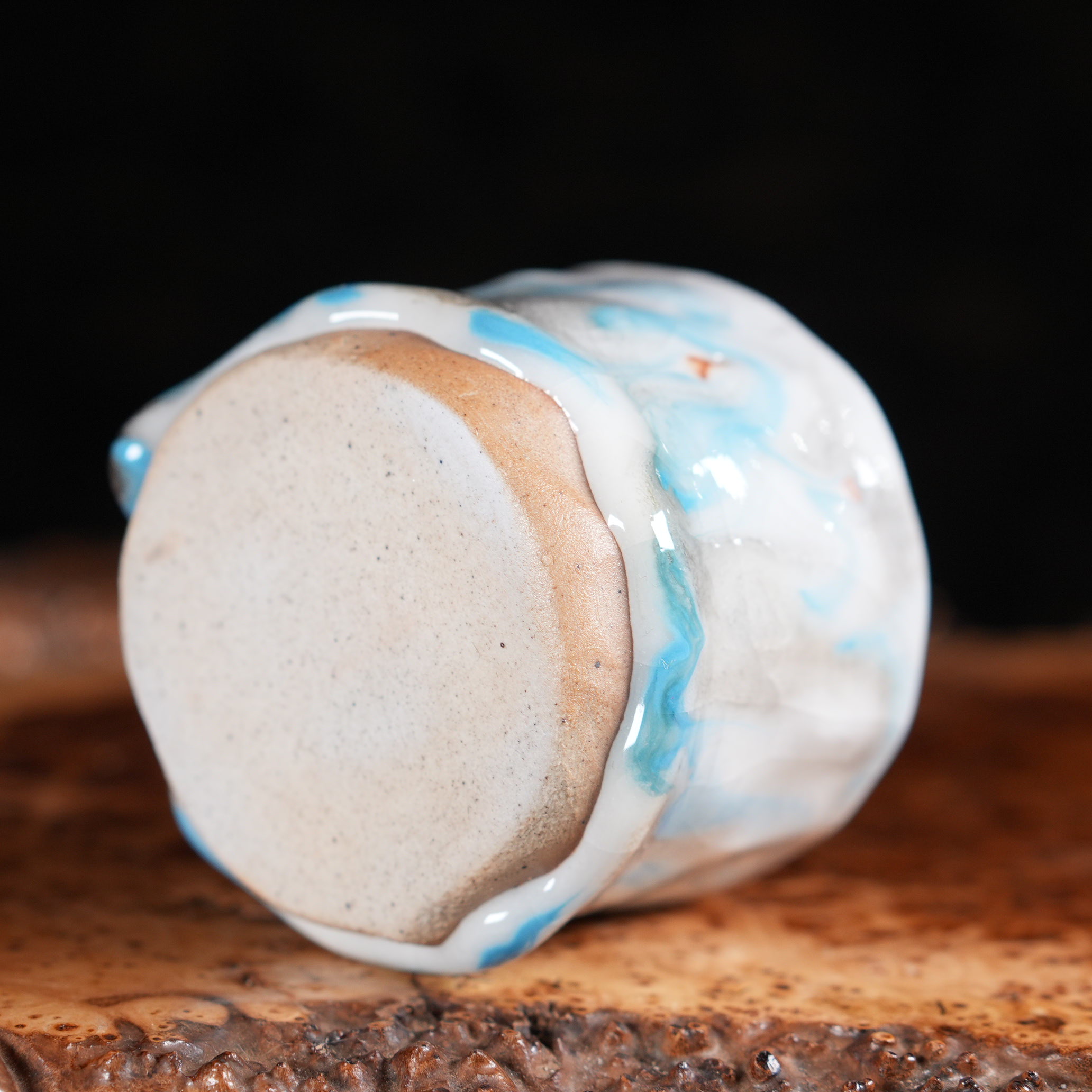 Пиала покрыта сложной многослойной глазурью, напоминающей морскую пену и прибрежные волны: