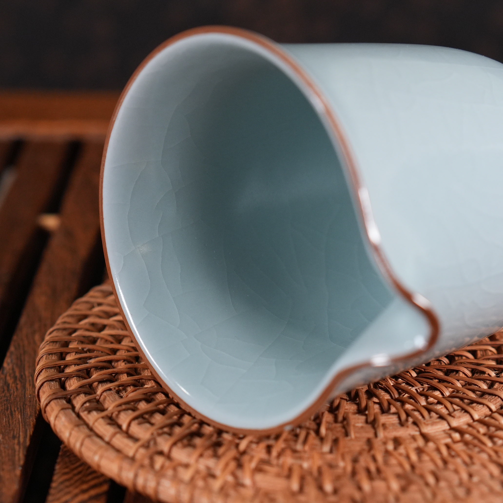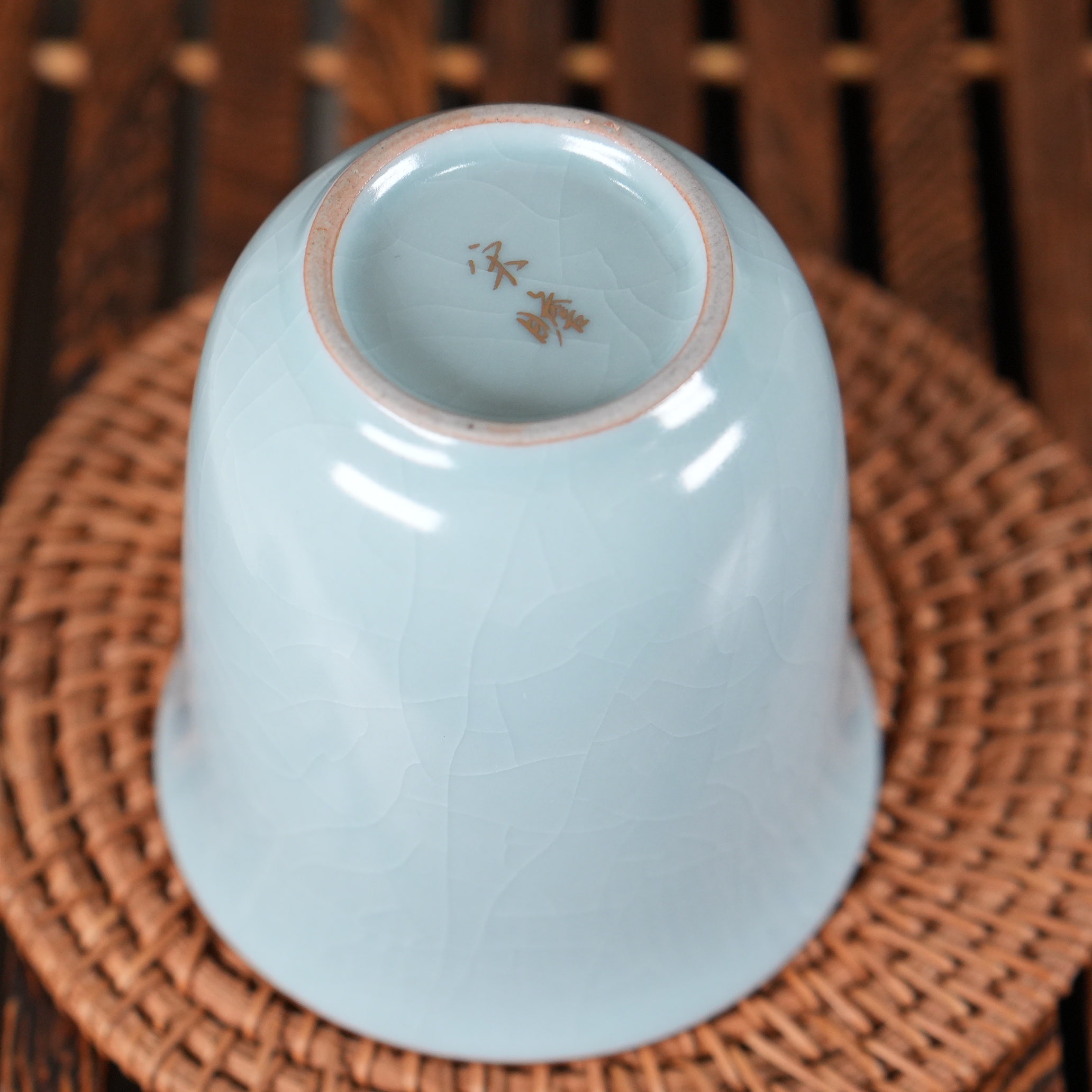 Главная особенность - цек (мелкие трещинки в глазури), который покрывает чахай как снаружи, так и внутри. Эта сеть кракелюра не является дефектом, а создаётся намеренно в процессе обжига. Цек придаёт поверхности глубину, благородство и уникальный рисунок, который со временем может слегка изменяться, впитывая чайный настой и становясь только красивее.