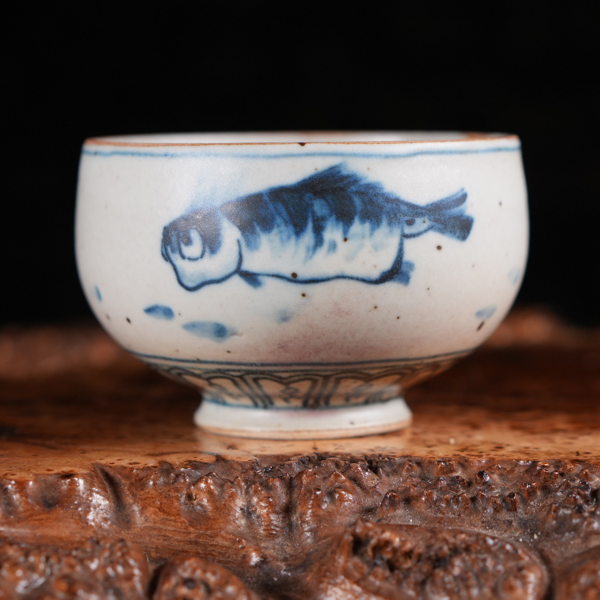 На одной стороне пиалы изображена рыба - классический китайский символ изобилия и достатка. В китайской культуре слово «рыба» (юй) созвучно слову «изобилие», поэтому изображение рыбы всегда несёт пожелание богатства и процветания.