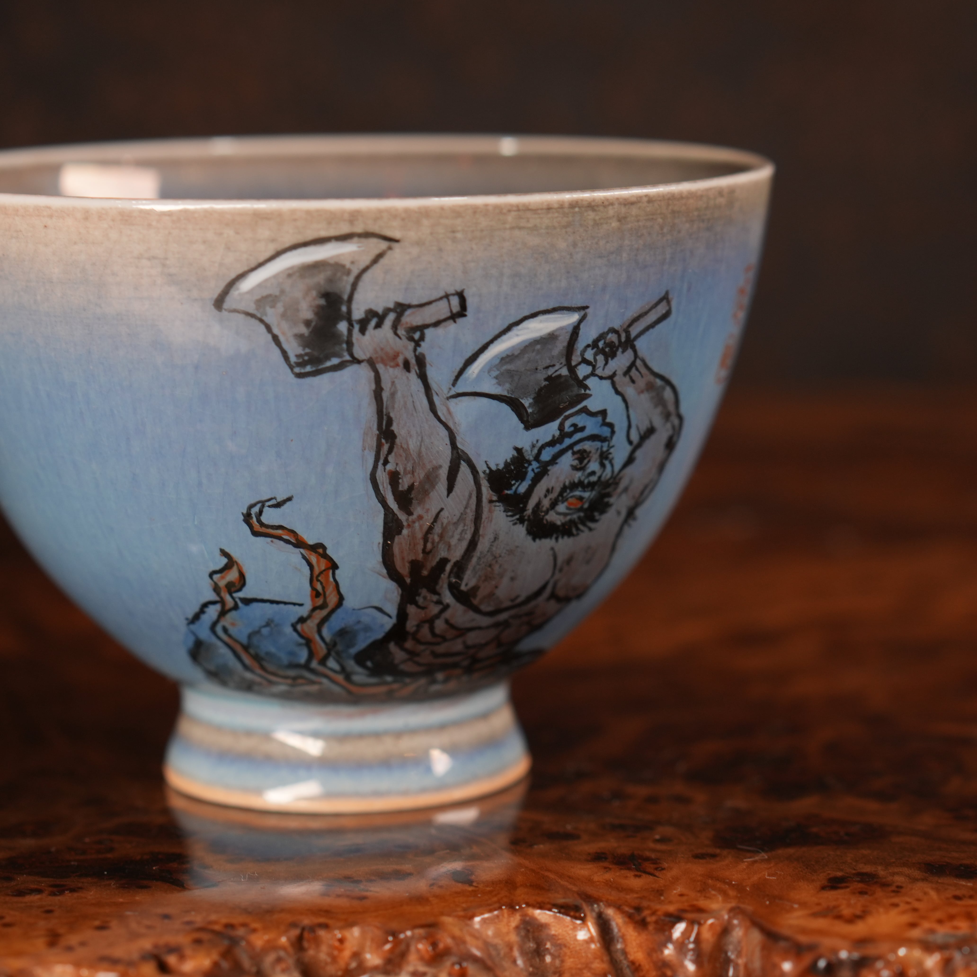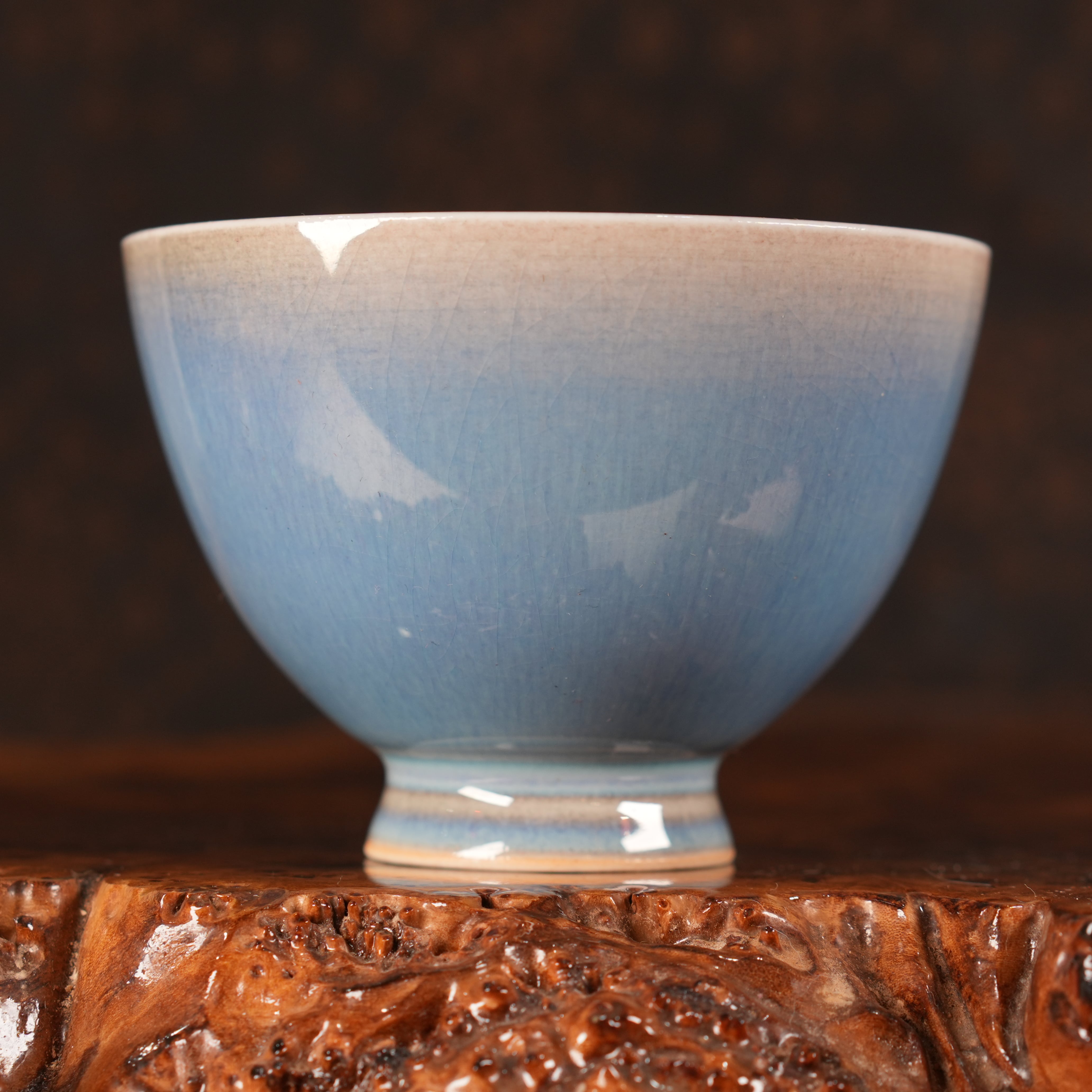 Стенки в меру плотные, массивный низ и высокий подиум. Красивая небесная глазурь.