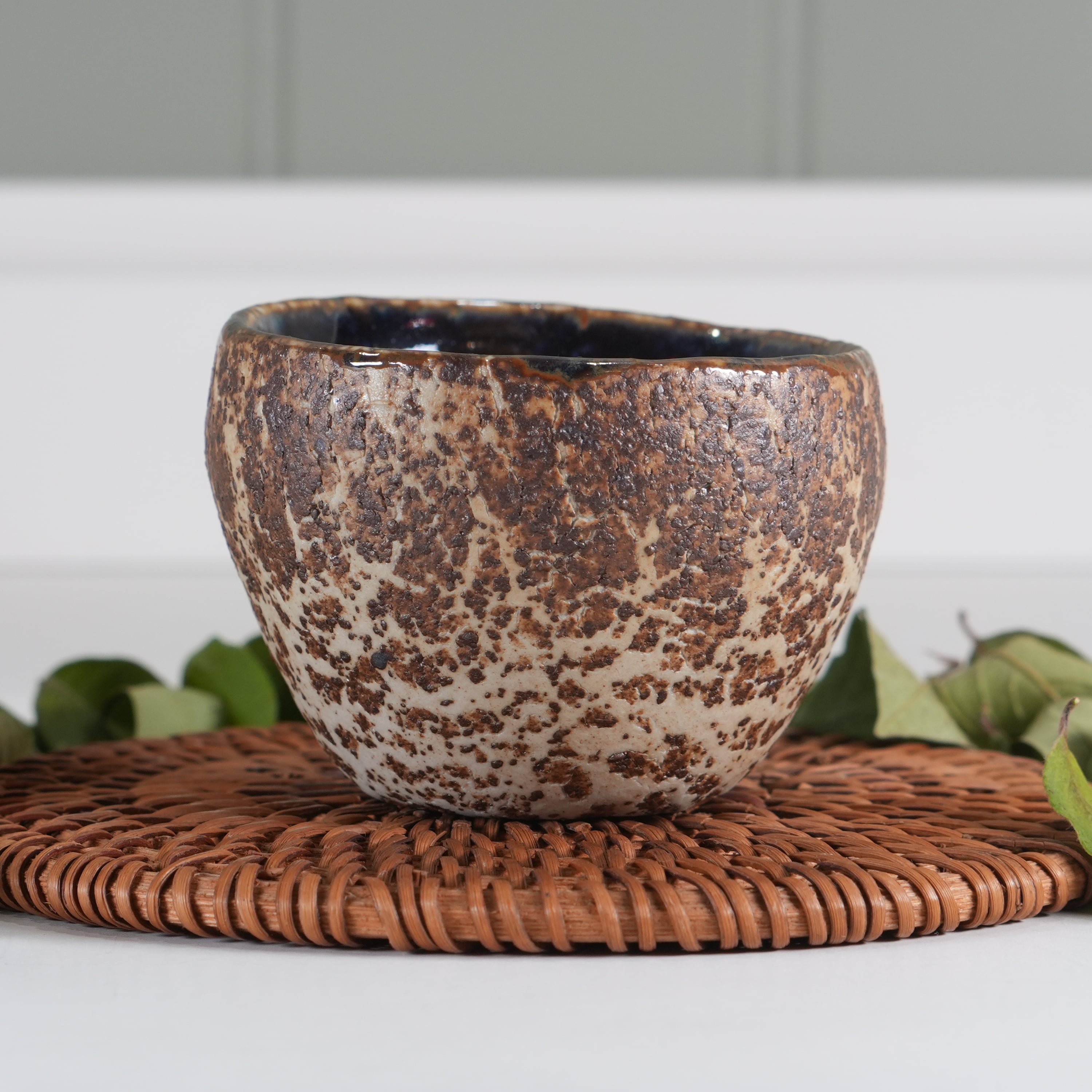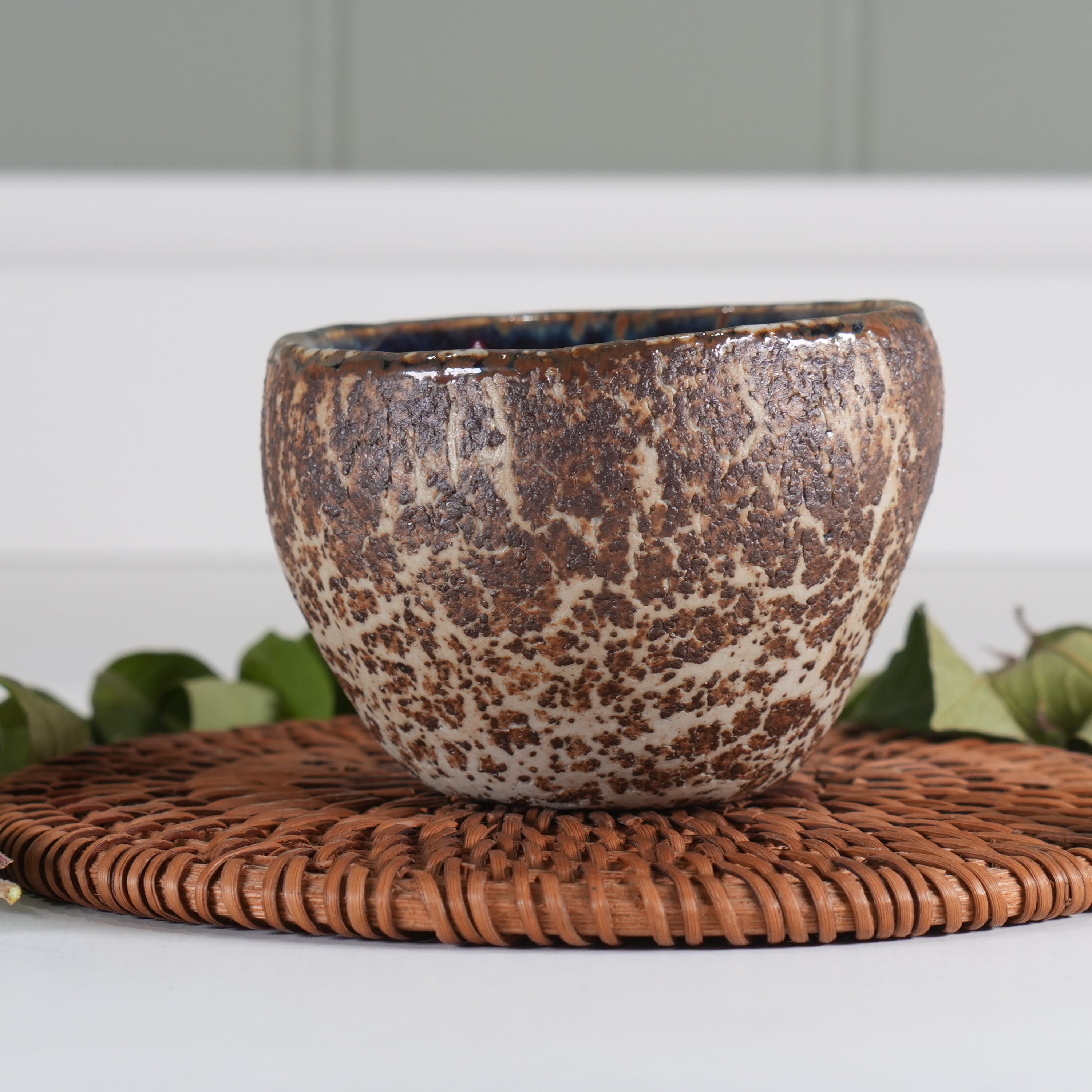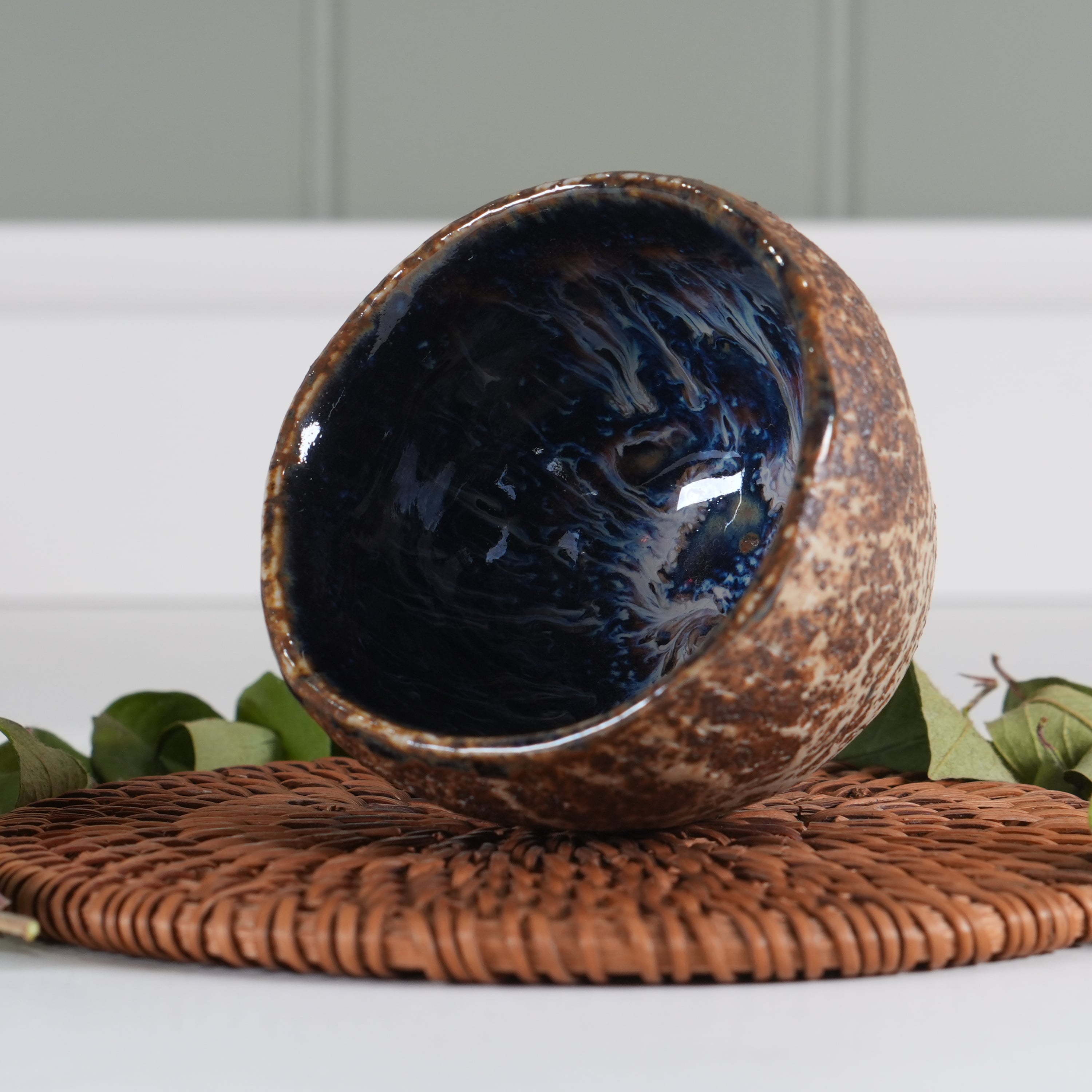 Внутри обливная глазурь с удивительным космическим абстрактным рисунком.