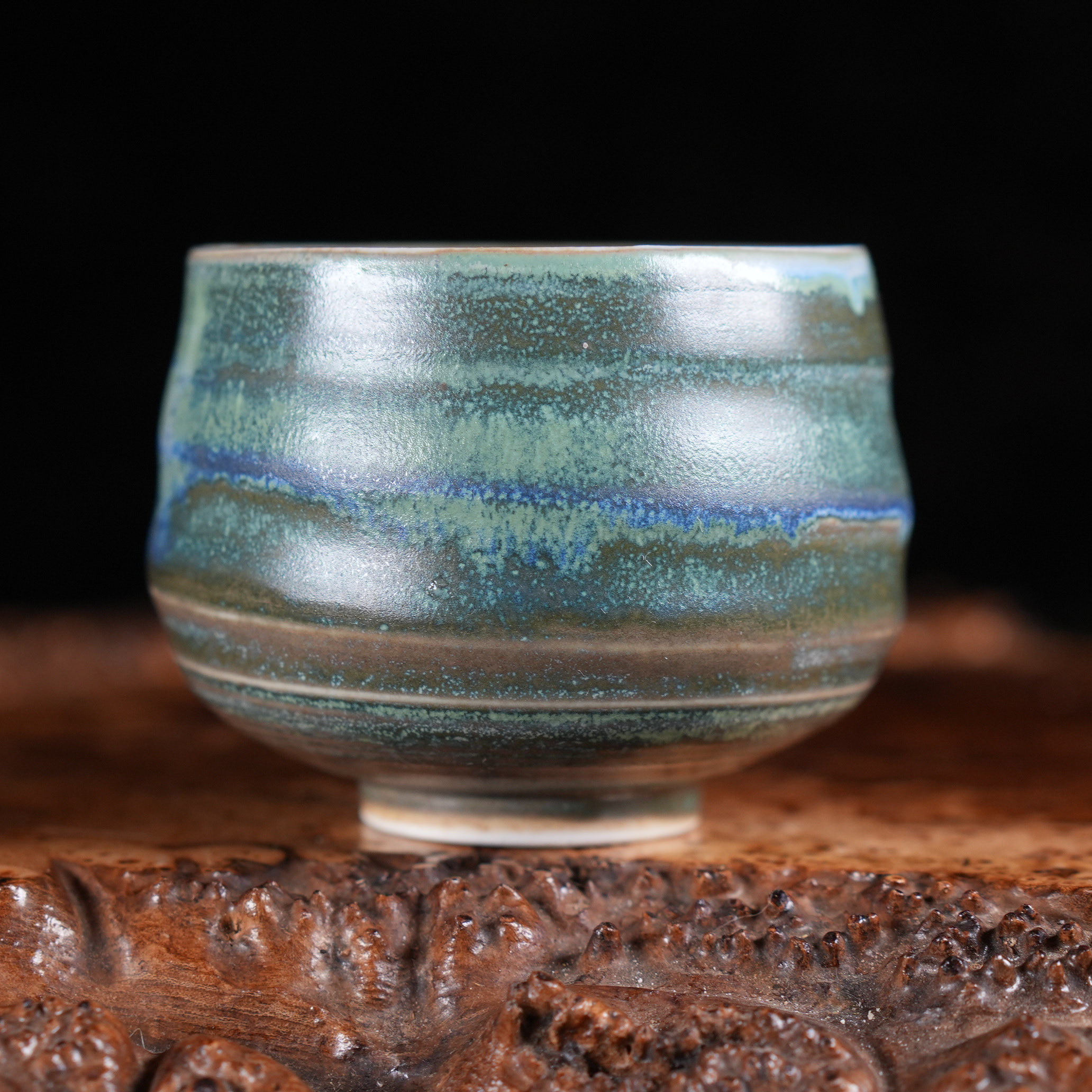 Внешняя поверхность пиалы дышит насыщенными зелёными и бирюзовыми оттенками:
