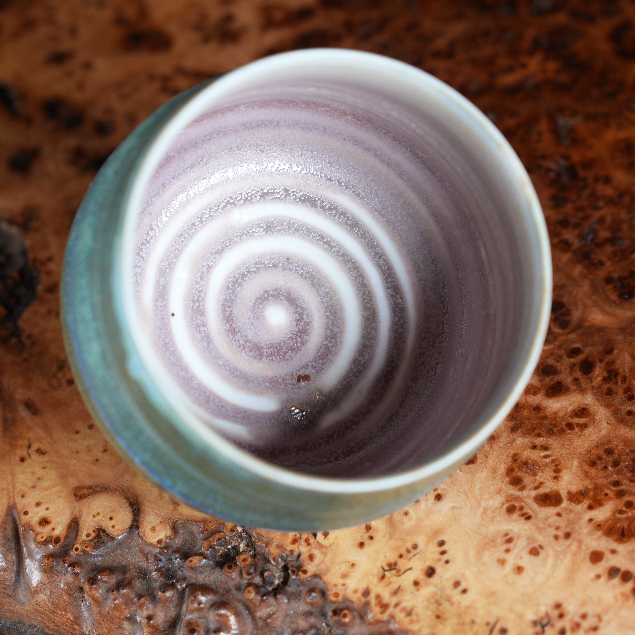 Внутренняя поверхность пиалы открывает совсем иной мир - нежный пепельно-розовый оттенок, напоминающий: