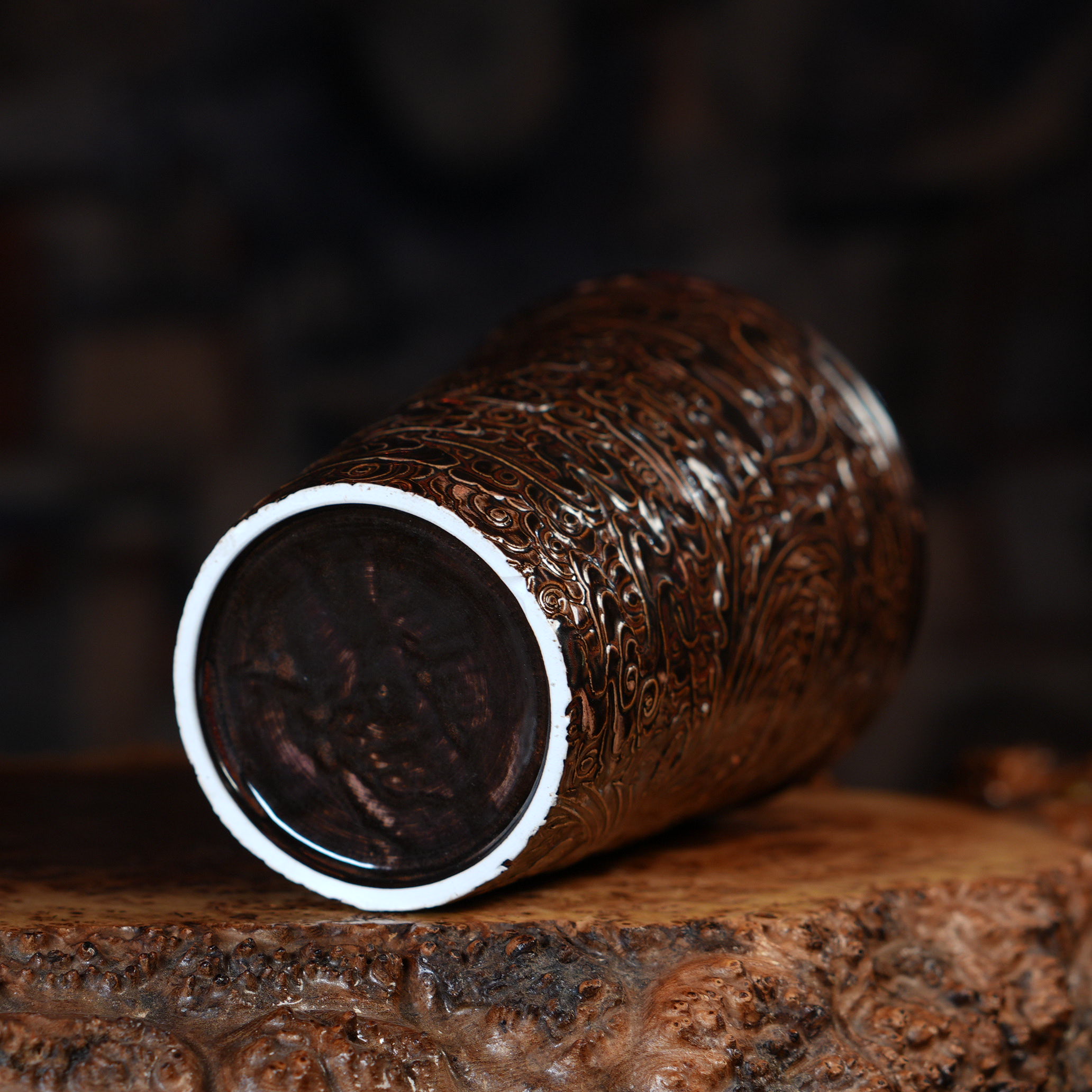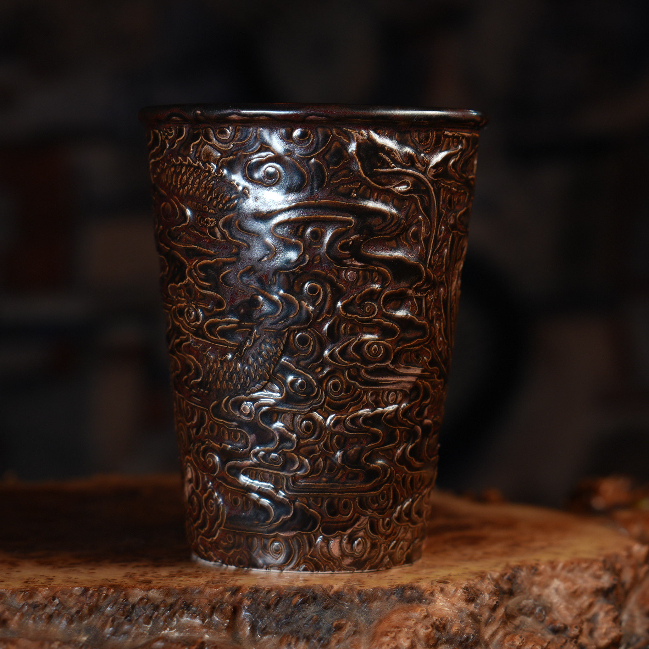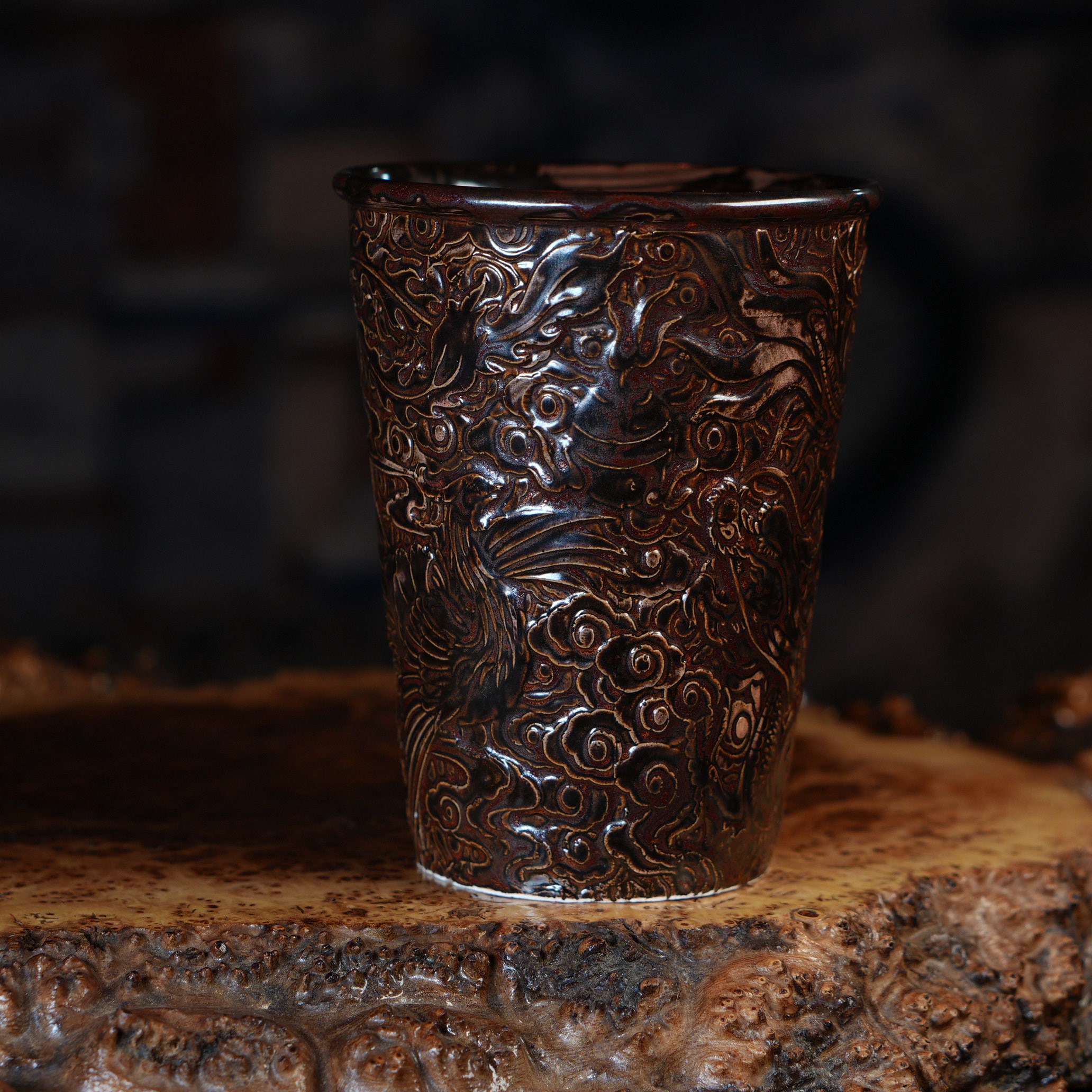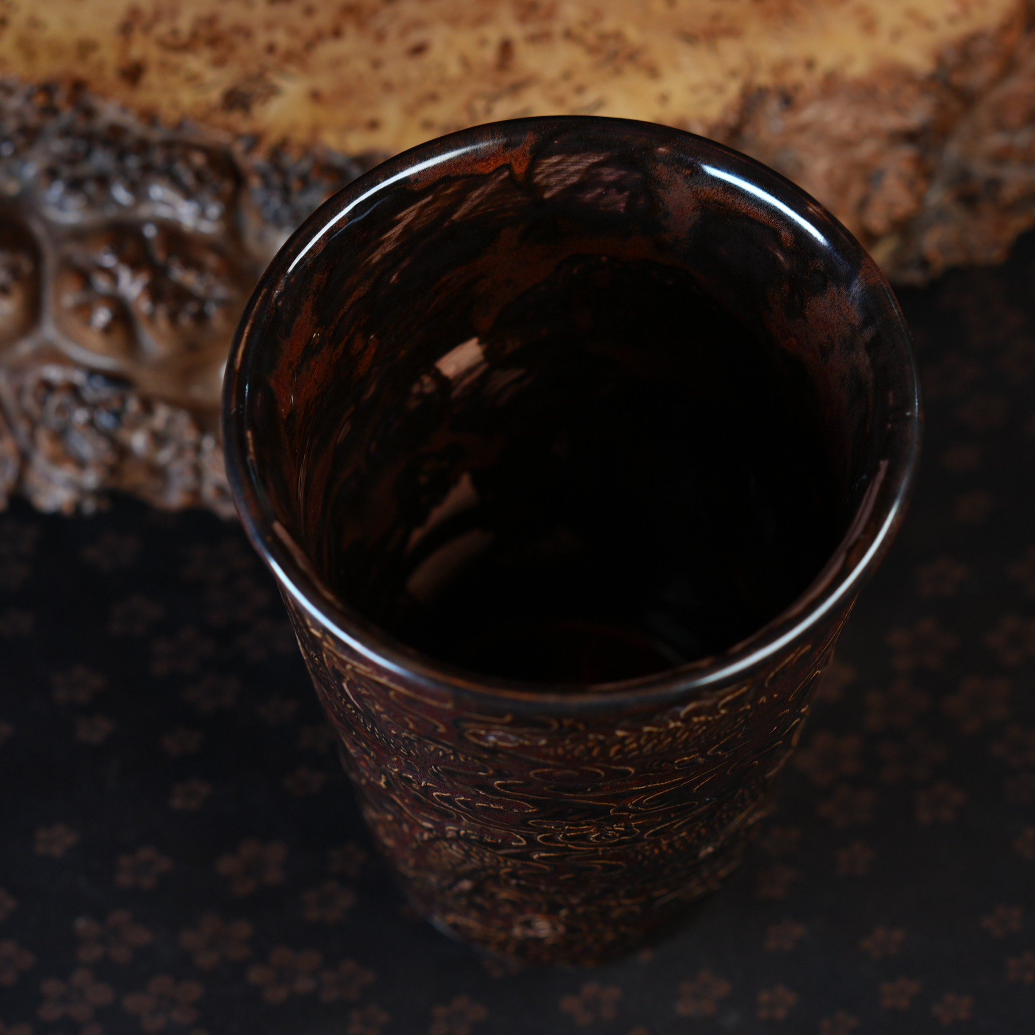 Уникальный стакан для чая сделанный из фарфора, покрыт коричневой глазурью.