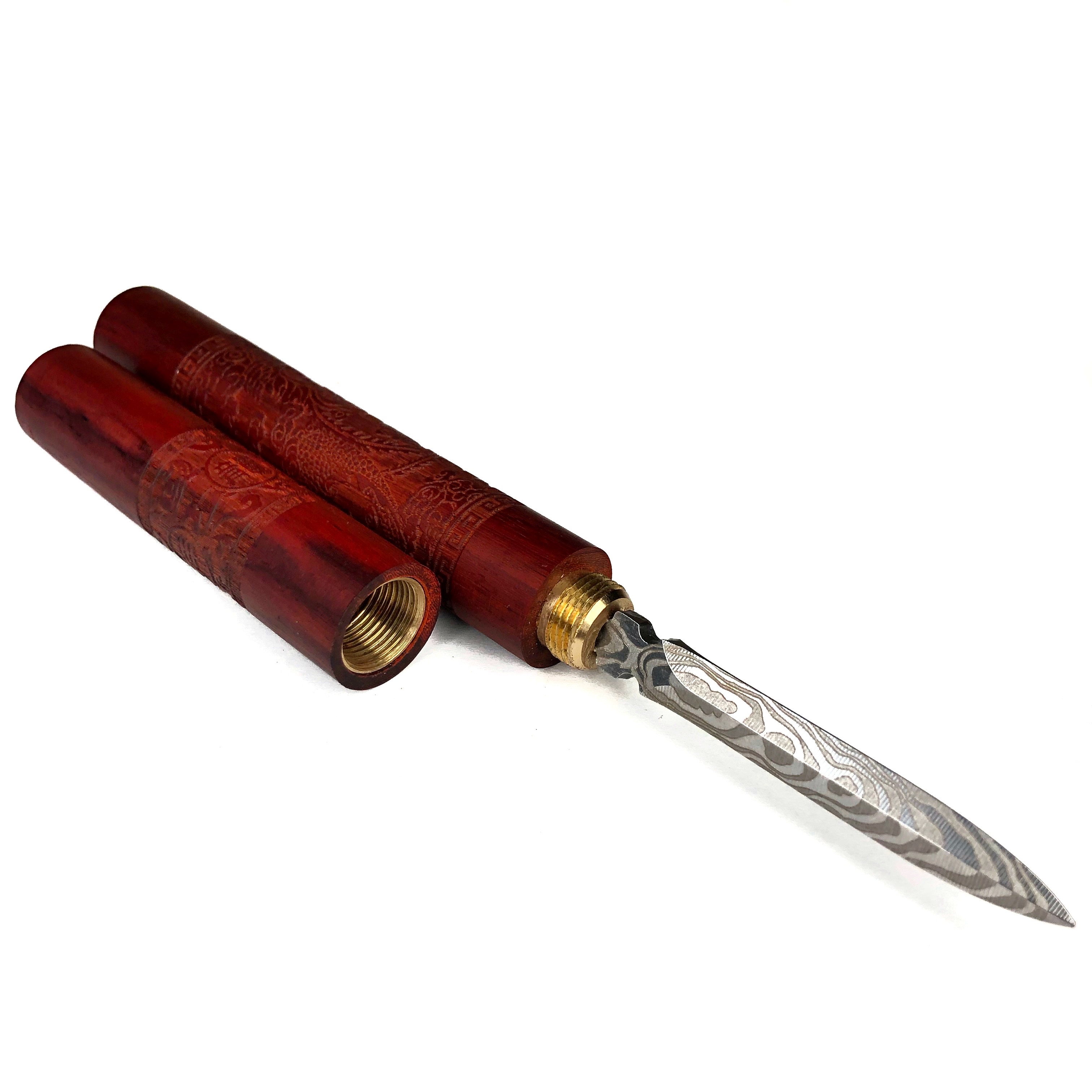 Нож для пуэра резной, красное дерево, кованная сталь