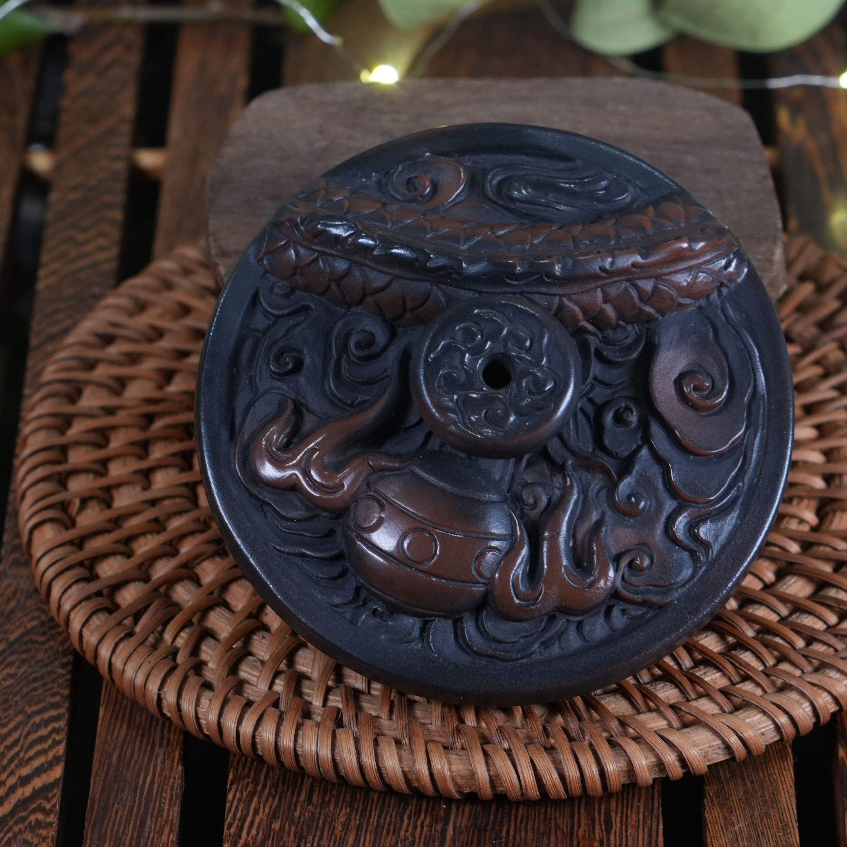 Выполнен полностью вручную на гончарном круге с последующей резьбой, обжиг при температуре около 1200°С и ручная полировки готового изделия.