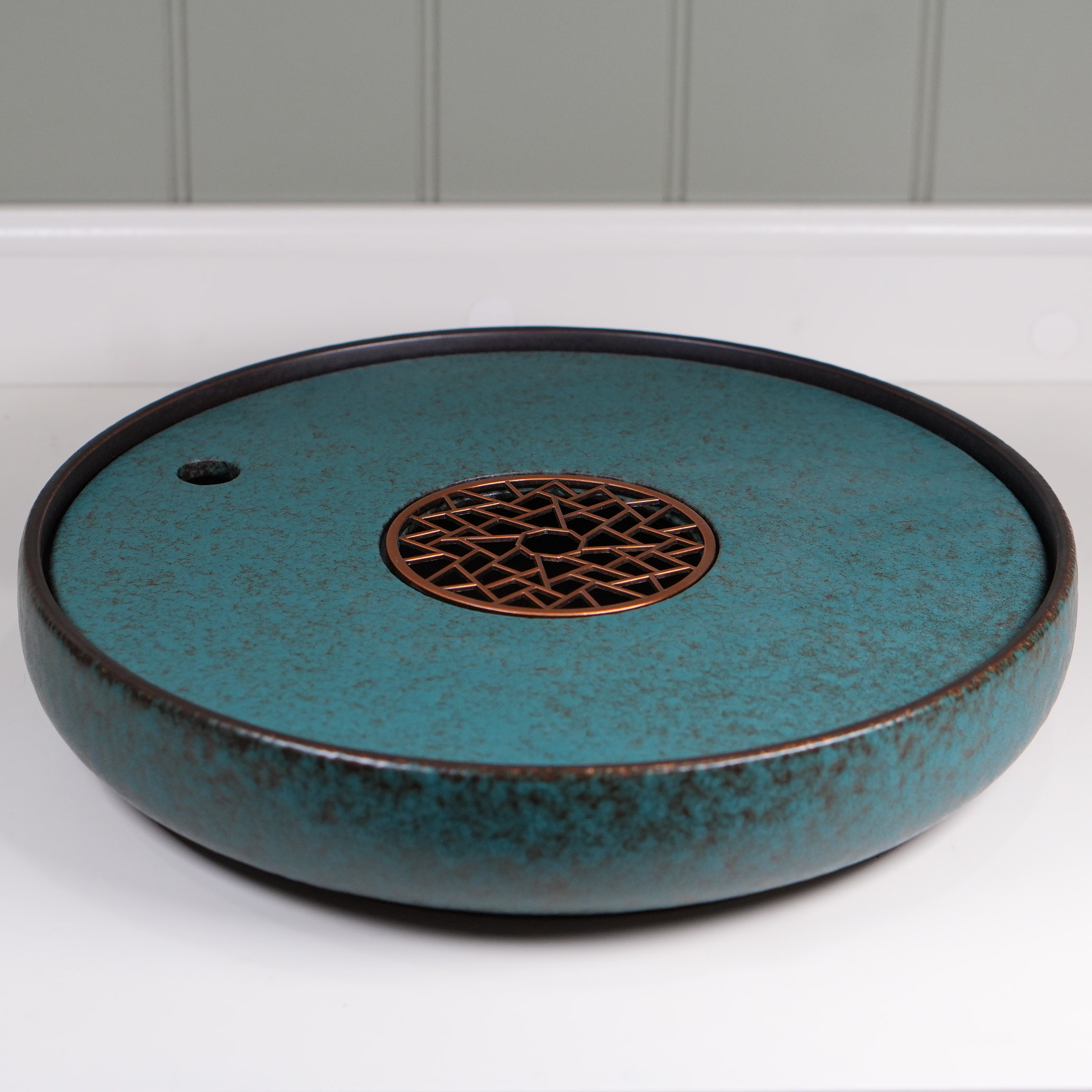 Керамическая большая чабань покрытая глазурью. Очень необычный красивый экземпляр. Удобный слив. Неприхотлива в уходе.