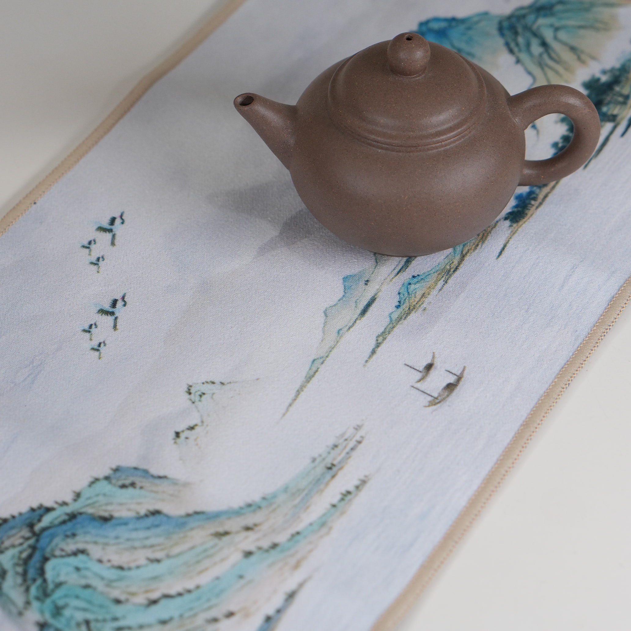 Выполняет несколько функций: защищает нежную глазурь и хрупкую керамику от повреждений, бесследно впитывает пролитую воду или чай, сохраняя чистоту пространства, и завершает визуальную гармонию чайного стола, создавая эстетически завершённый ансамбль.