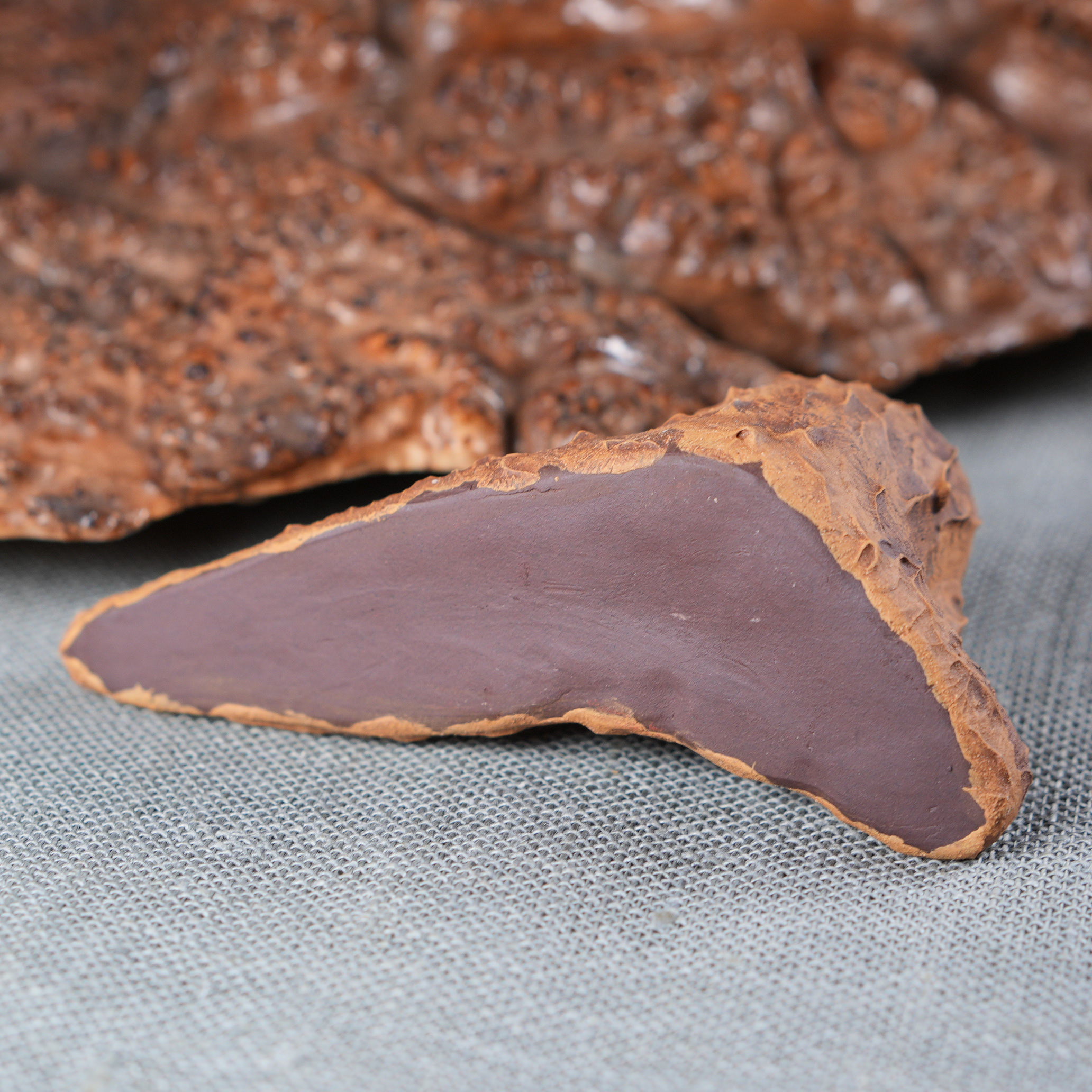 Из сурового пласта глины, сформированного в виде старого дерева с его естественными неровностями и фактурой, проглядывает лицо мудреца. Кажется, что сама природа создала этот образ, а мастер лишь помог ему проявиться: