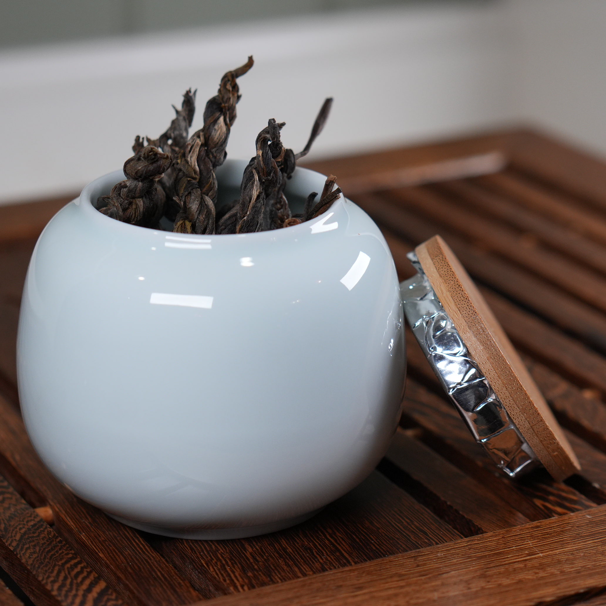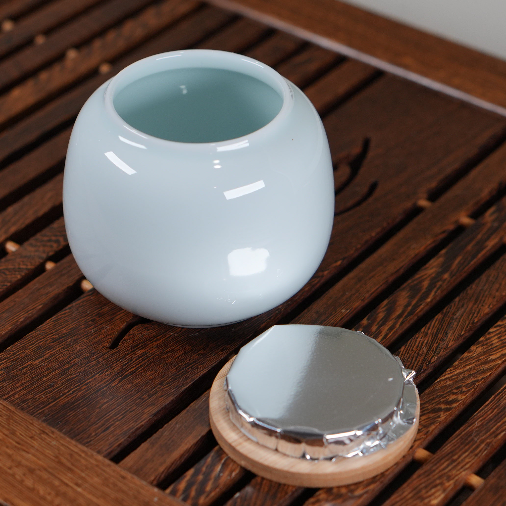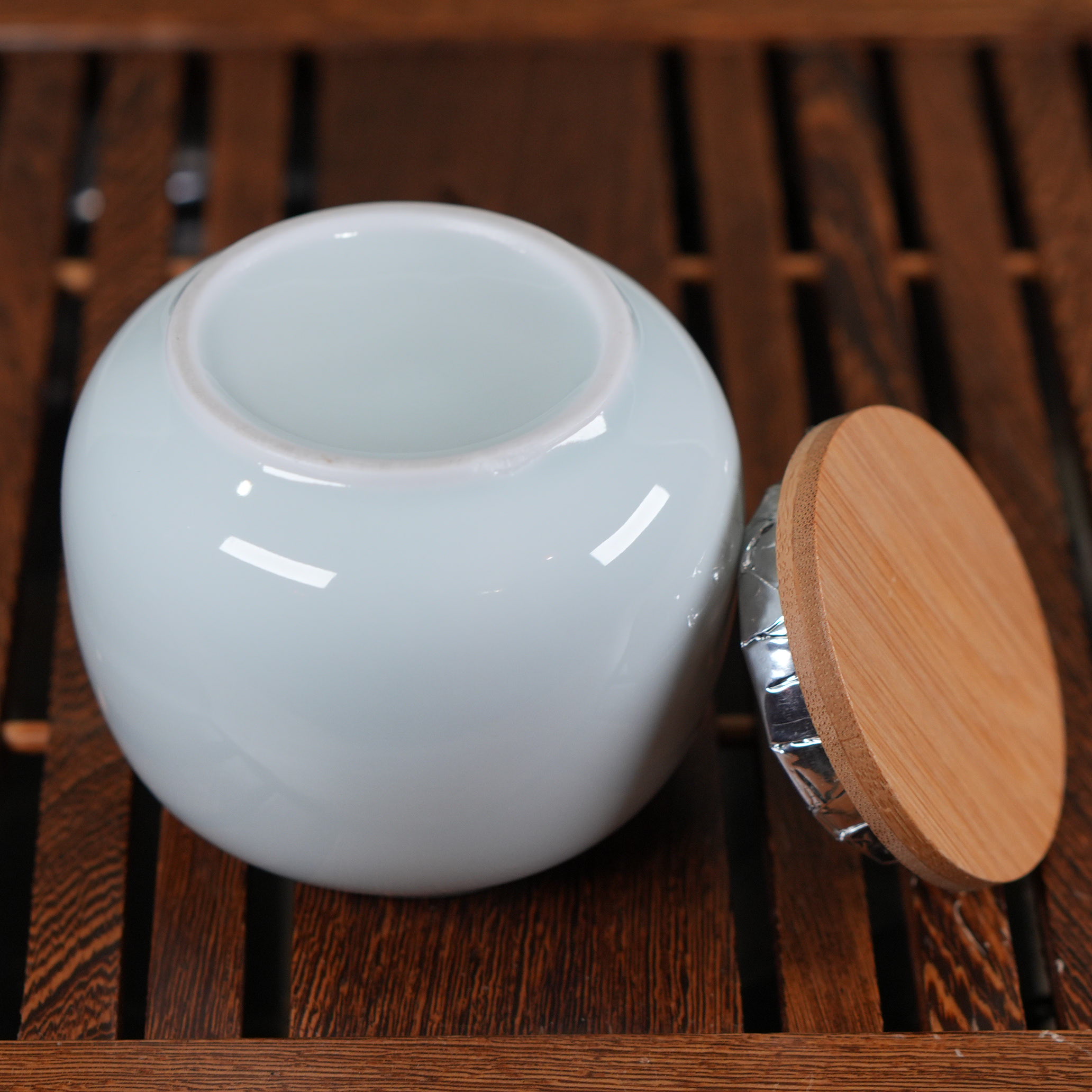 Материал: фарфор, глазурь, бамбук, фольгированная крышка.