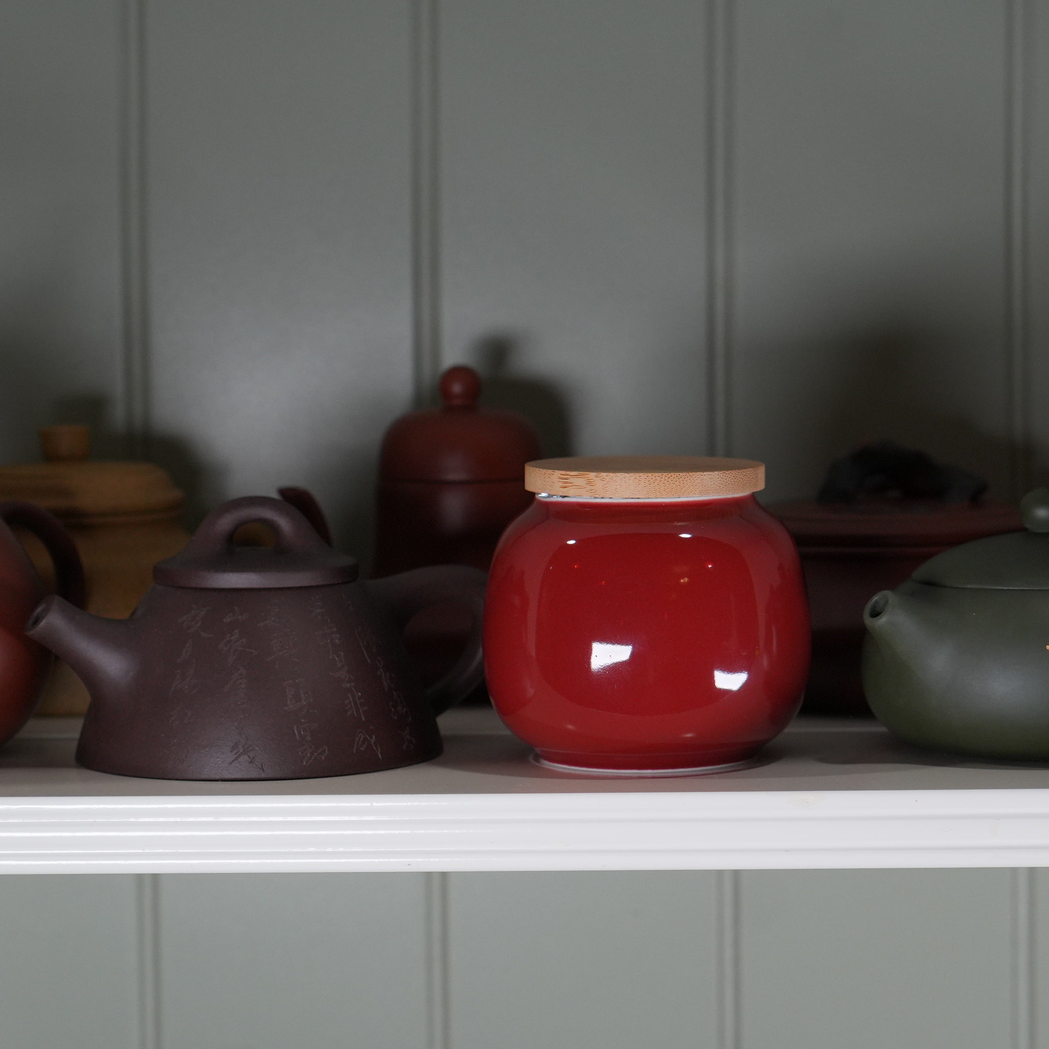 Чайница красная, фарфор, 210 мл
