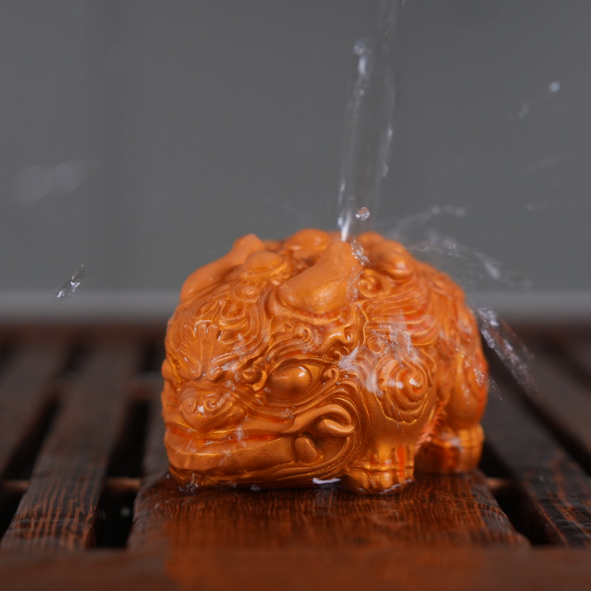 Сделан из смолы и покрыт термохромовой краской, которая меняет цвет от температуры.