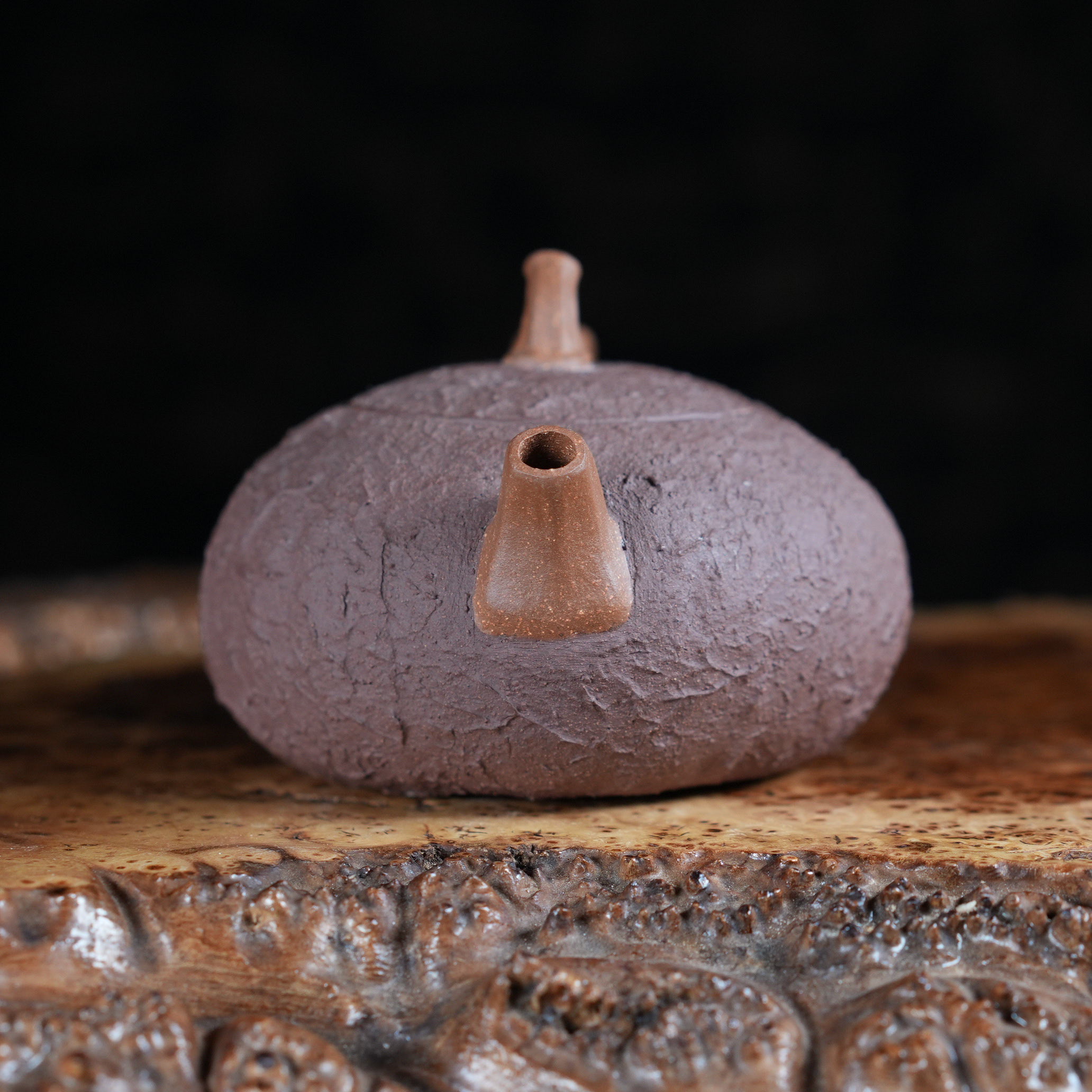 Весь вид этого чайника - нарочито дикая, грубоватая фактура снаружи и идеально гладкая, уютная поверхность внутри - несёт глубокий философский смысл. Это символ внутреннего спокойствия, гармонии и мягкости при внешней сложности, суровости, защите. Как старая тыква, хранящая внутри сухие семена и эликсир бессмертия, чайник скрывает в себе тёплый, уютный мир чаепития.