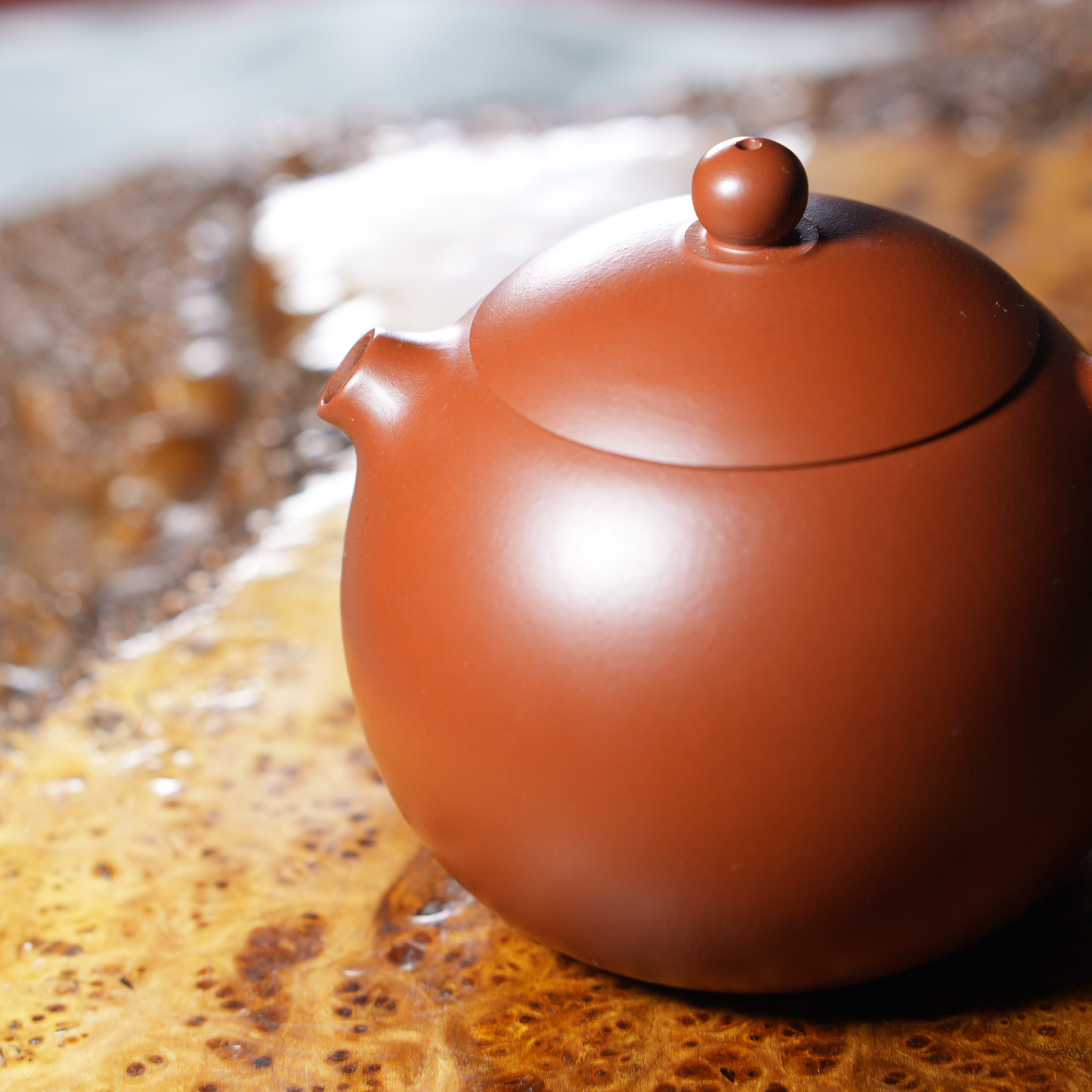 Чайник выполнен из красной исинской глины Чжу Ни (朱泥), которая отличается особой плотностью и благородным красновато-оранжевым оттенком после обжига. Чжу Ни - одна из самых ценимых исинских глин.