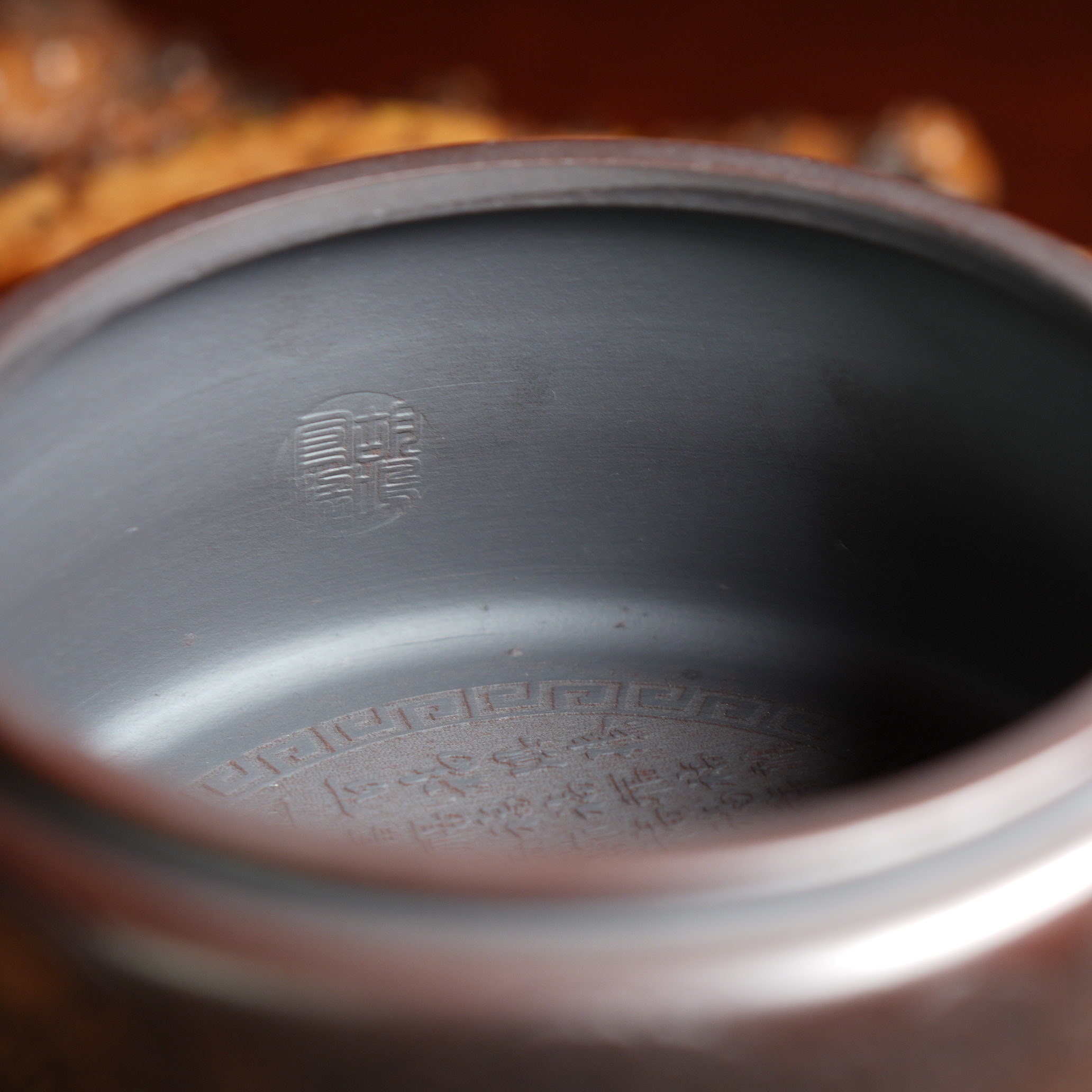 Представляем вам очень символичный и объёмный исинец «Счастье» - чайник, который не просто служит для заваривания чая, а является настоящим сосудом благопожеланий. Это ручная работа из исинской глины, существующая в единственном экземпляре, где каждый элемент, каждая деталь наполнены смыслом и призваны привлекать в жизнь владельца счастье, благополучие, долголетие и гармонию.