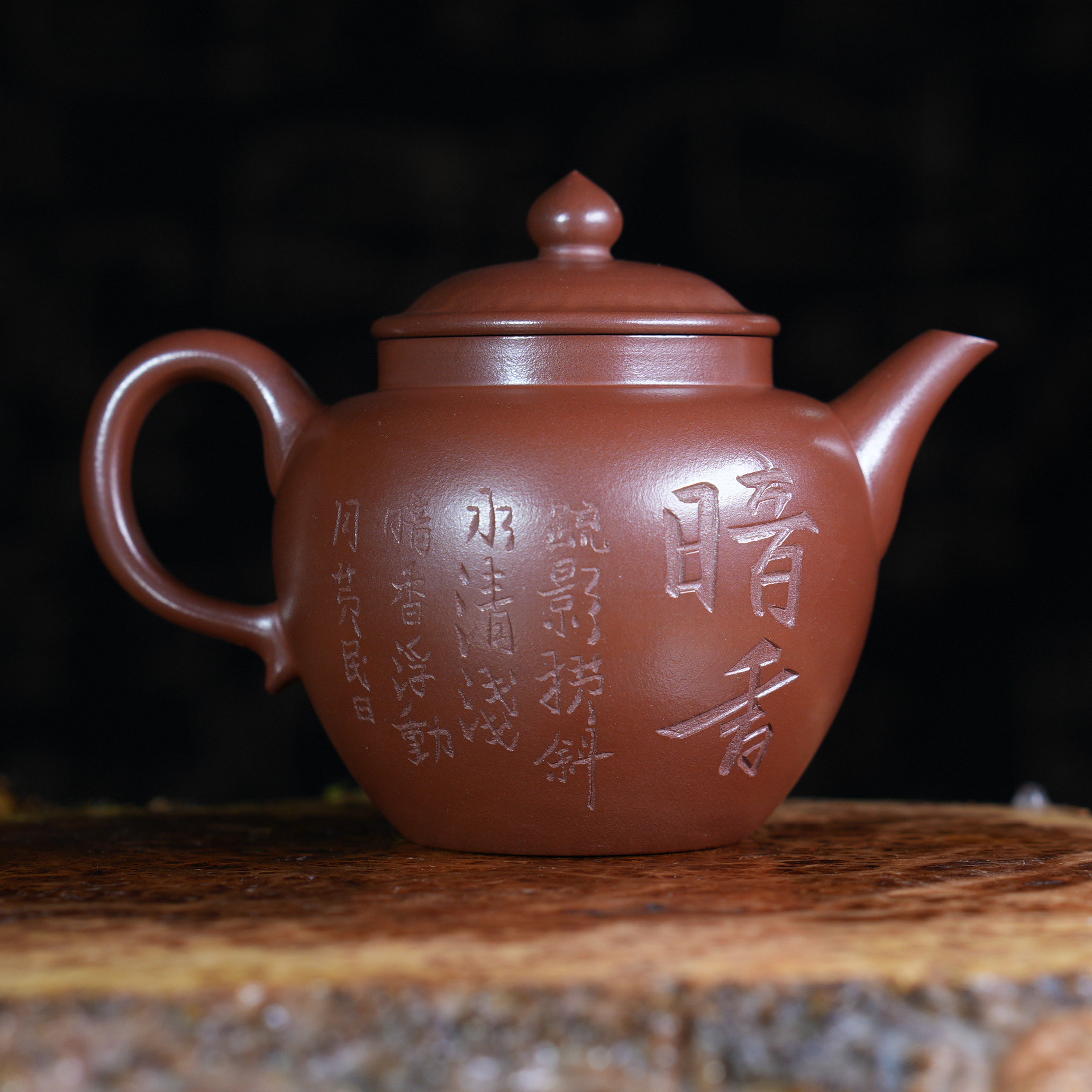 Чайник создан вручную мастером Фань Минь. Гравировка с птицей и цветущей сливой, каллиграфическая надпись, форма Шуй Пин, изящная жемчужина-росинка - всё это требует высочайшего мастерства и существует в единственном экземпляре. Вы получаете не тиражное изделие, а личную работу автора.