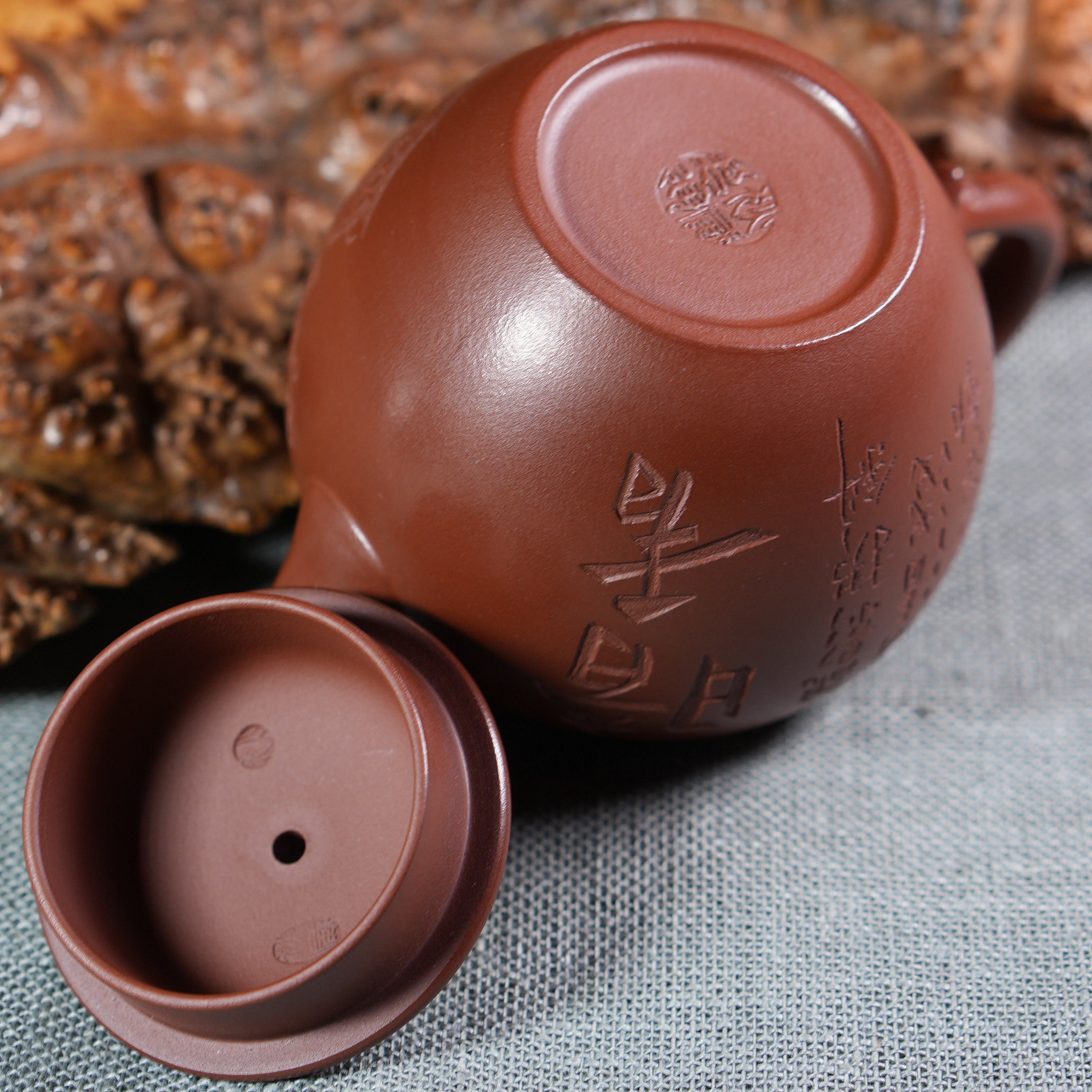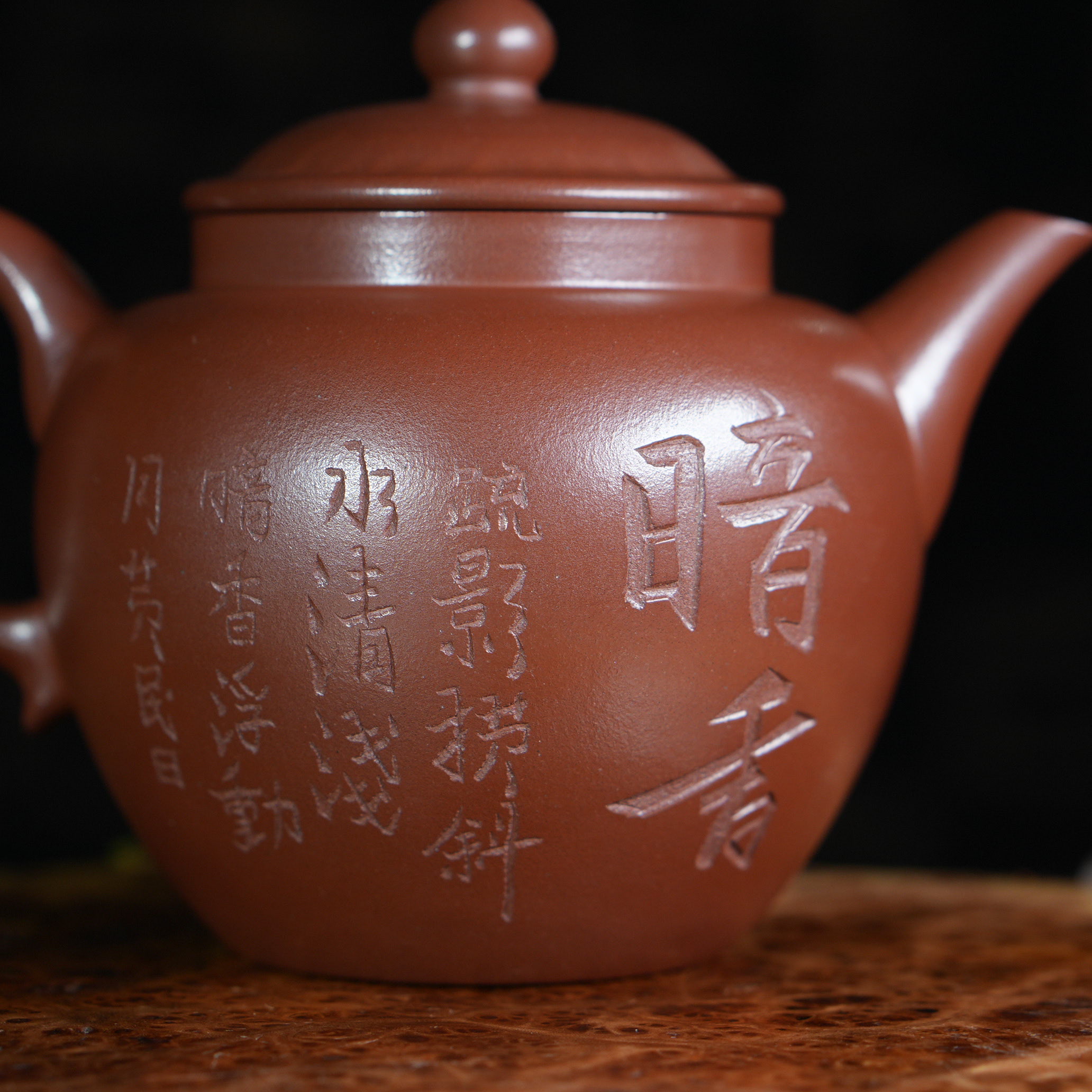 На другой стороне чайника выгравирована каллиграфическая надпись - цитата из знаменитого стихотворения Линь Бу «Маленький сад»: