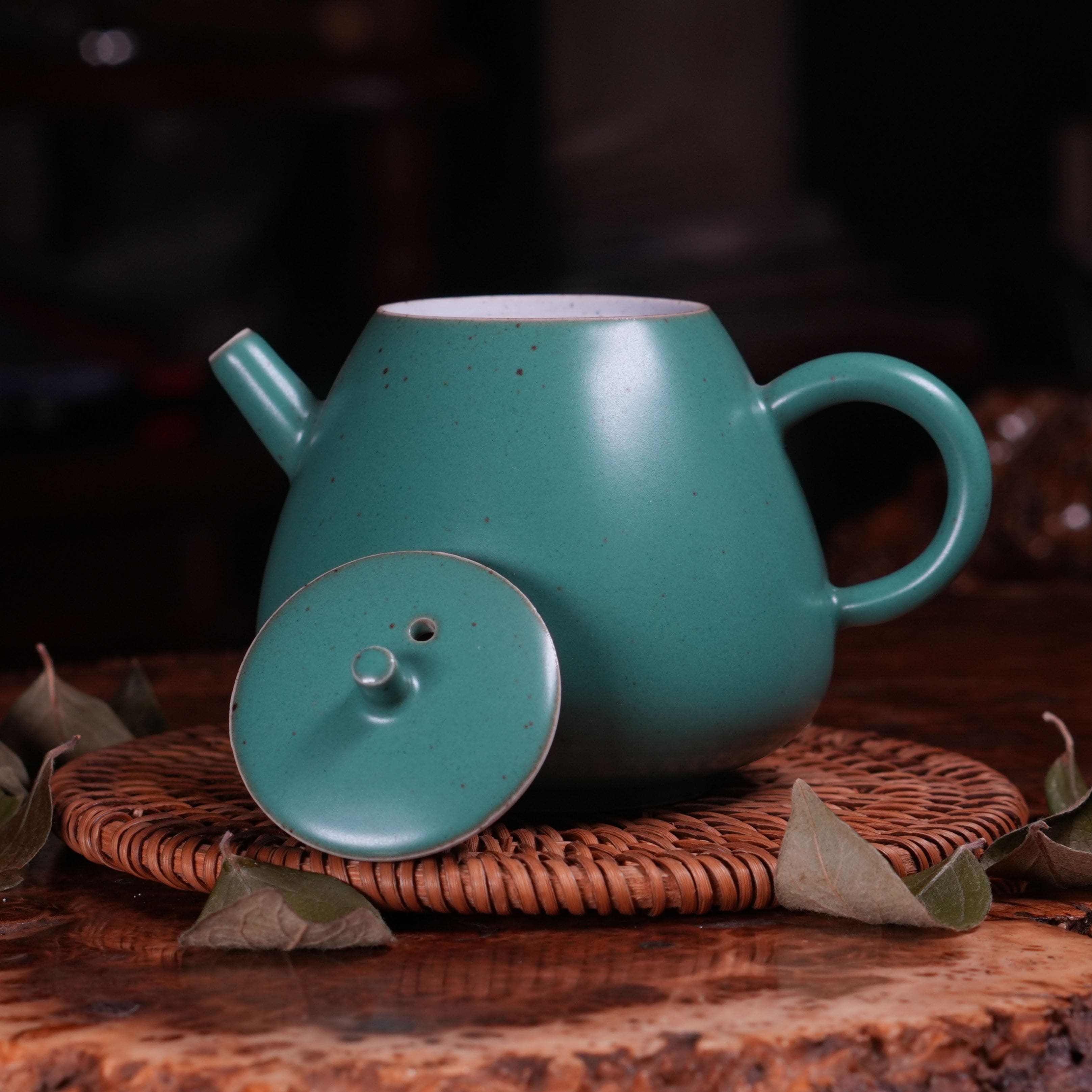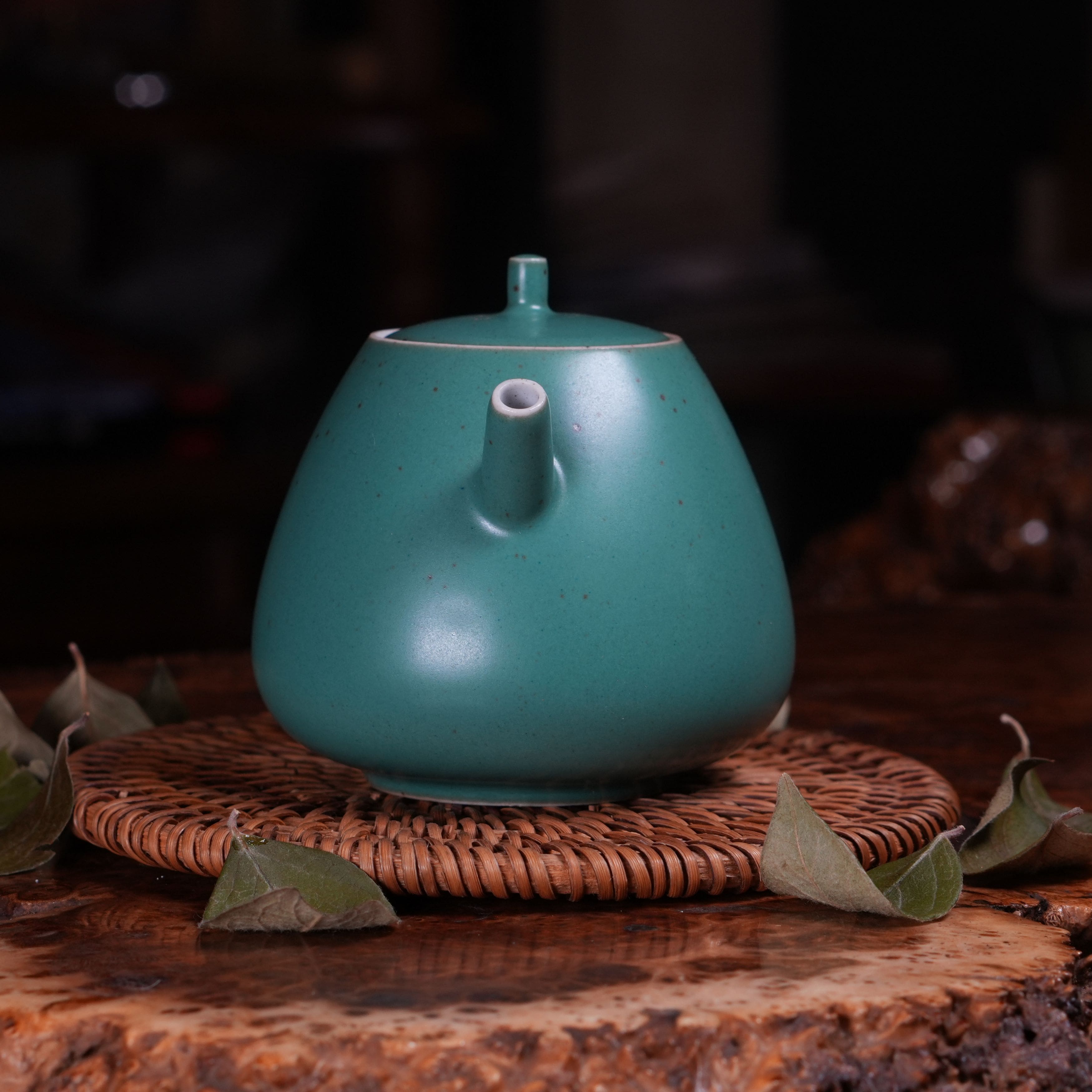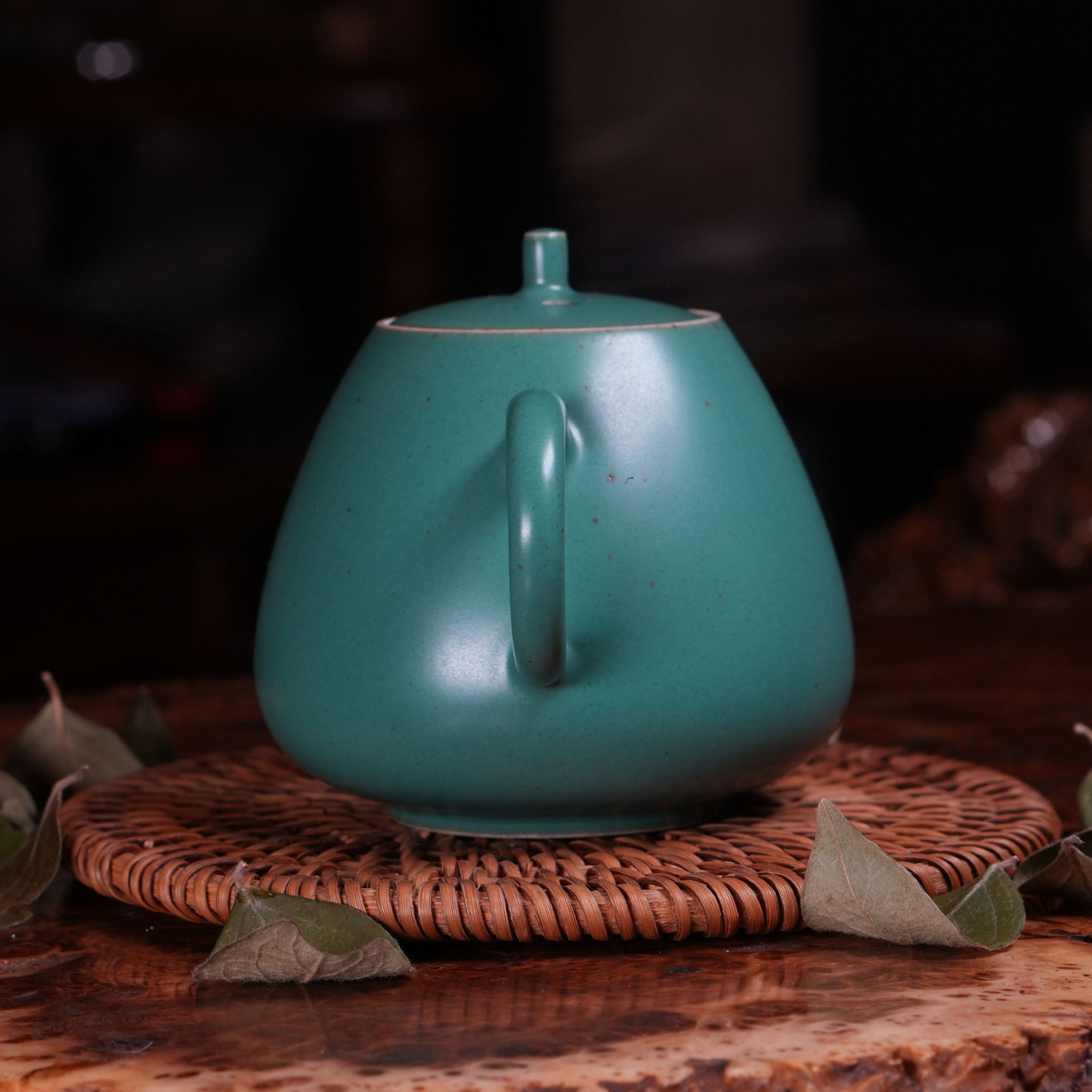 Снаружи очень приятный, сатиновая бирюзовая глазурь.