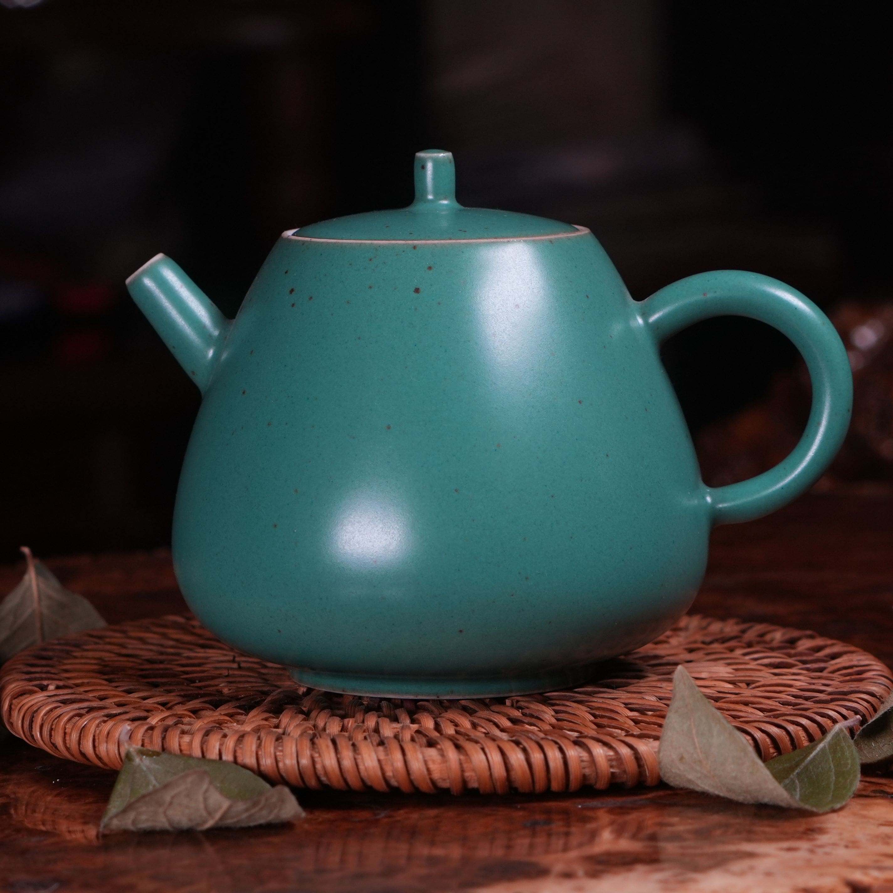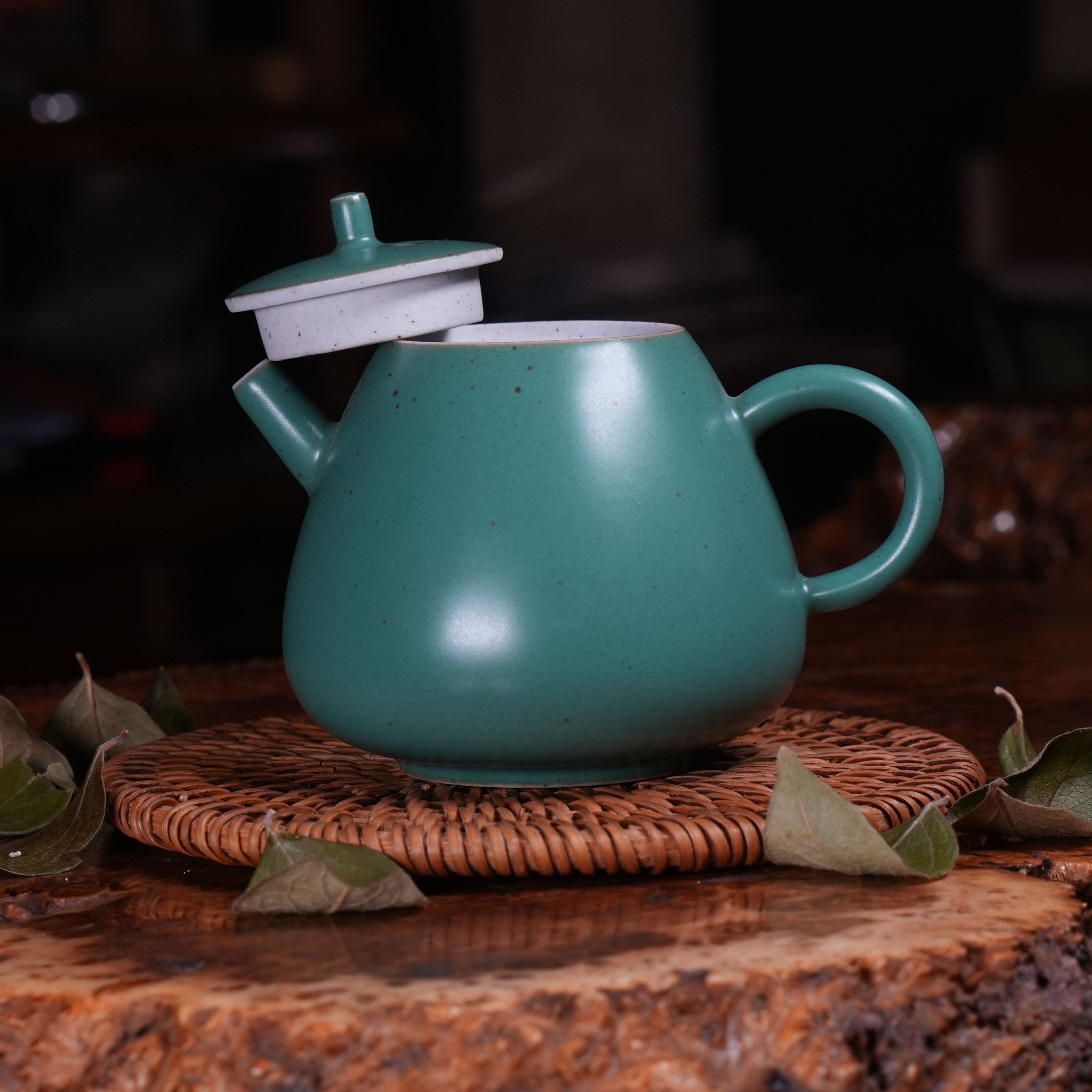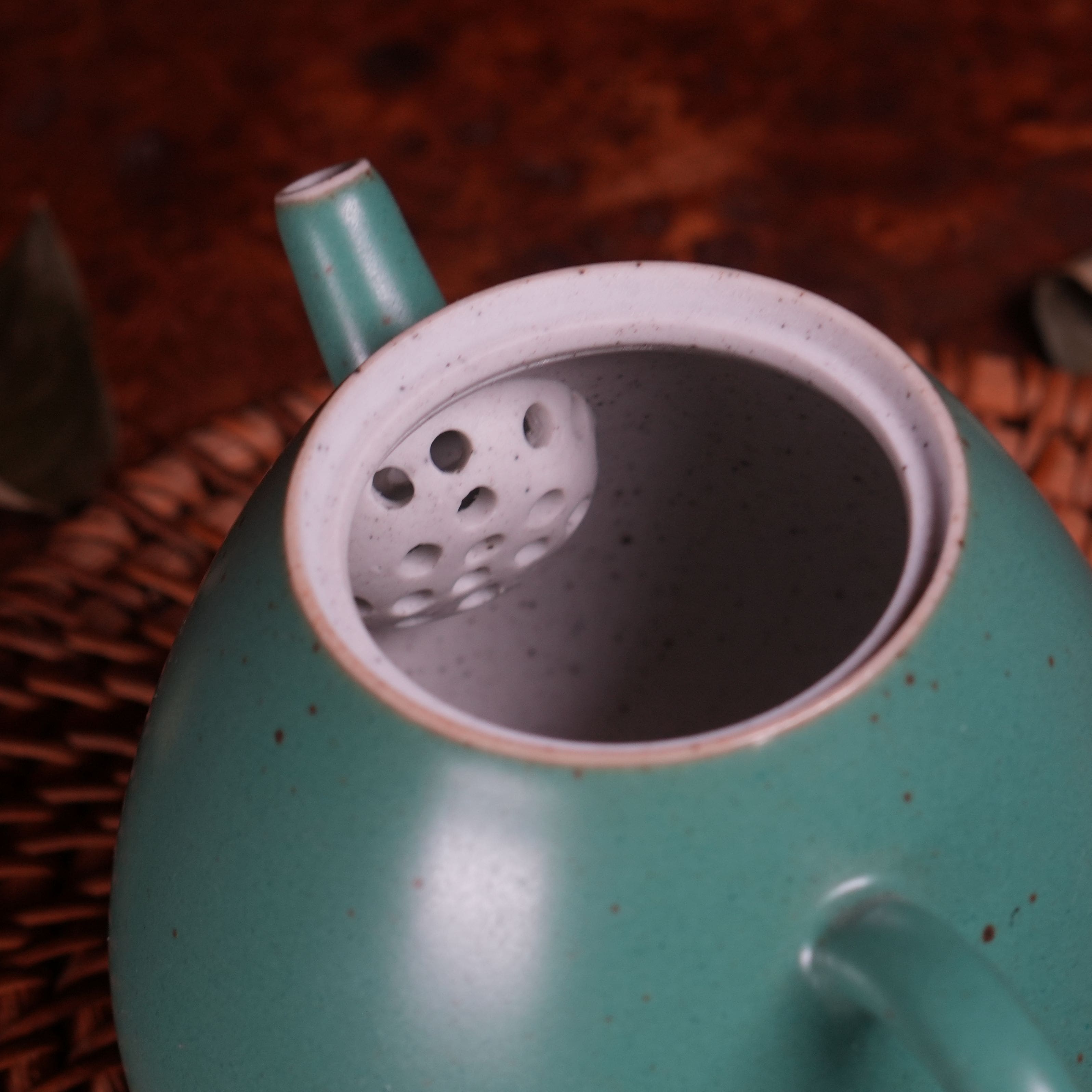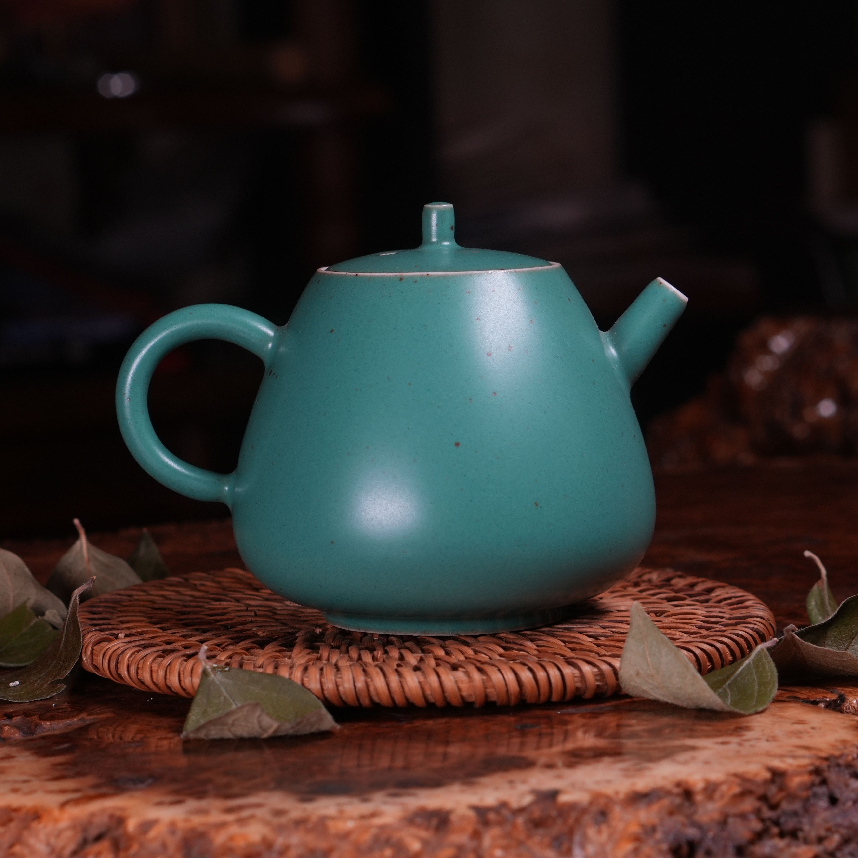 Снаружи очень приятный, сатиновая бирюзовая глазурь.