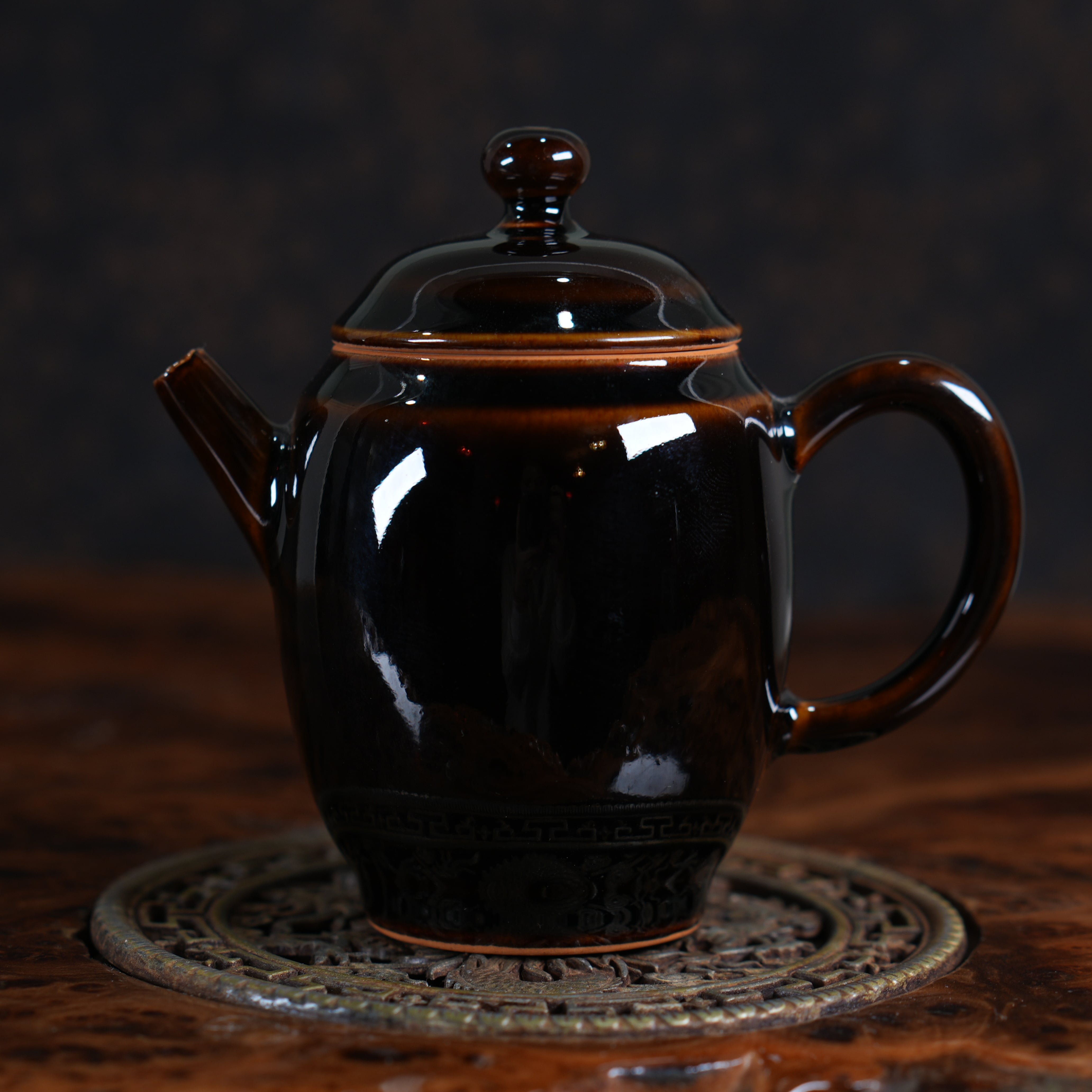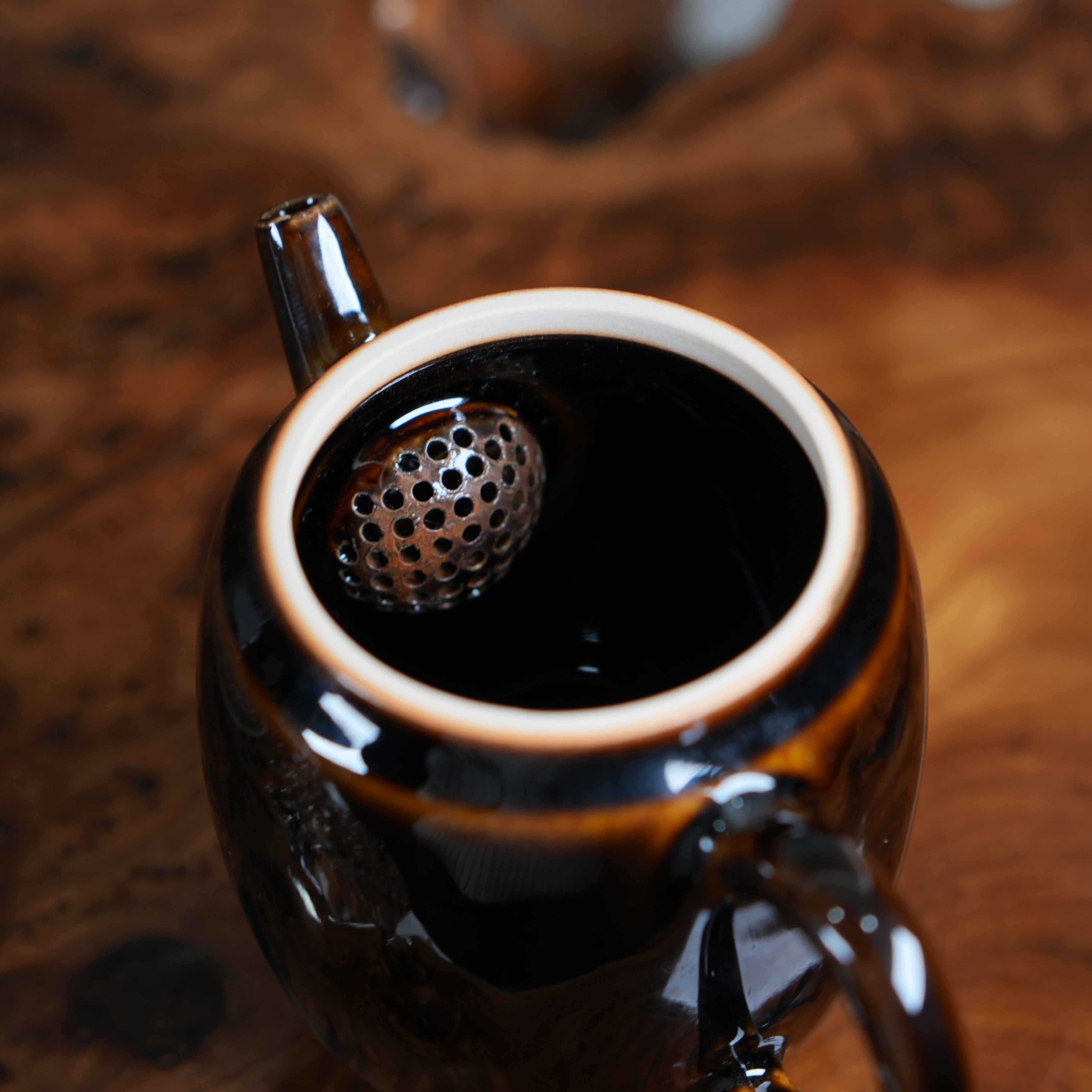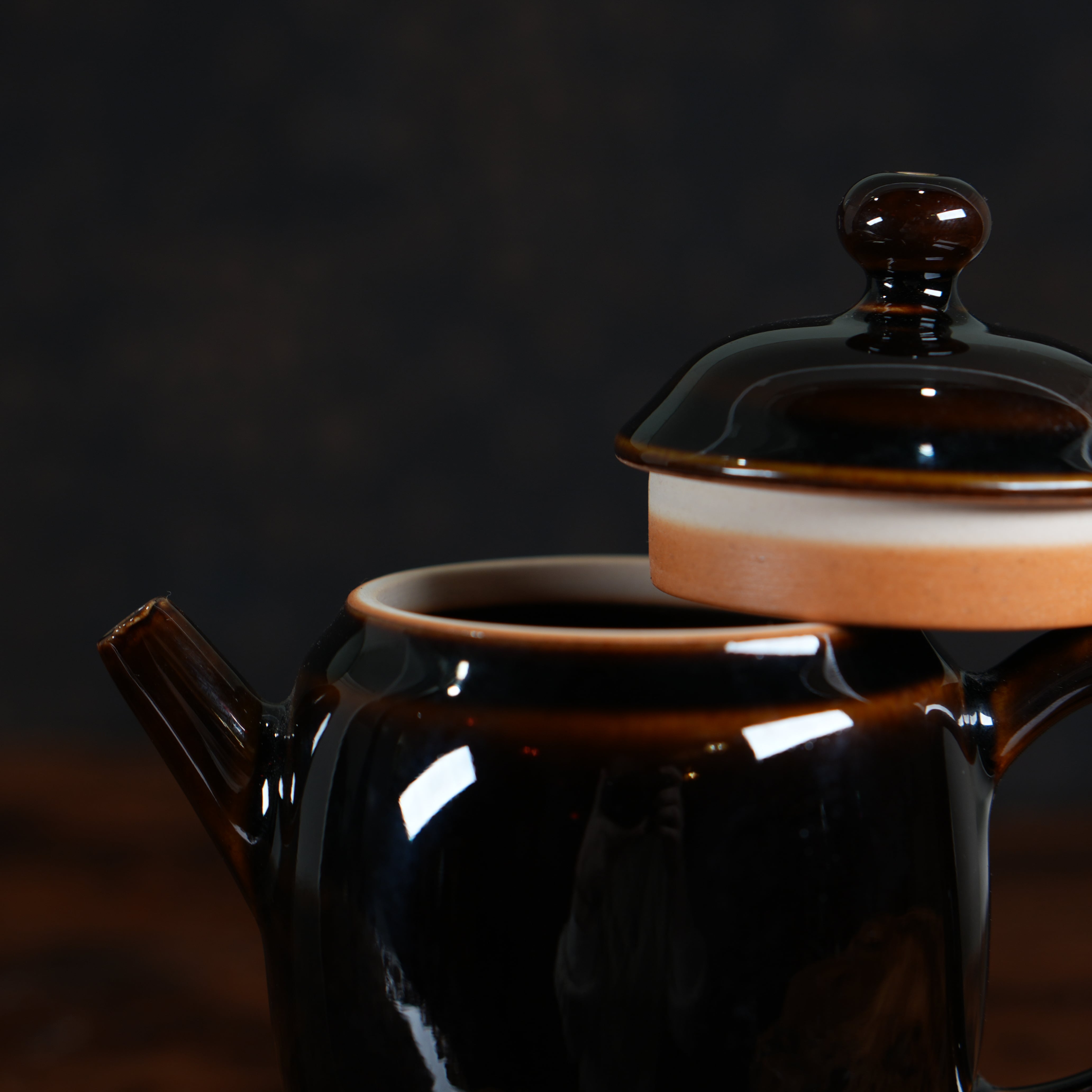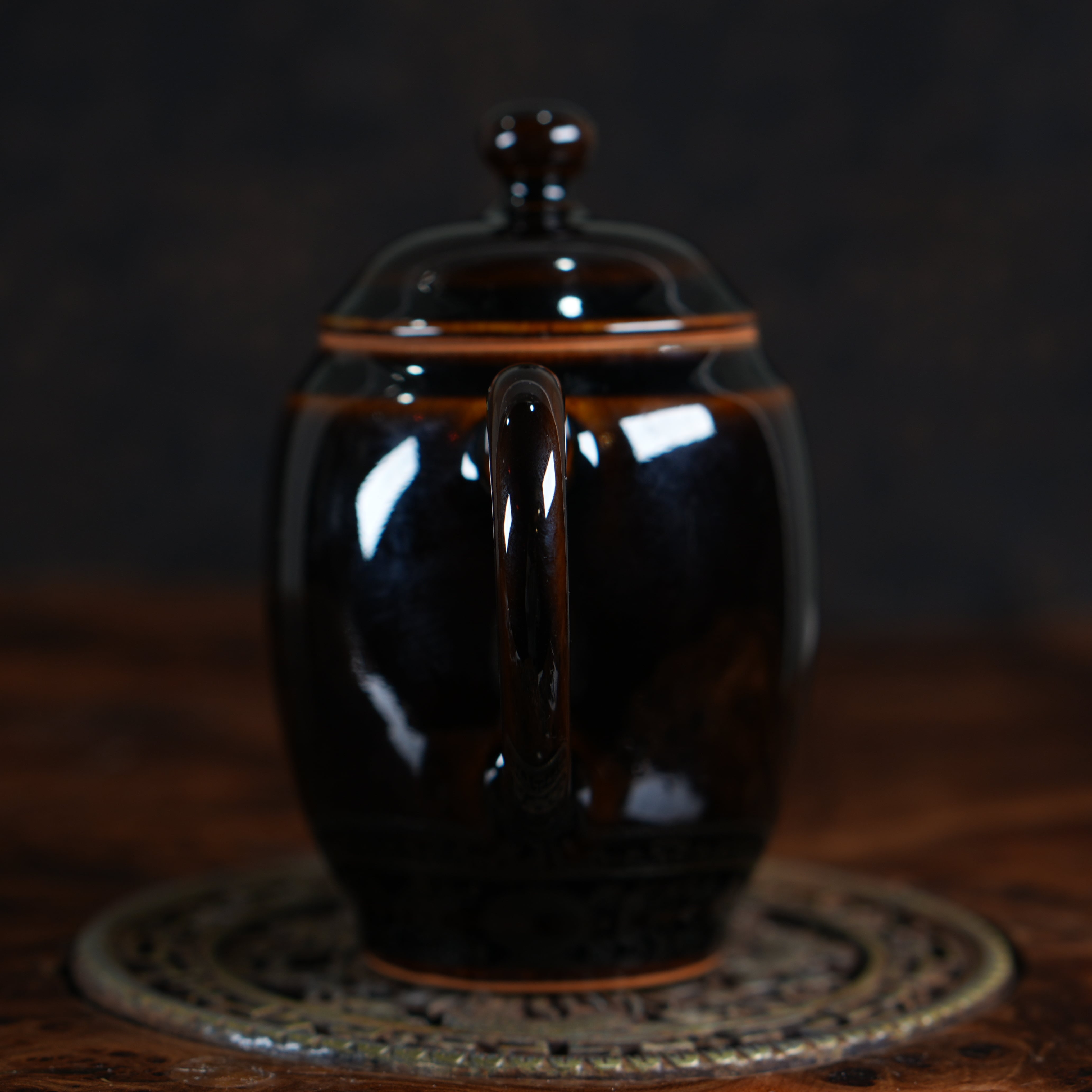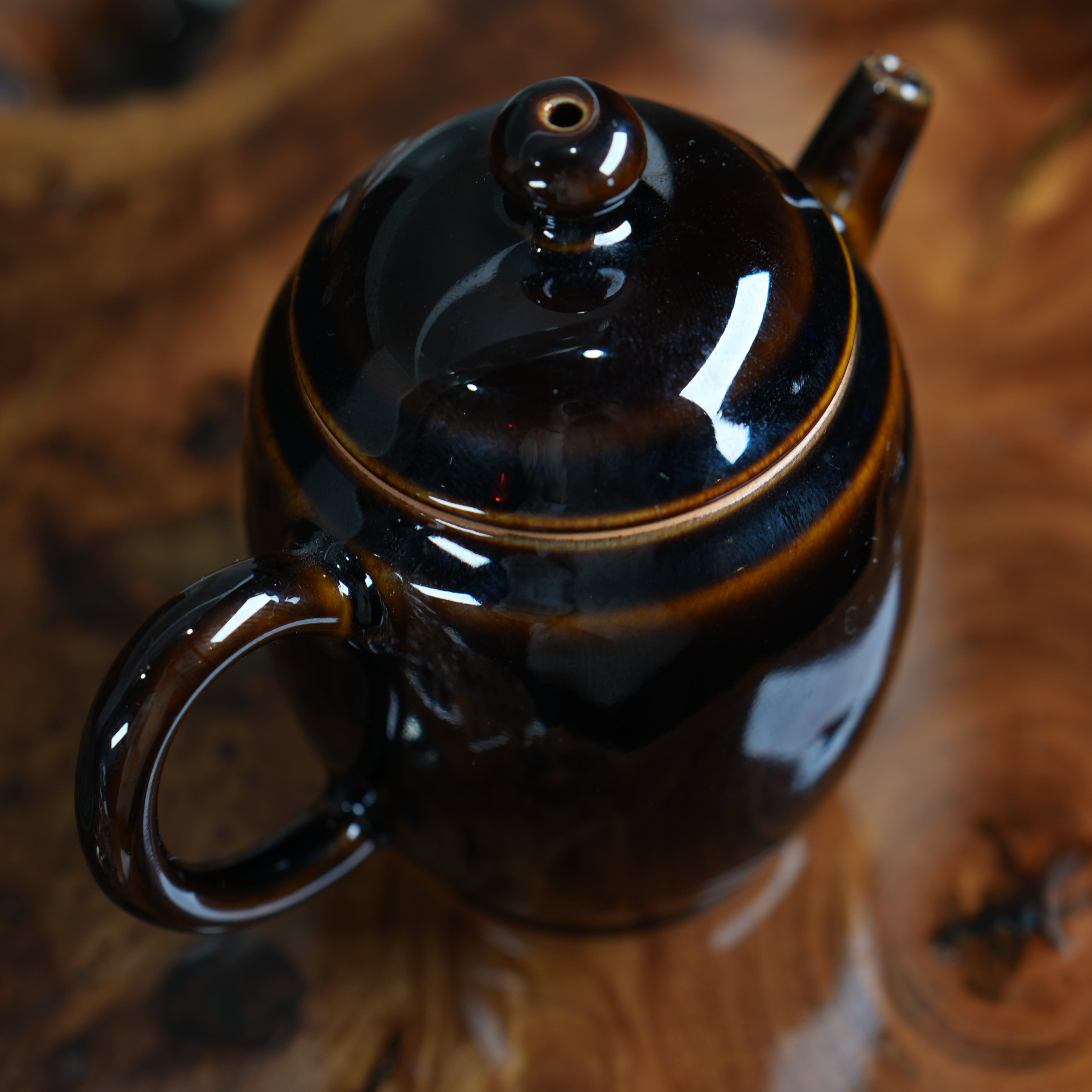 Внутри чайник глазурованный. Крышка сидит свободно.