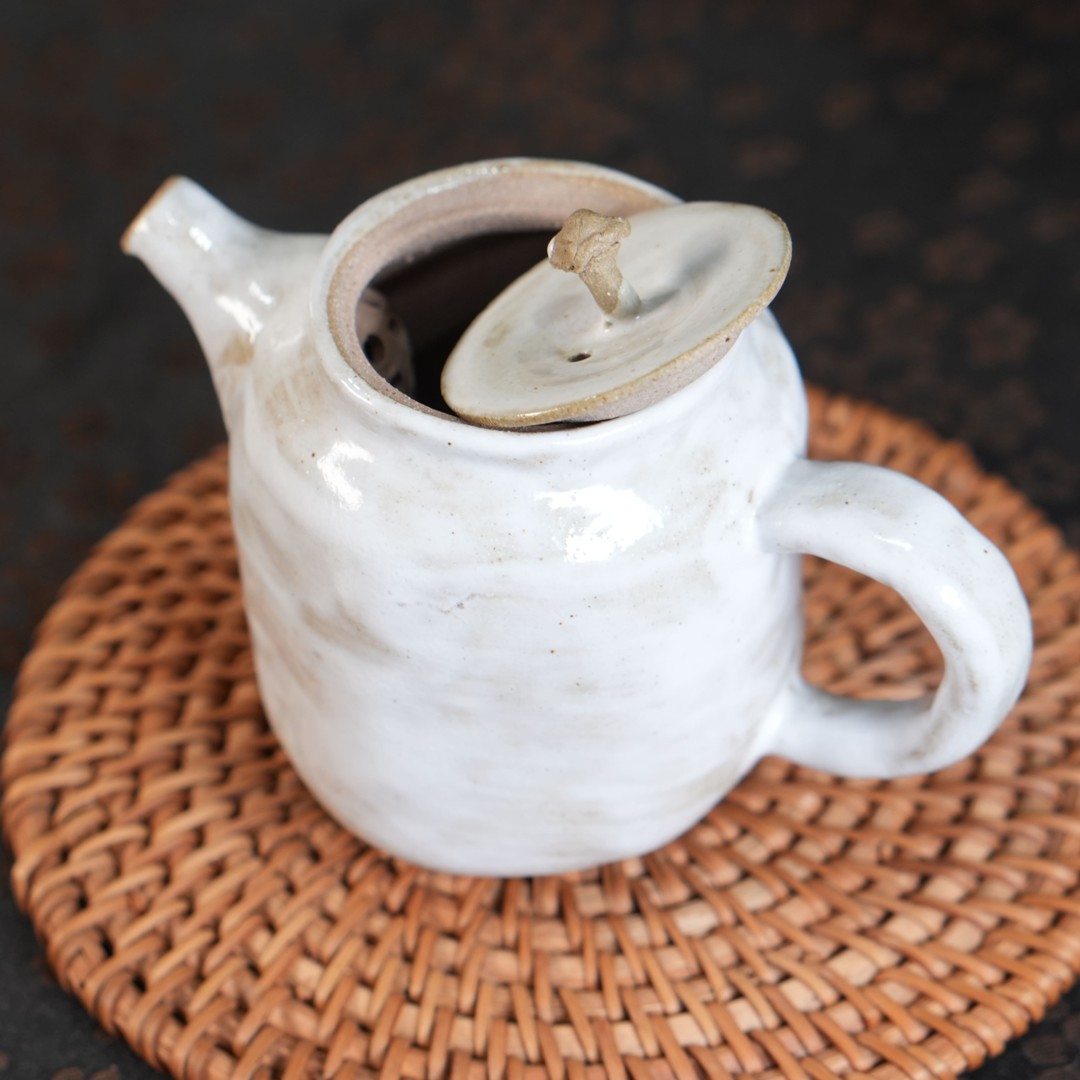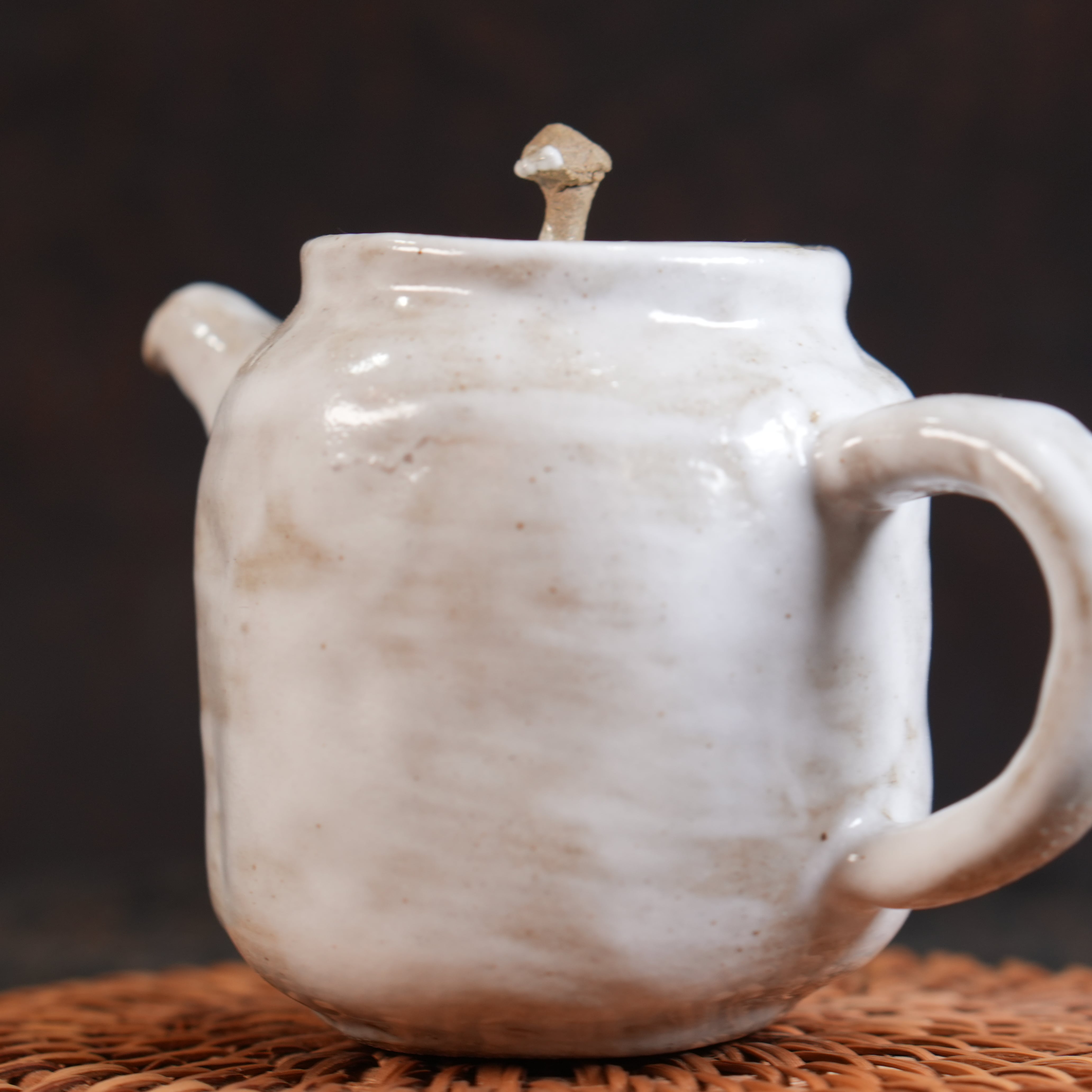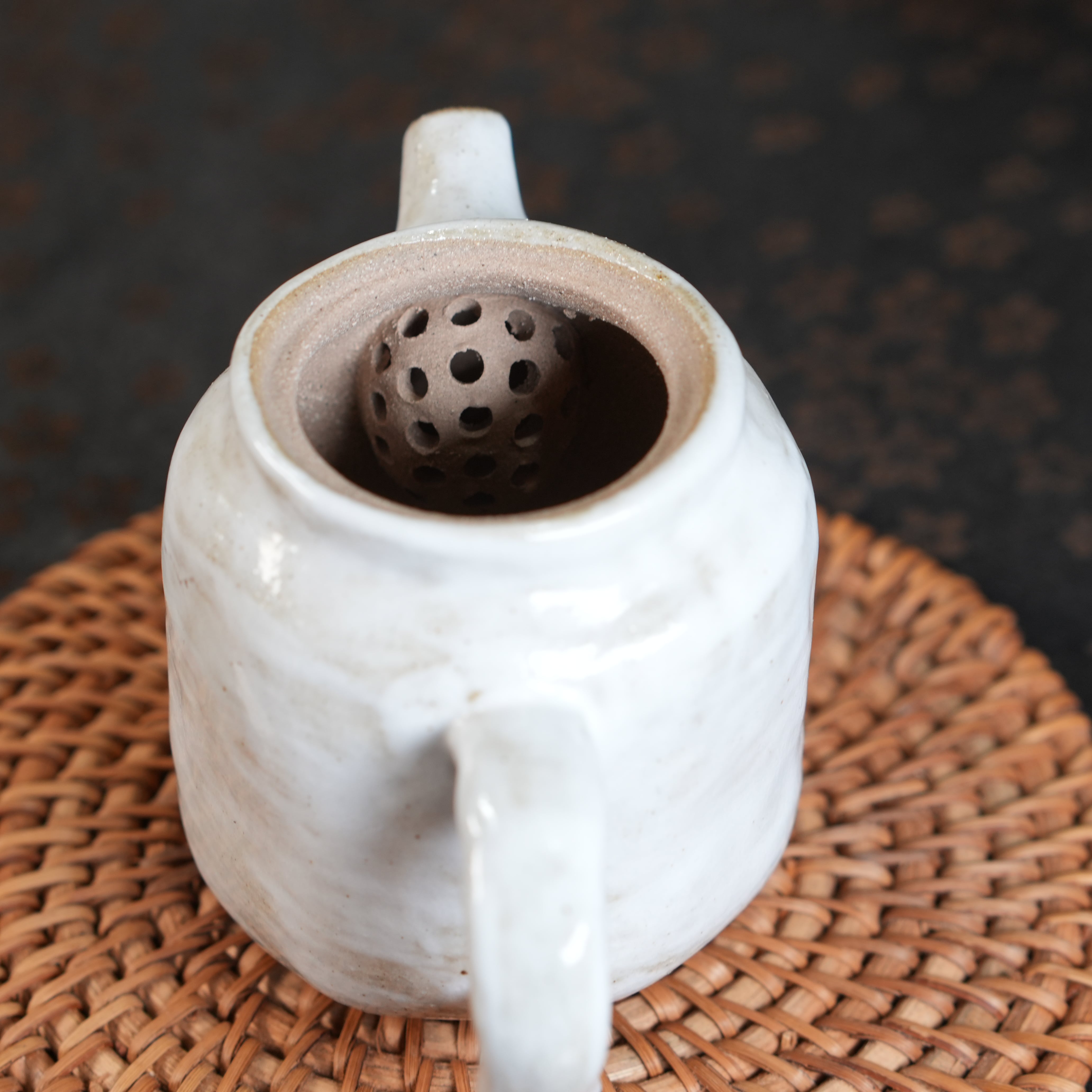Покрыт лёгким слоем белой глазури, внутри матовый.