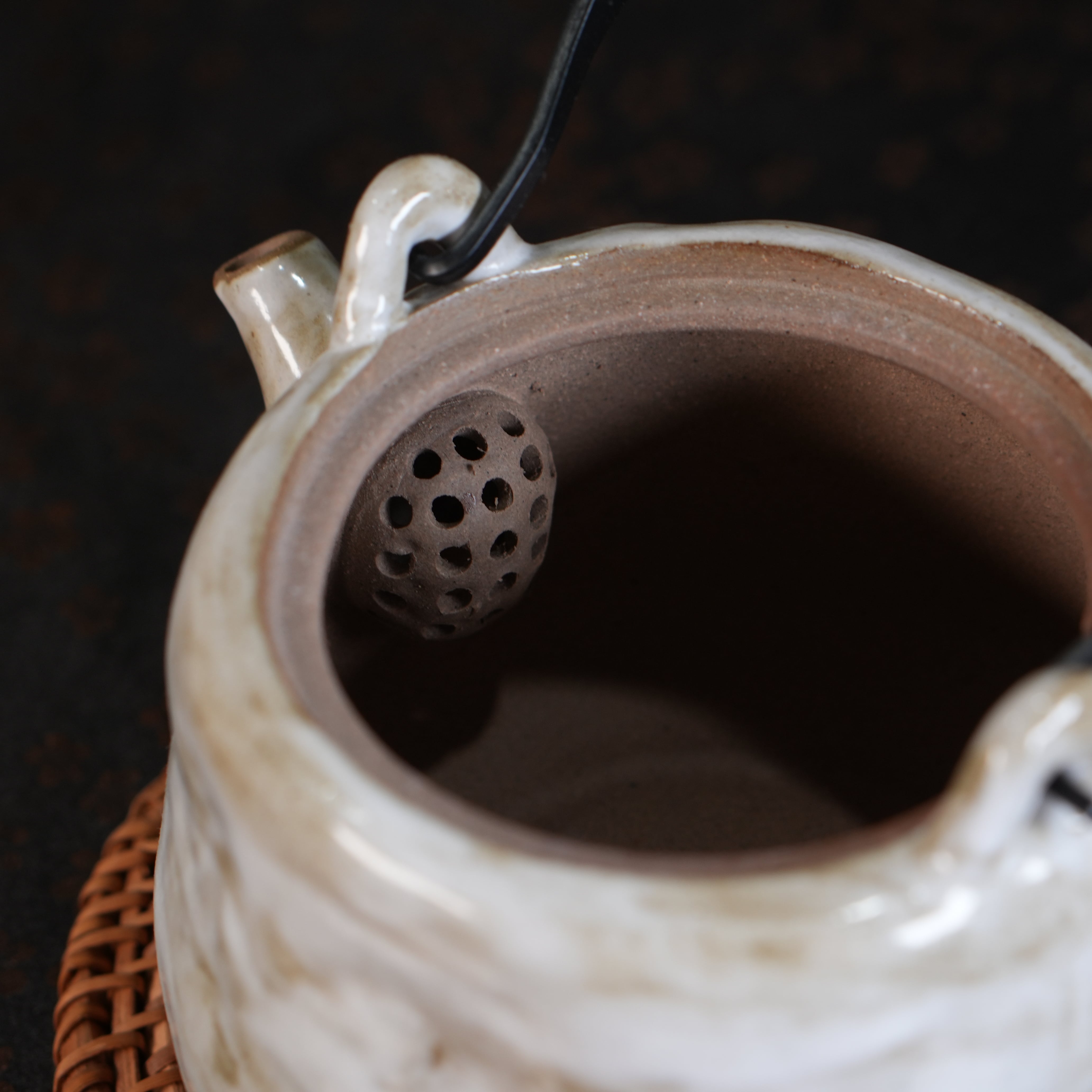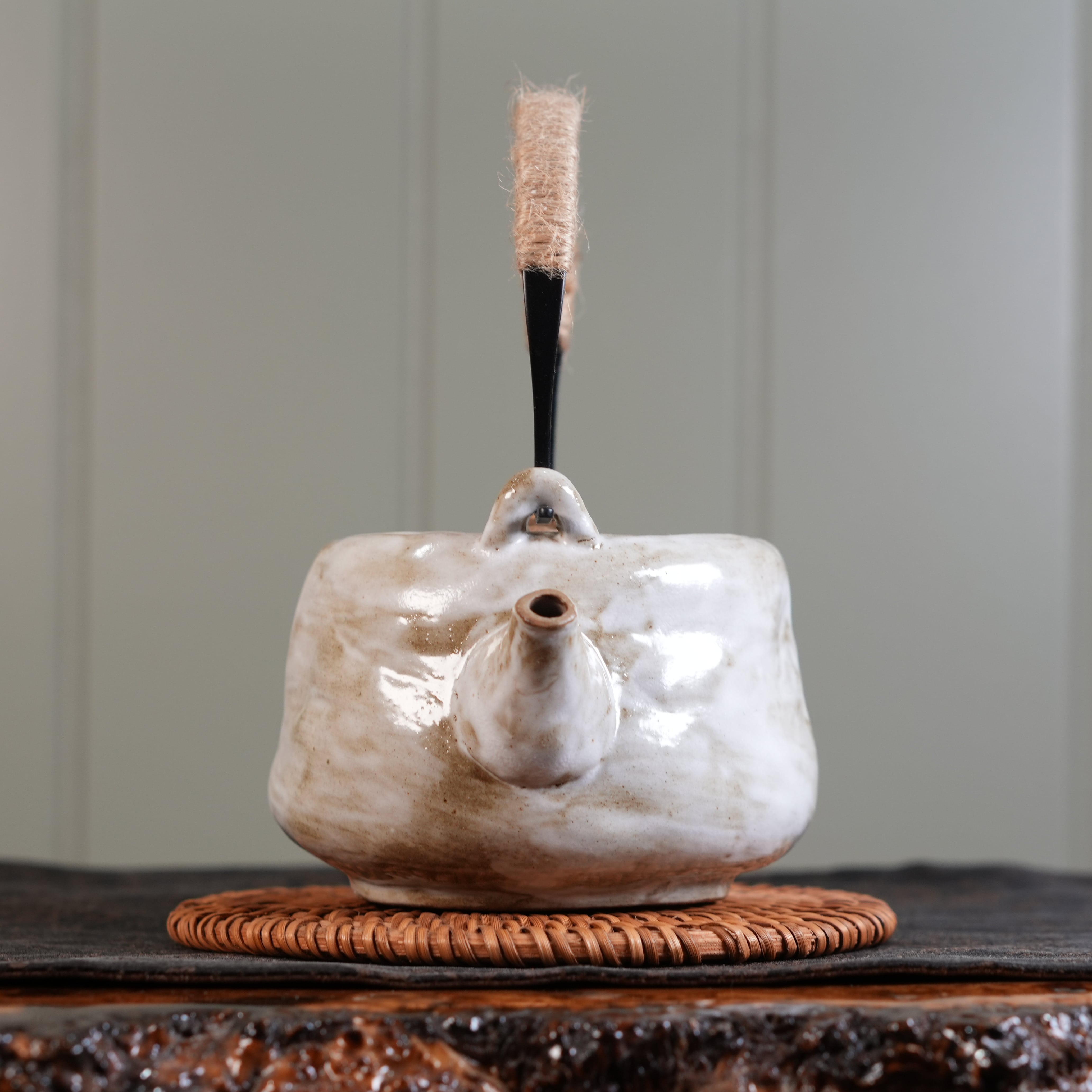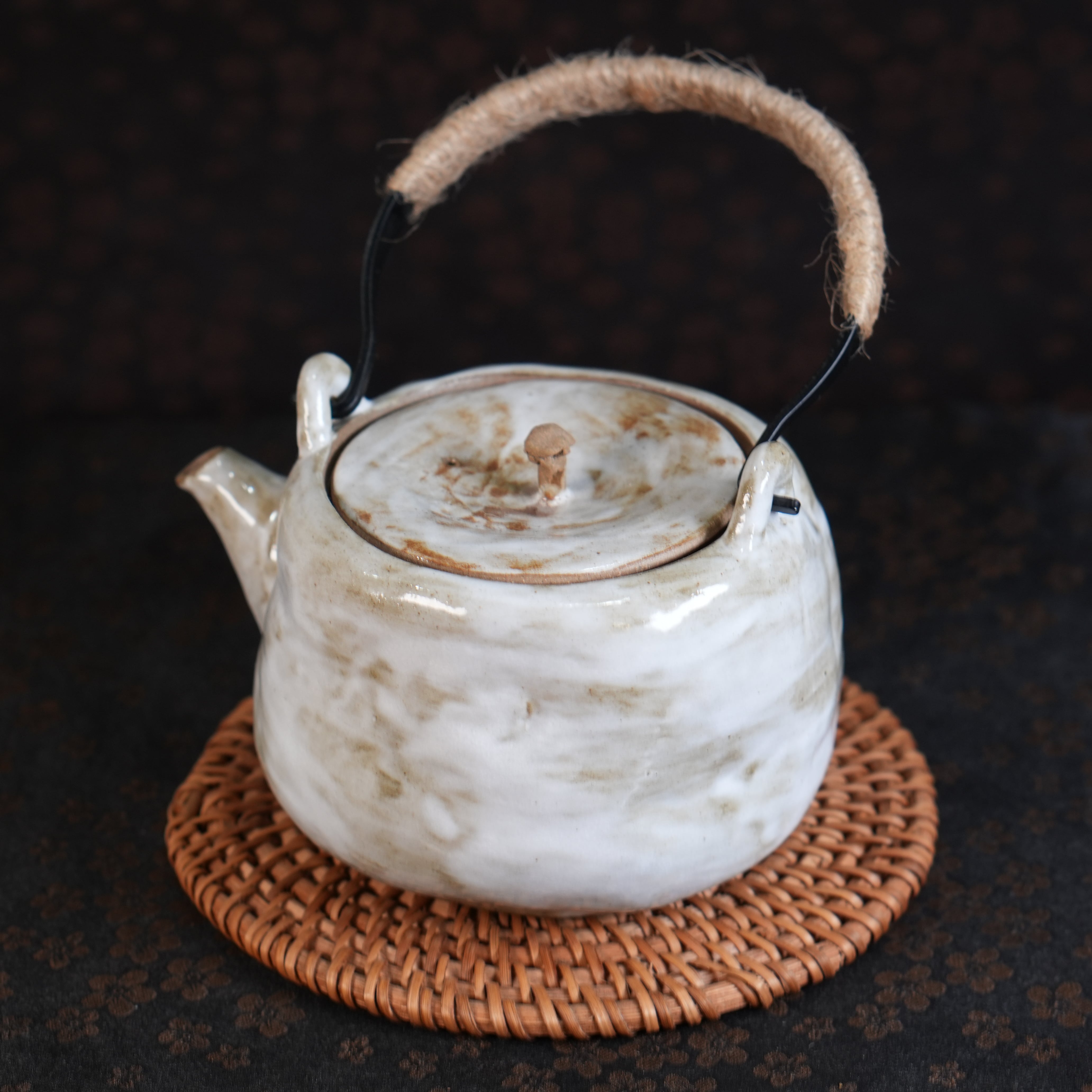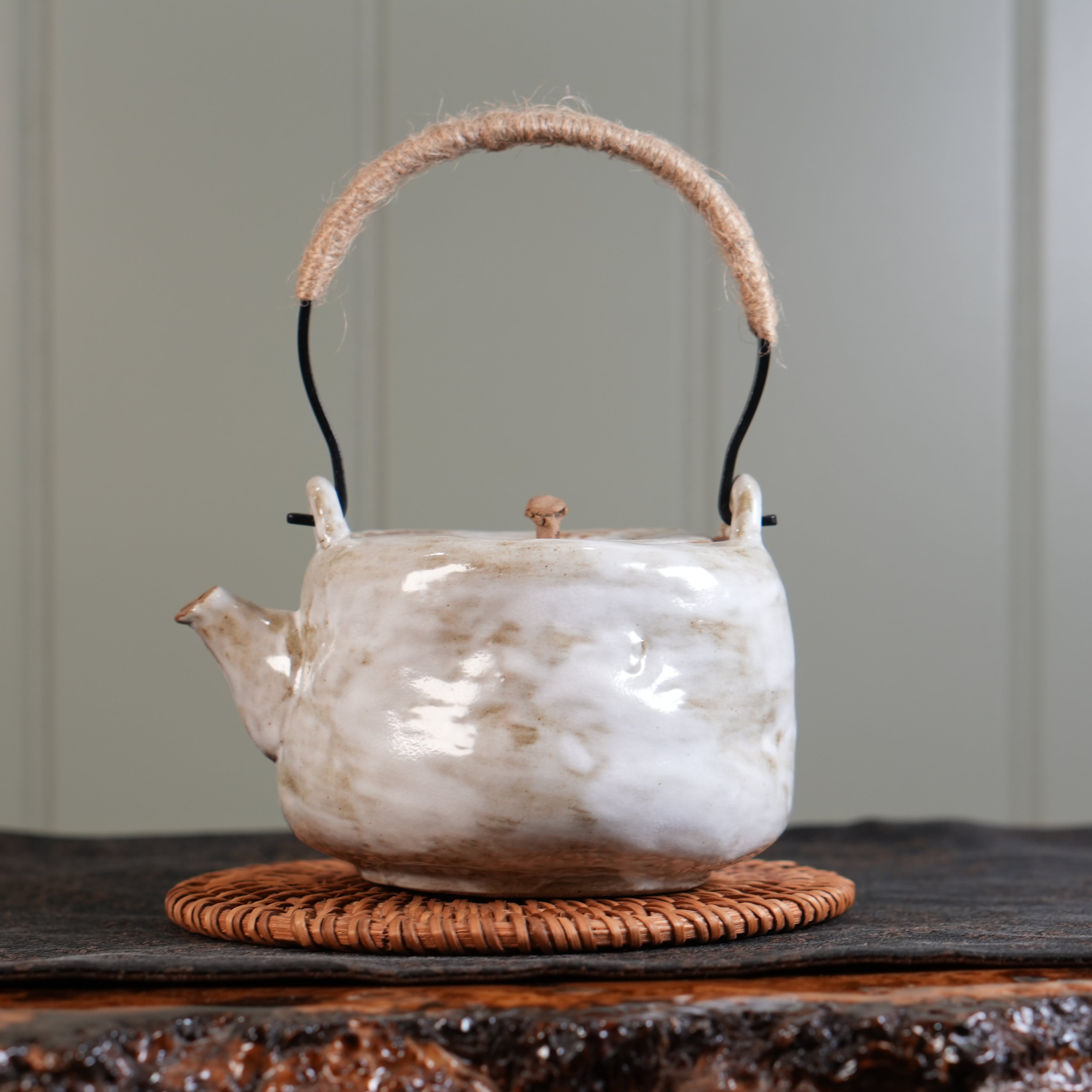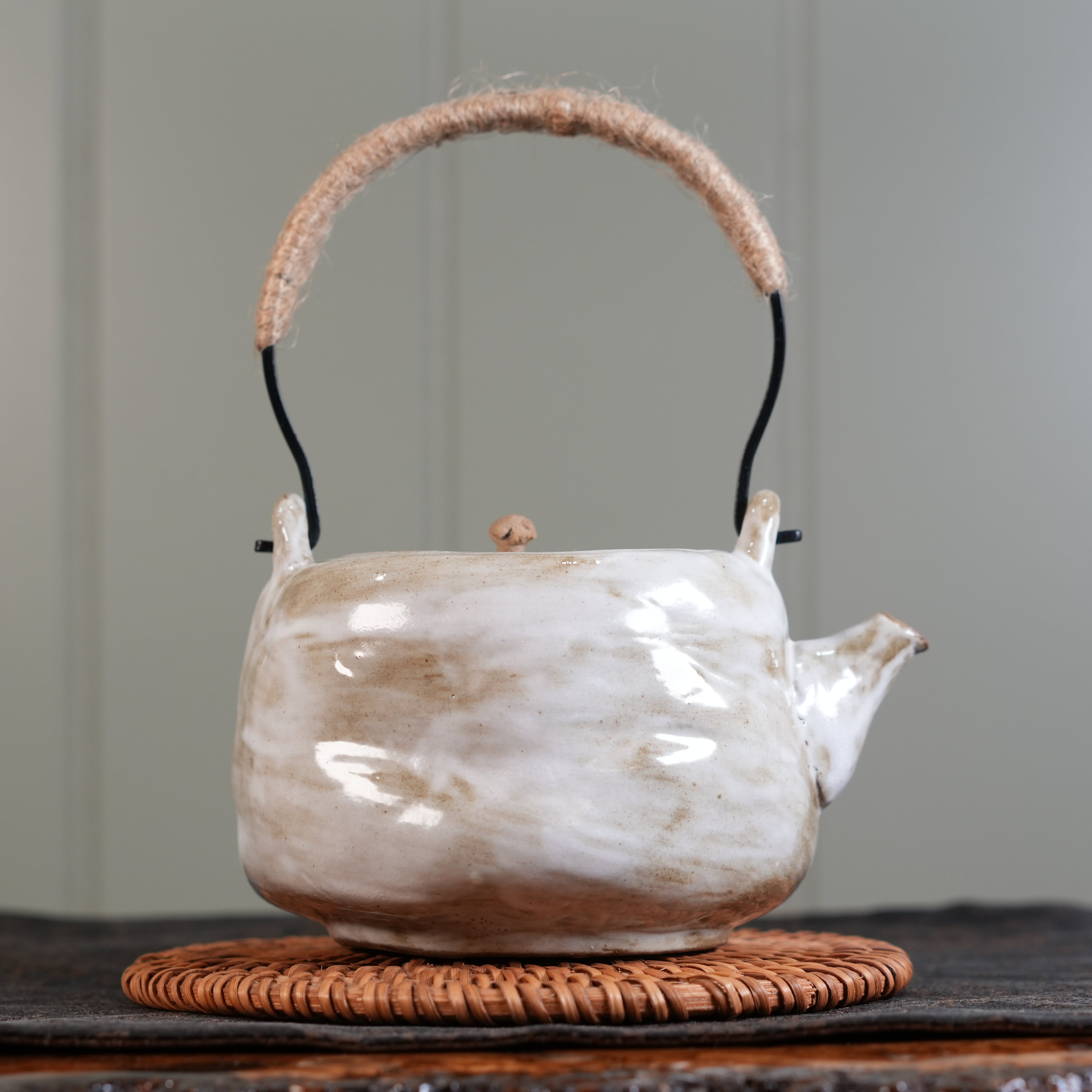 Чайник вылеплен полностью вручную. Можно использовать для кипячения воды или заваривания чая.