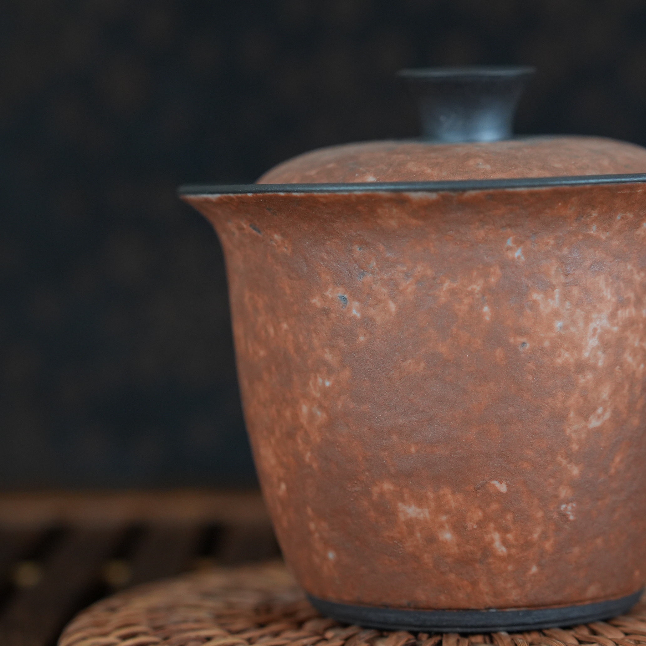 Главная особенность этой гайвани — сложное глазурное покрытие в стиле Бичэнь (碧沉). Это современное популярное направление в Китае, имитрирующее текстуру состаренного металла.