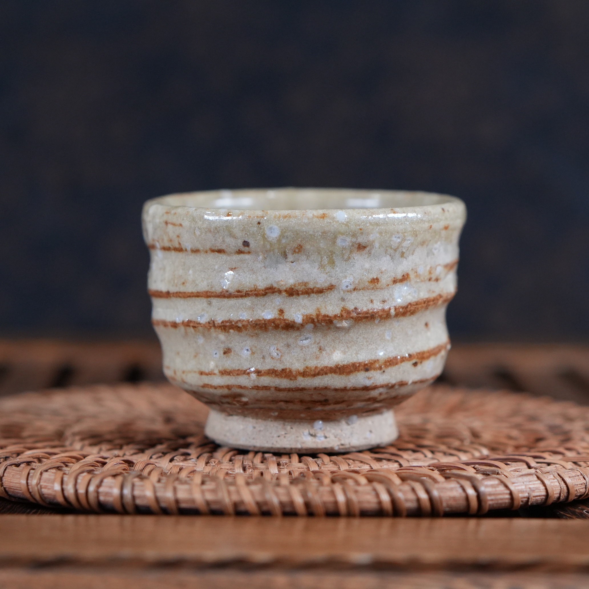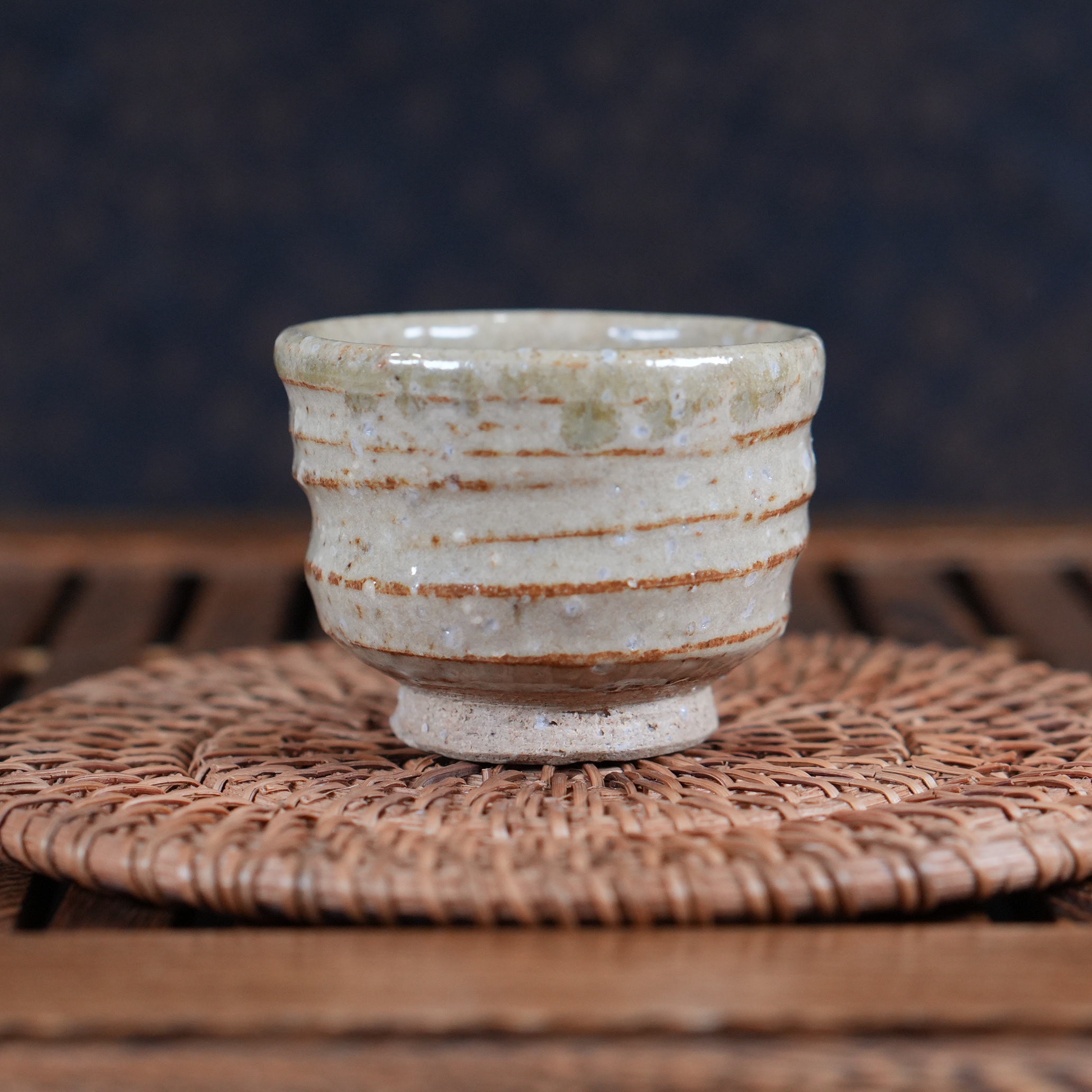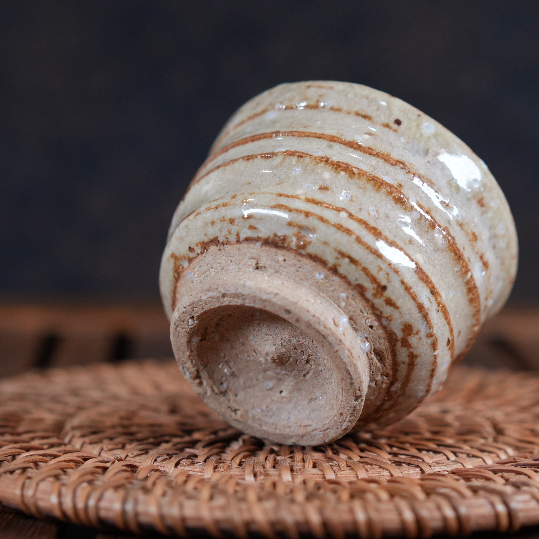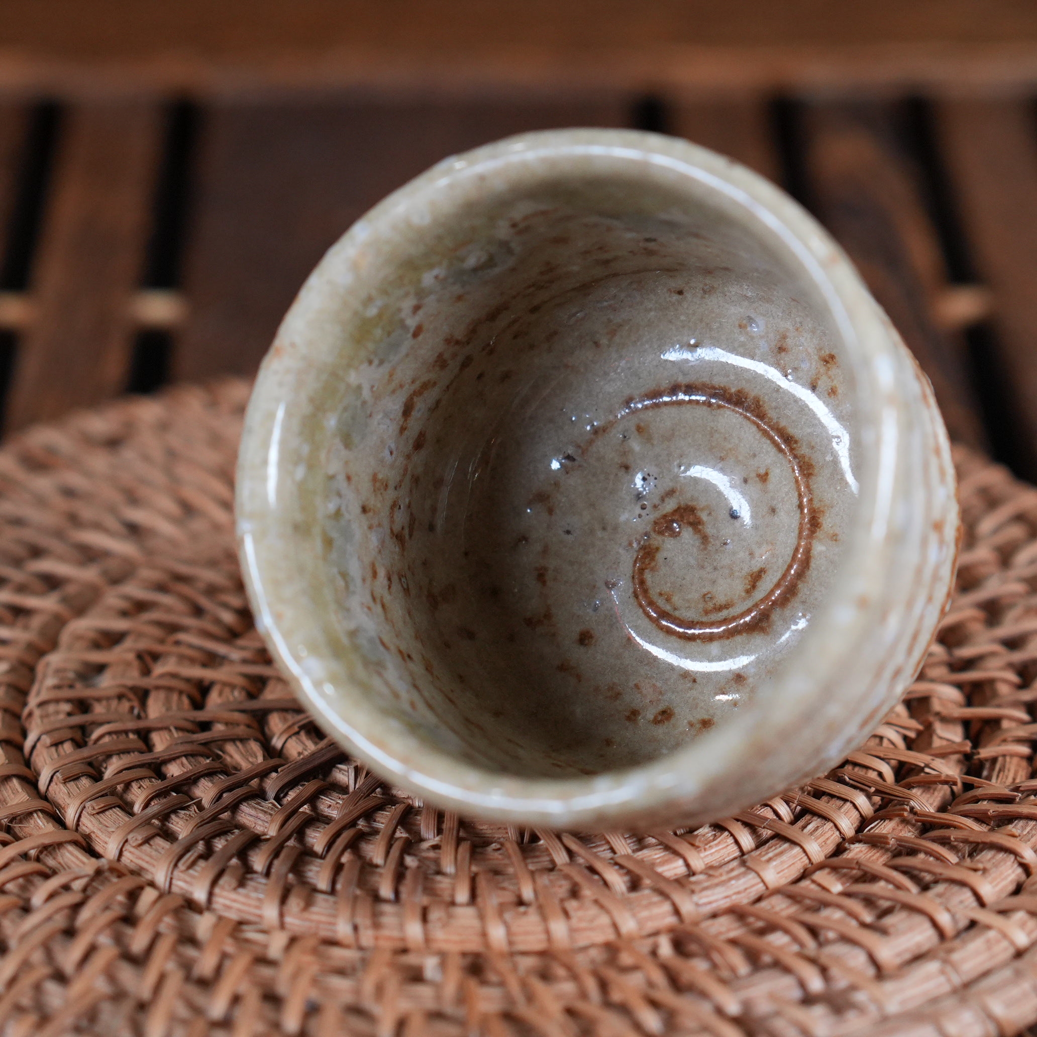 Пиала выполнена с использованием техники Гохонтя (御本手) - особого вида глазурного декорирования, при котором на поверхности образуются нежные пятна и разводы тёплых оттенков . Эти пятна возникают естественным образом во время обжига: когда в печи падает уровень кислорода, железо, содержащееся в глине, поднимается сквозь глазурь и создаёт спонтанные точечные узоры - настоящий «подарок огня», делающий каждое изделие уникальным.